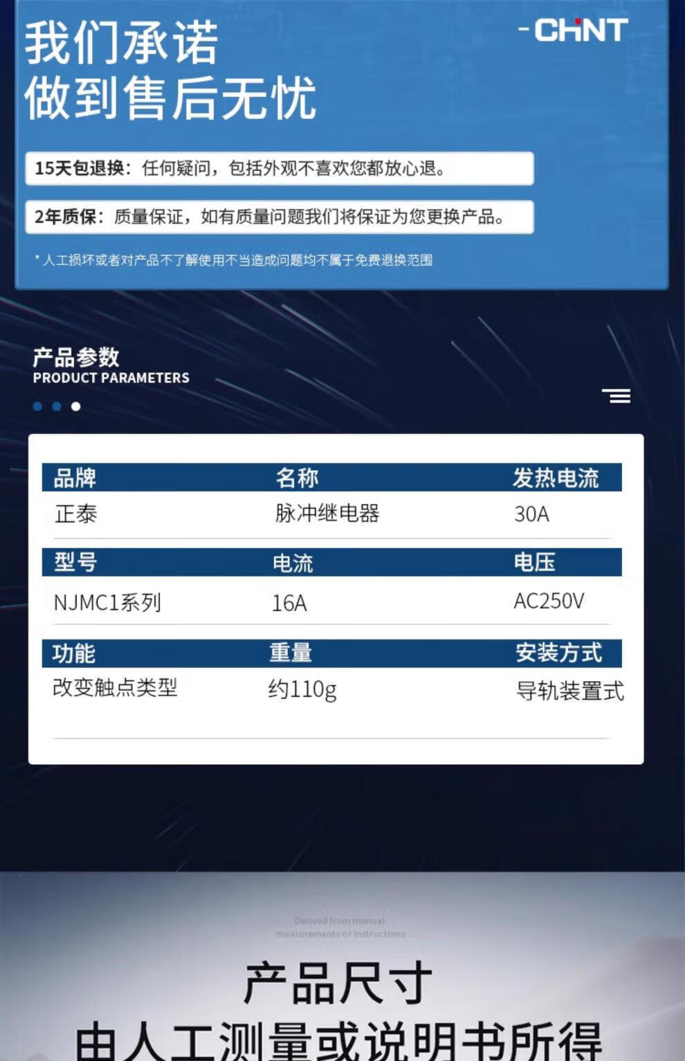 Chint (CHNT) pulse signal relay NJMC1-16 1/2/3/4P AC AC220V 16A DC DC NJMC1-16/3P-24VDC 3 sets of normally open contacts