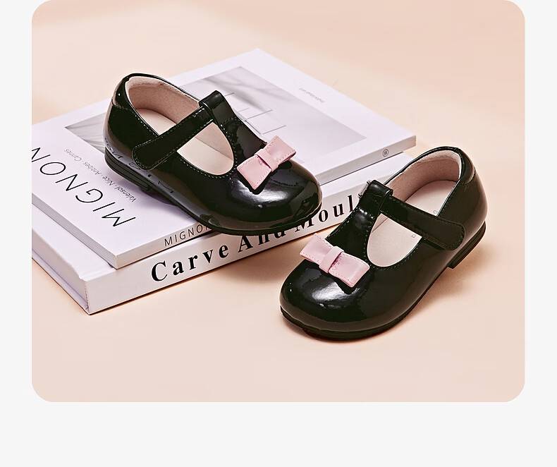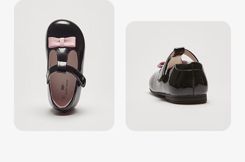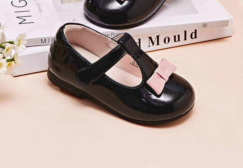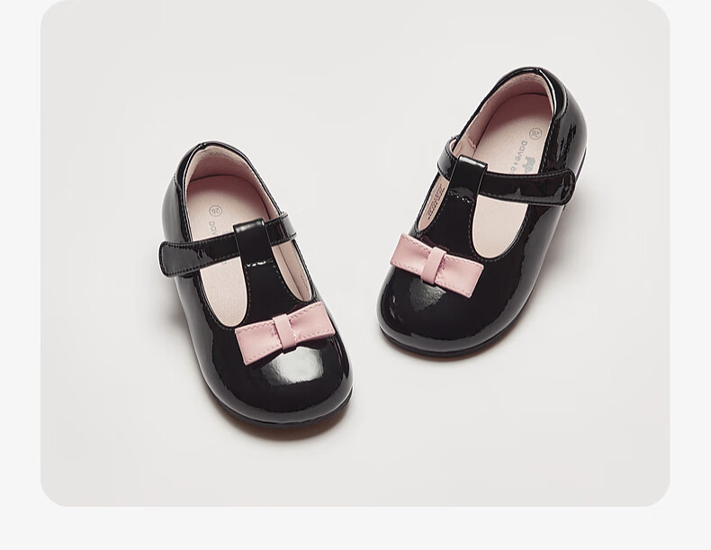 DAVE&BELLA Girls' Leather Shoes Princess Style Children's Performance Shoes Spring New Children's Casual Shoes Female Baby Toddler Shoes Black Spot 21