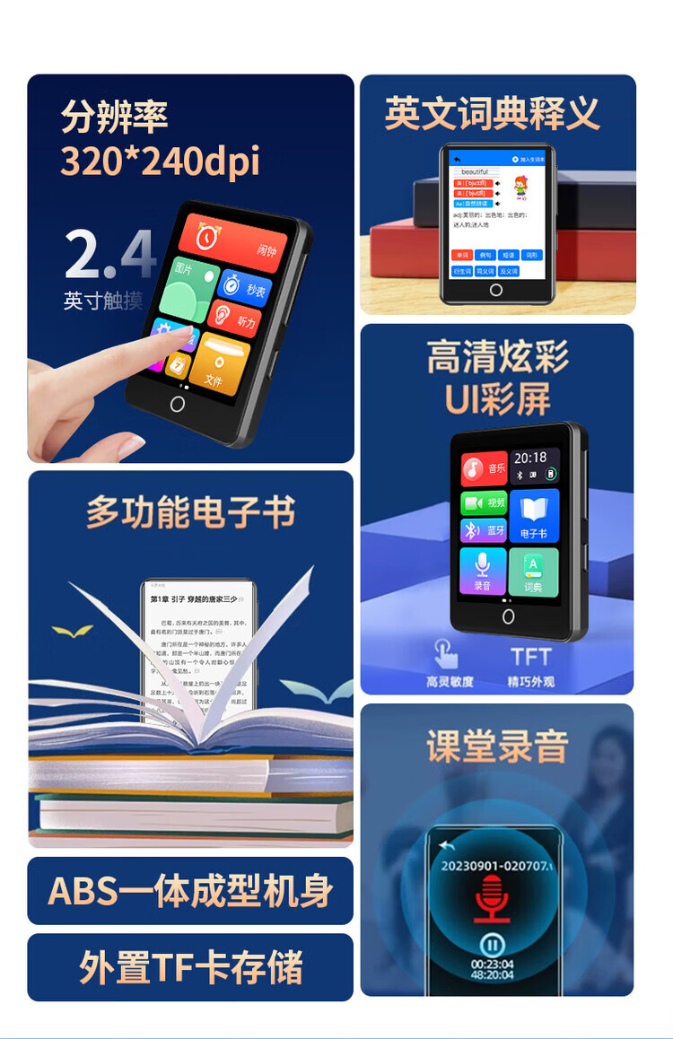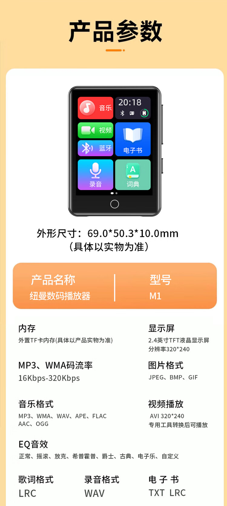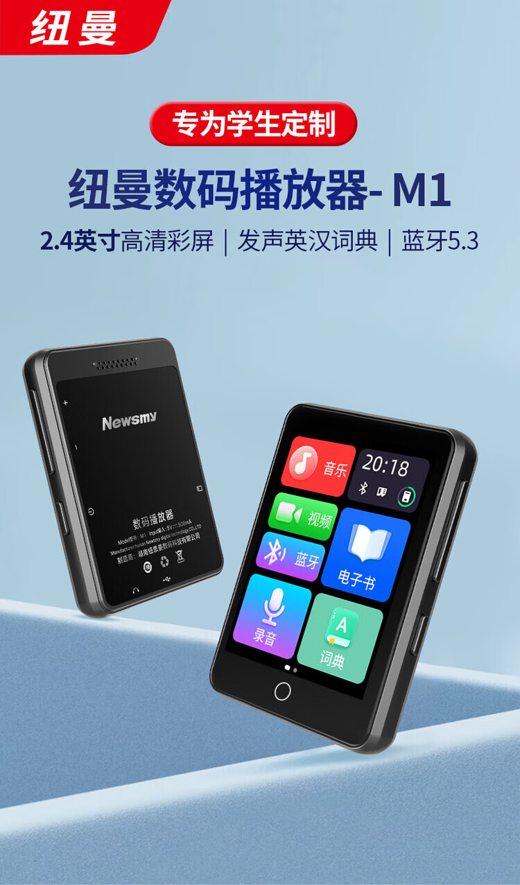 Newman M1 2025 New Bluetooth MP3 Walkman MP4 Special English Listening Music Song Player for Middle and High School Students to Read Novels Newman 2025 New M1-2.4-inch Touch Screen/Bluetooth Dictionary/Novel 8GB Memory Card (Available for Download)