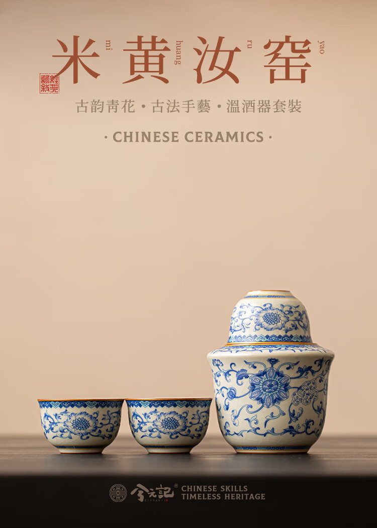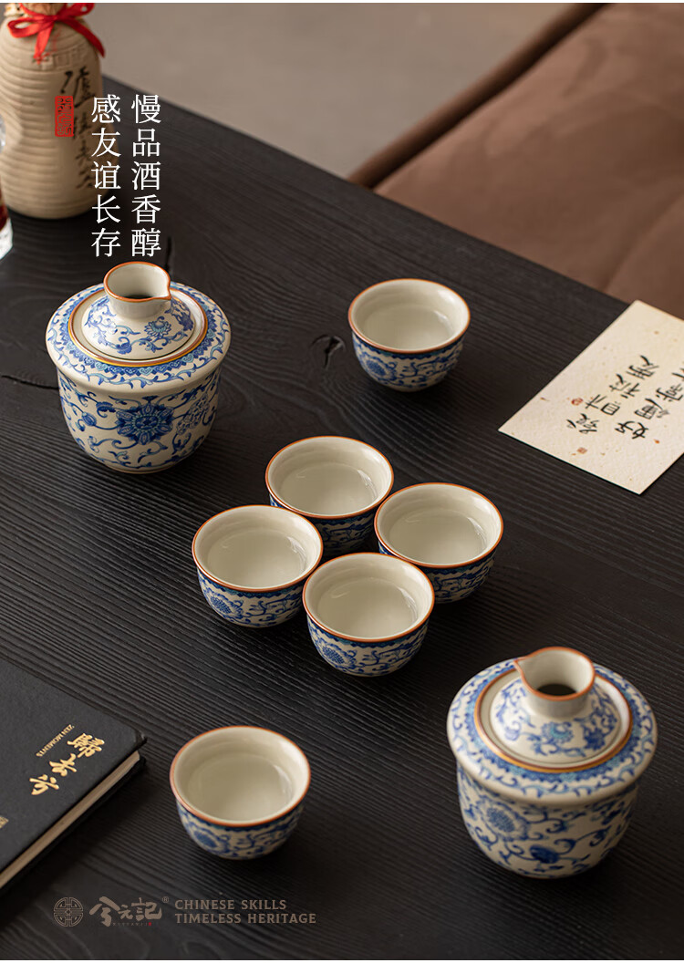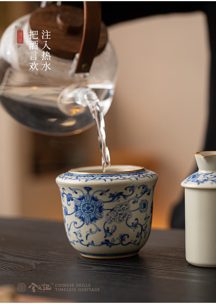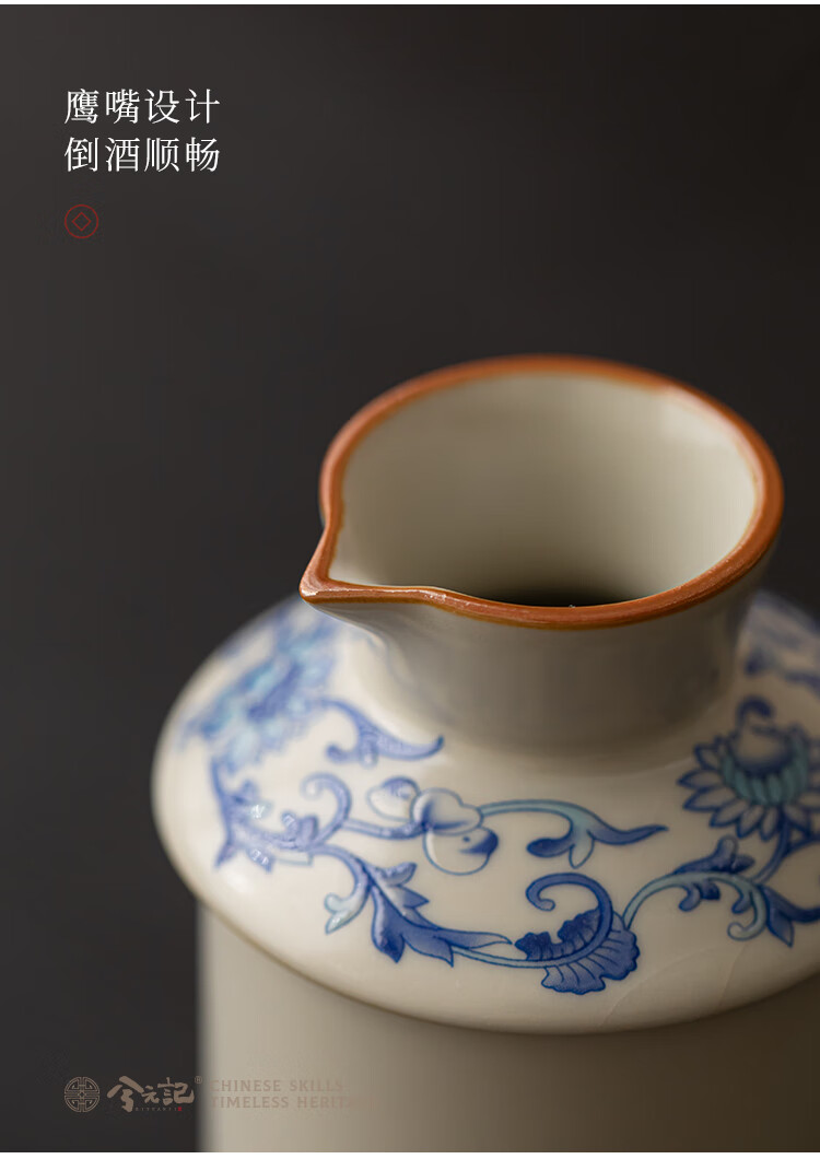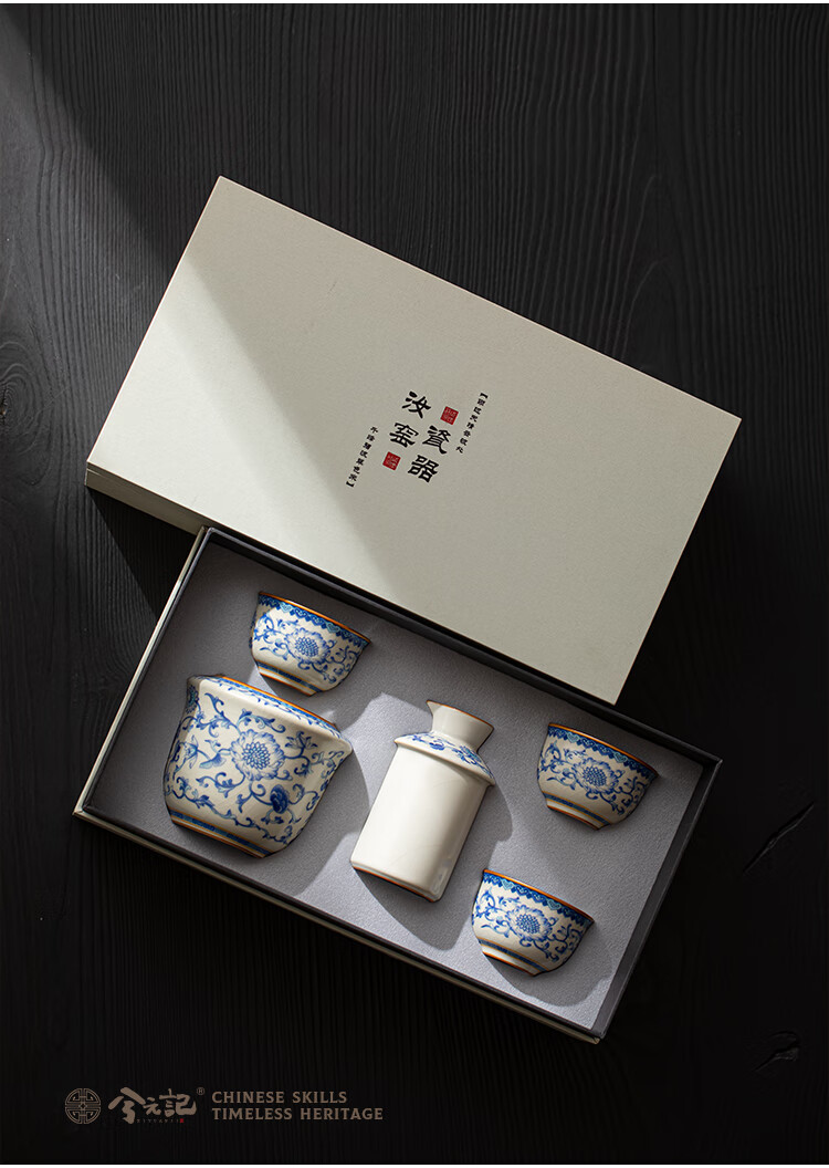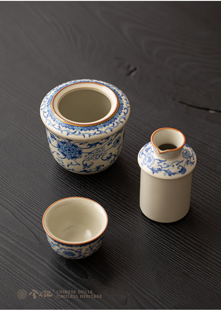Xi Yuanji blue and white wine warmer, wine warmer set, white wine, rice wine, wine set, gift box, birthday gift for elders and father, flower wine warmer, one pot, three cups set - gift box