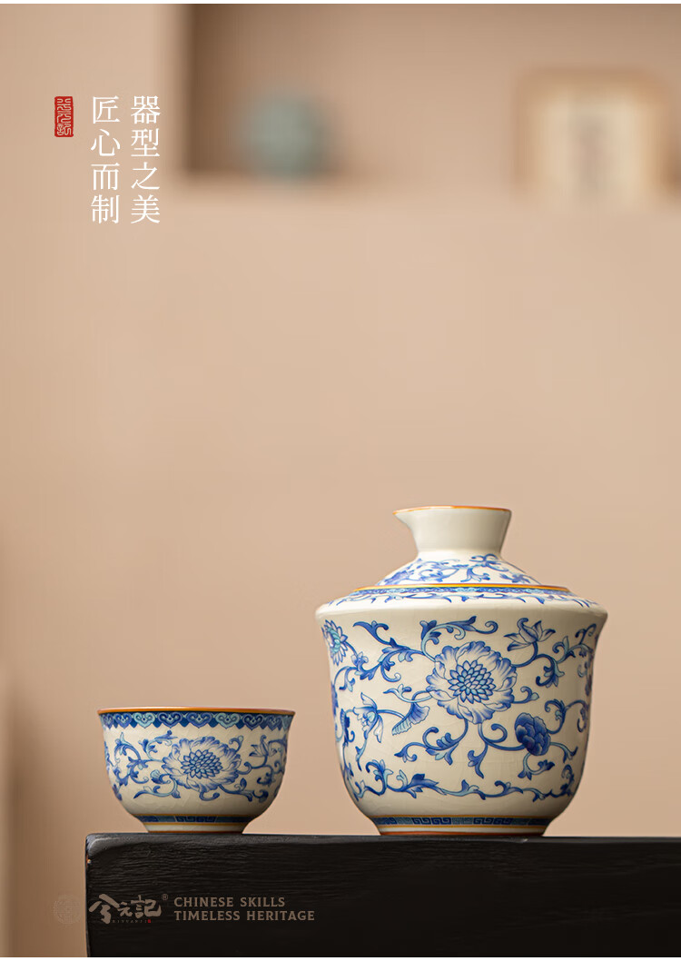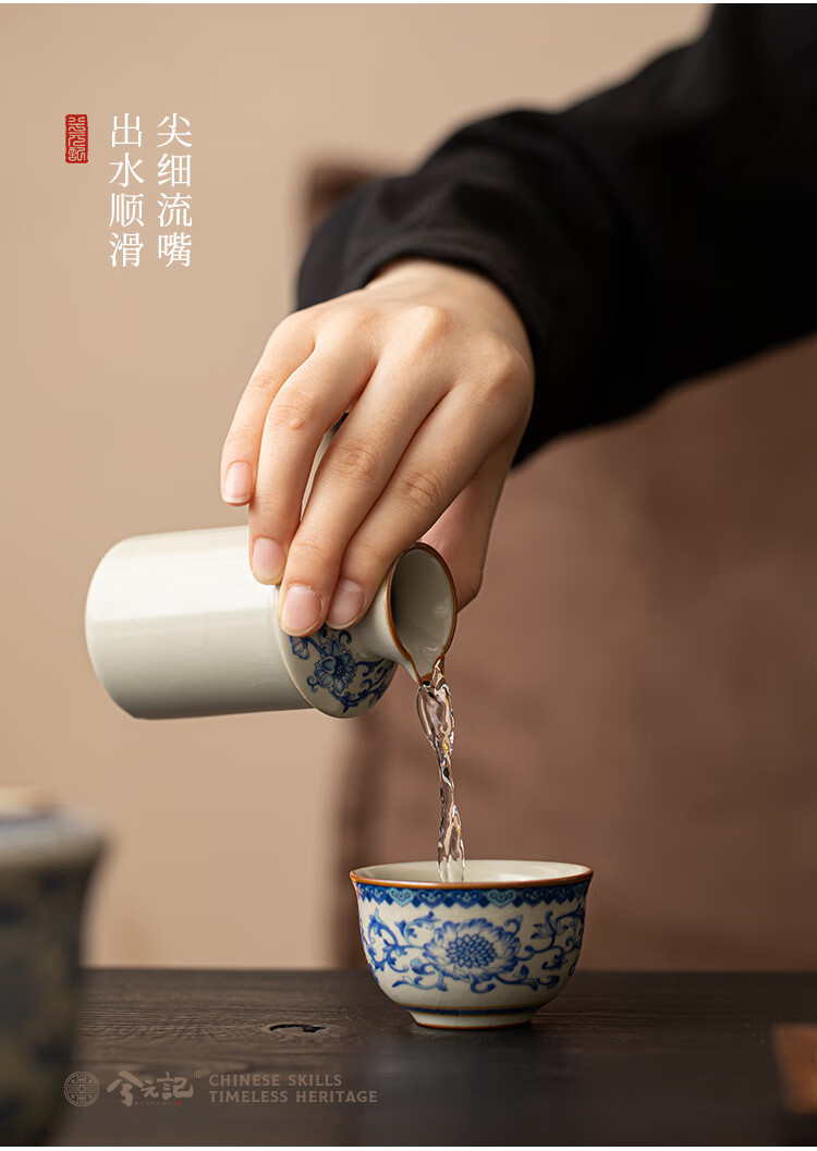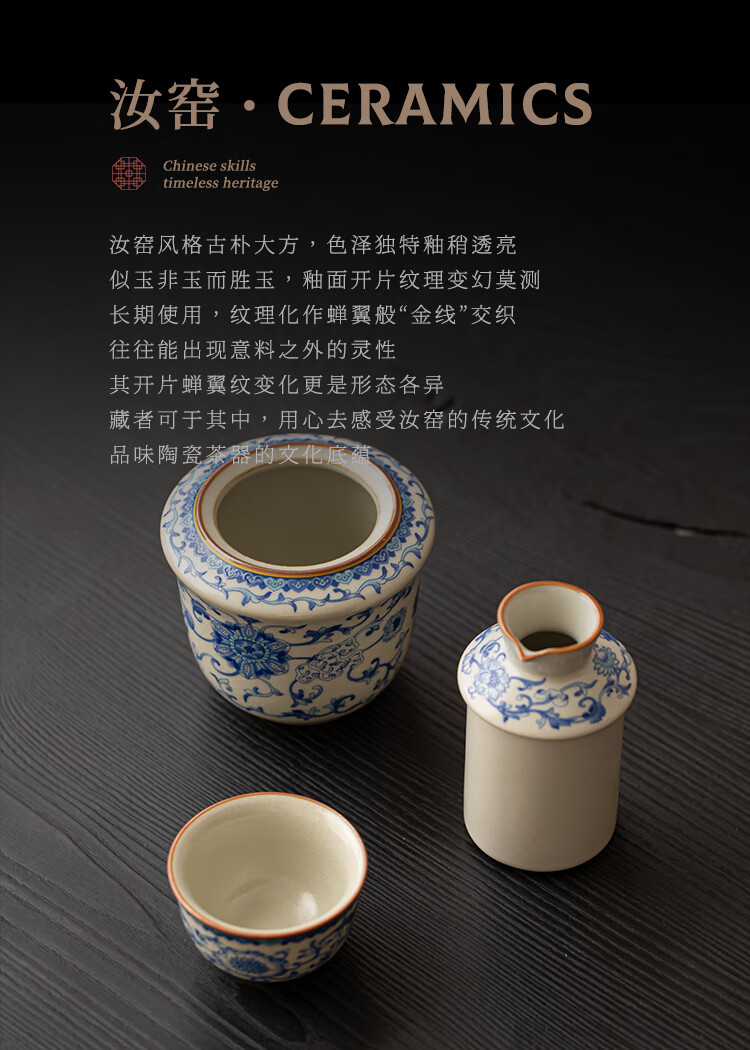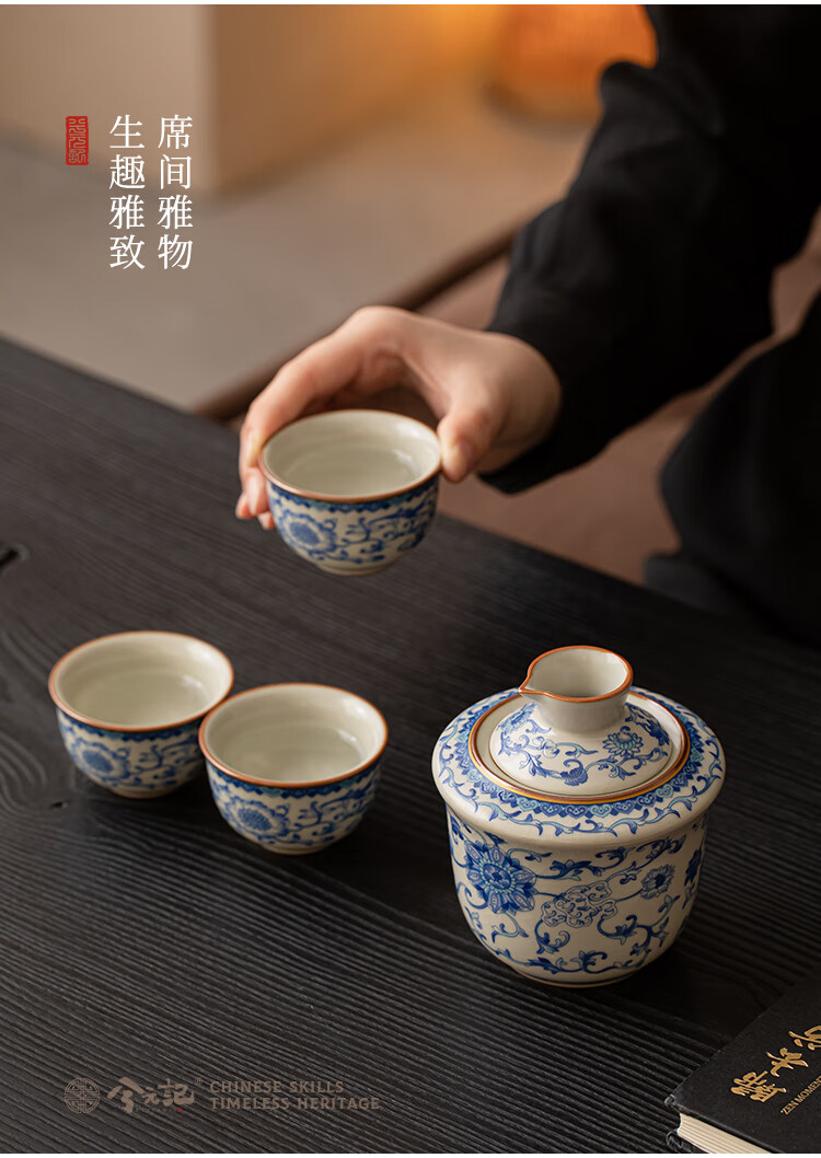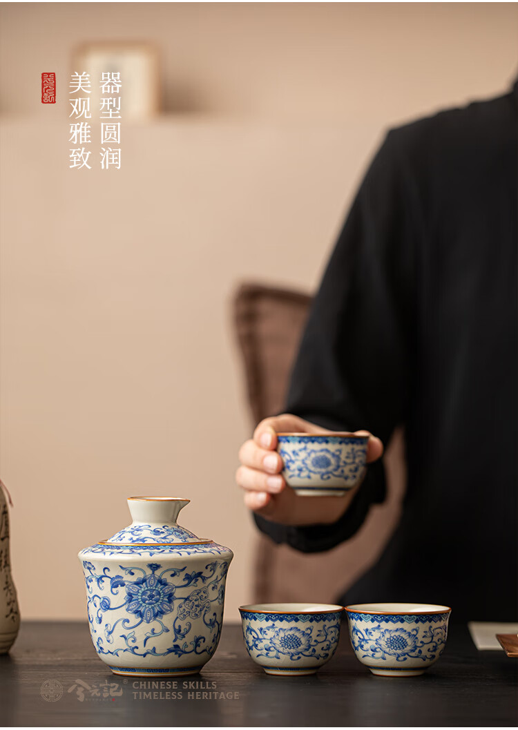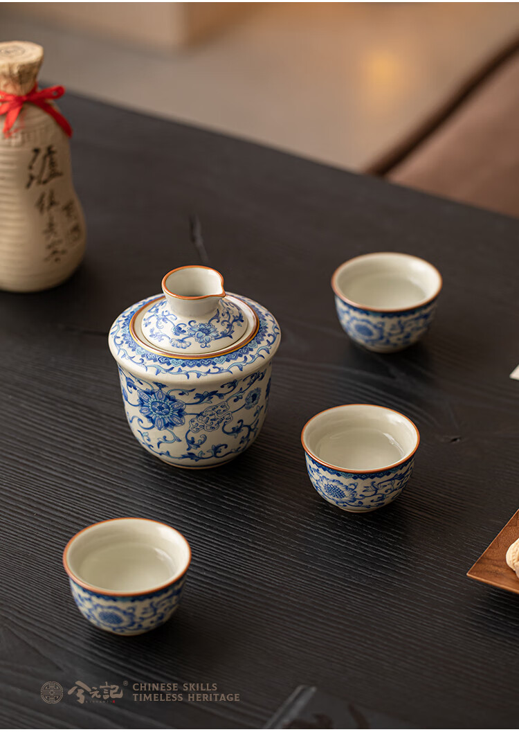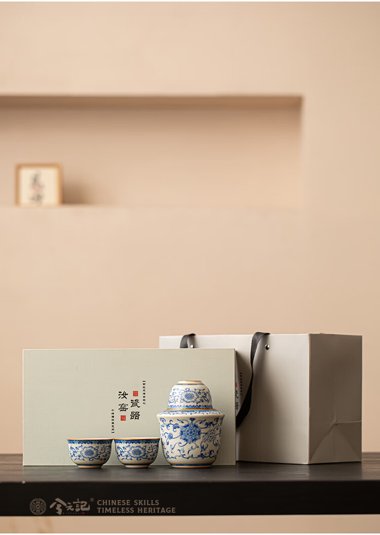 Xi Yuanji blue and white wine warmer, wine warmer set, white wine, rice wine, wine set, gift box, birthday gift for elders and father, flower wine warmer, one pot, three cups set - gift box