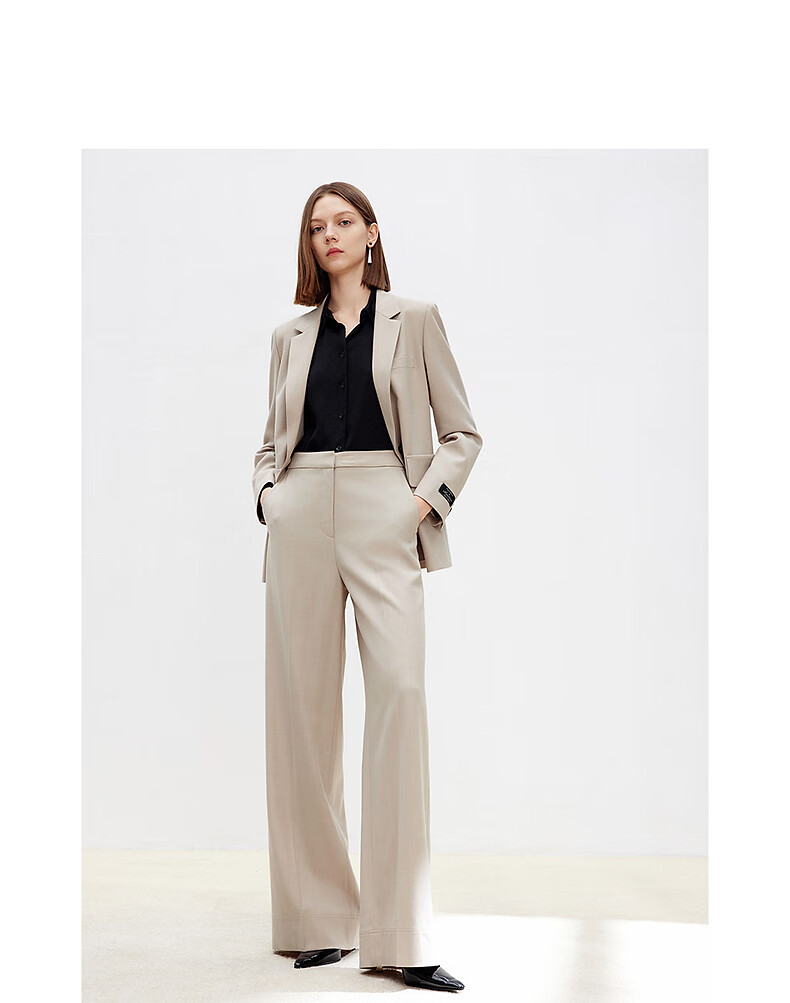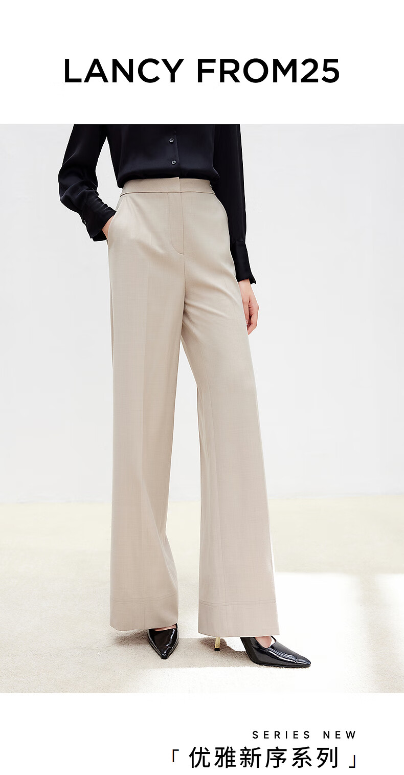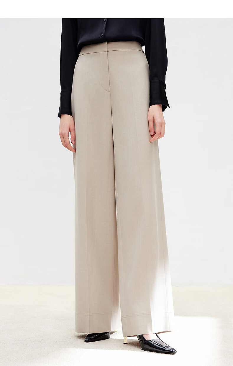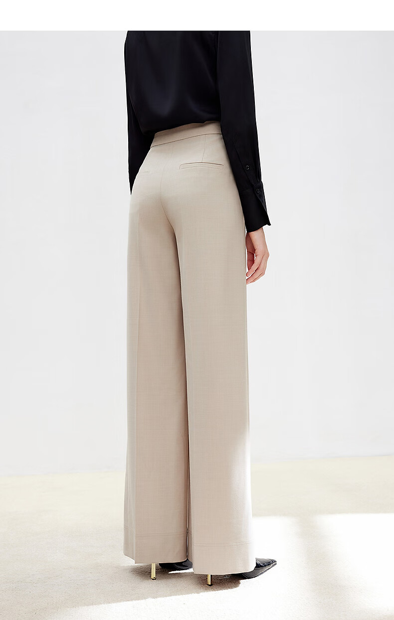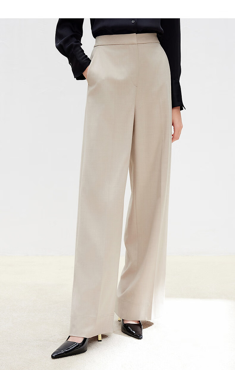 Langzi wool trousers black trousers straight-leg professional wide-leg trousers 2025 autumn new high-end suit trousers oat milk color XL