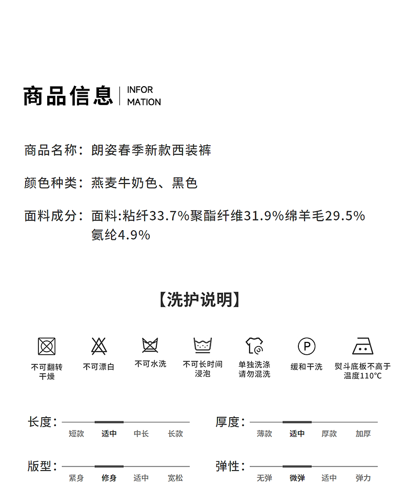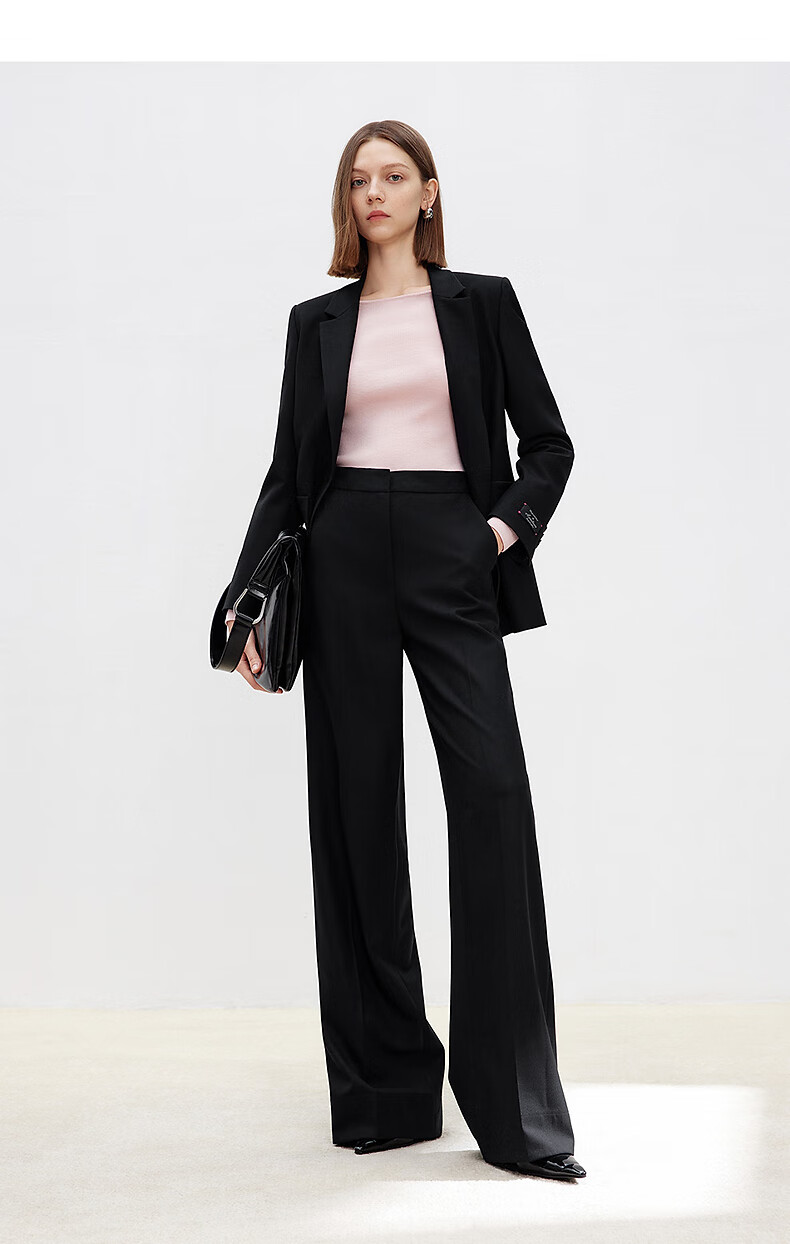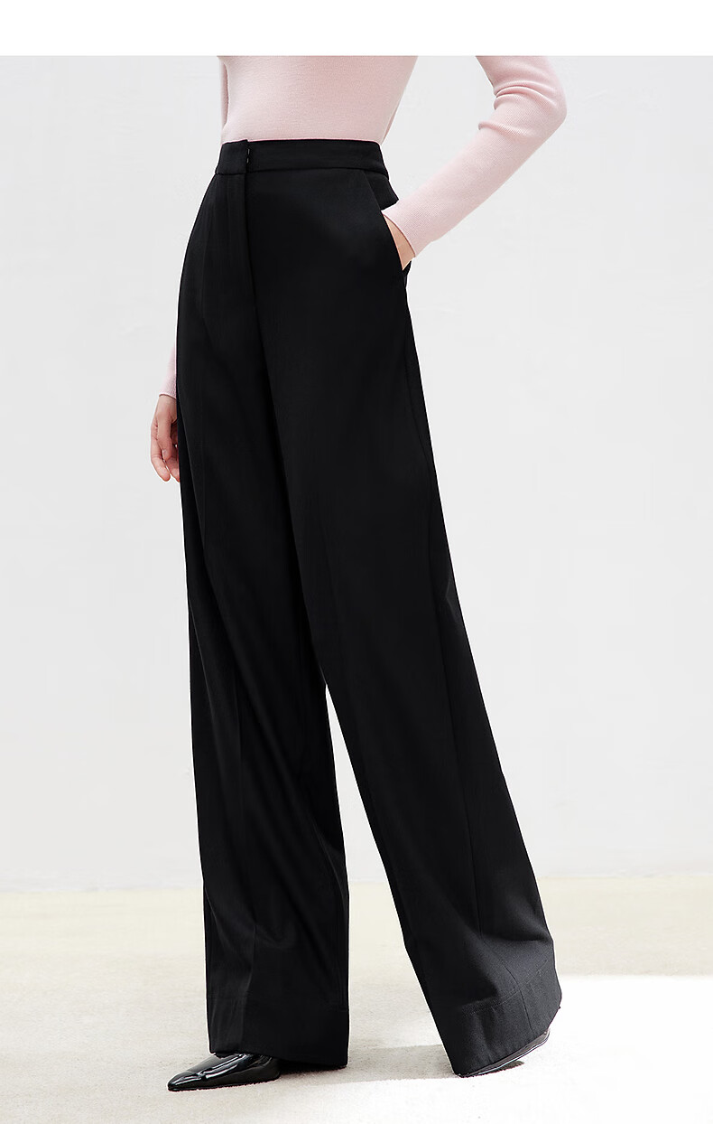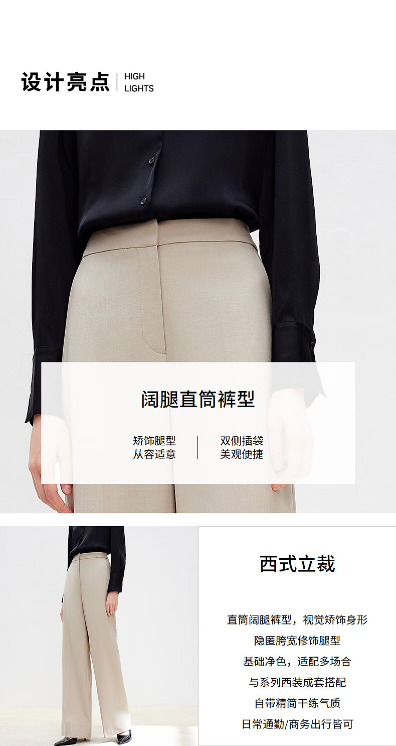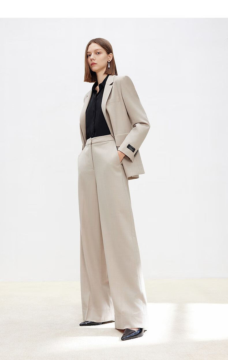 Langzi wool trousers black trousers straight-leg professional wide-leg trousers 2025 autumn new high-end suit trousers oat milk color XL