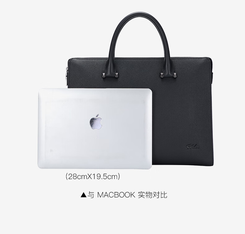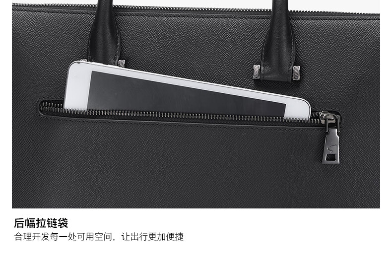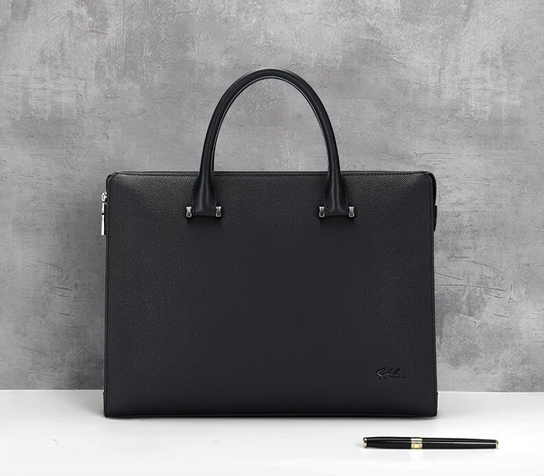 SATCHI briefcase business casual genuine leather multi-compartment styling simple first layer cowhide men's bag can hold 13-inch computer black 14-inch
