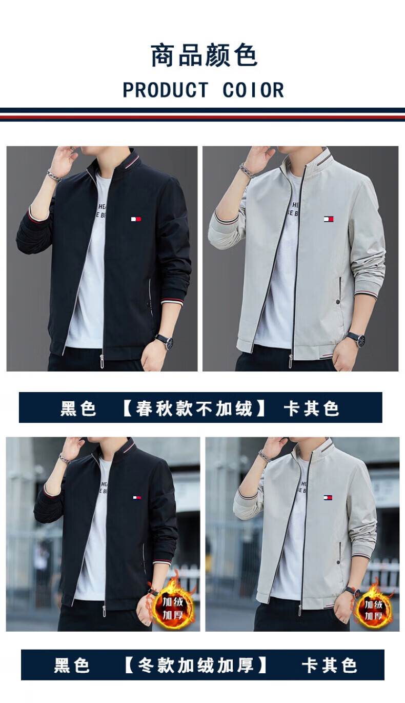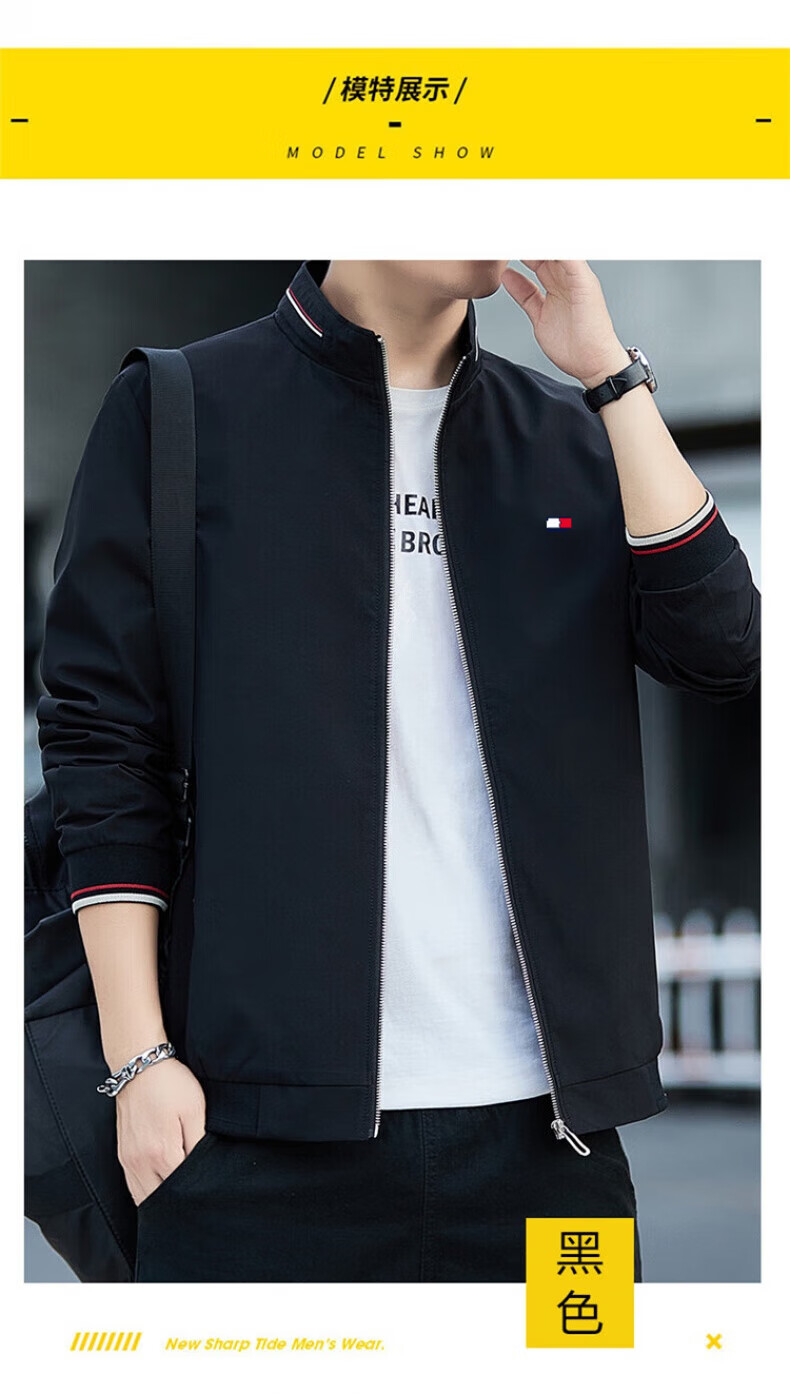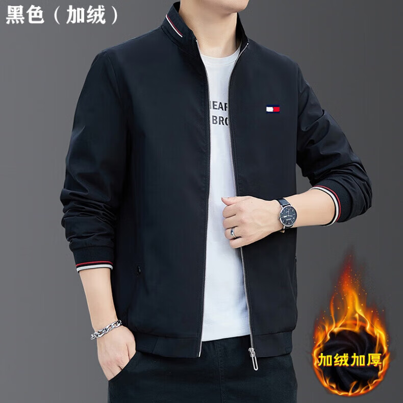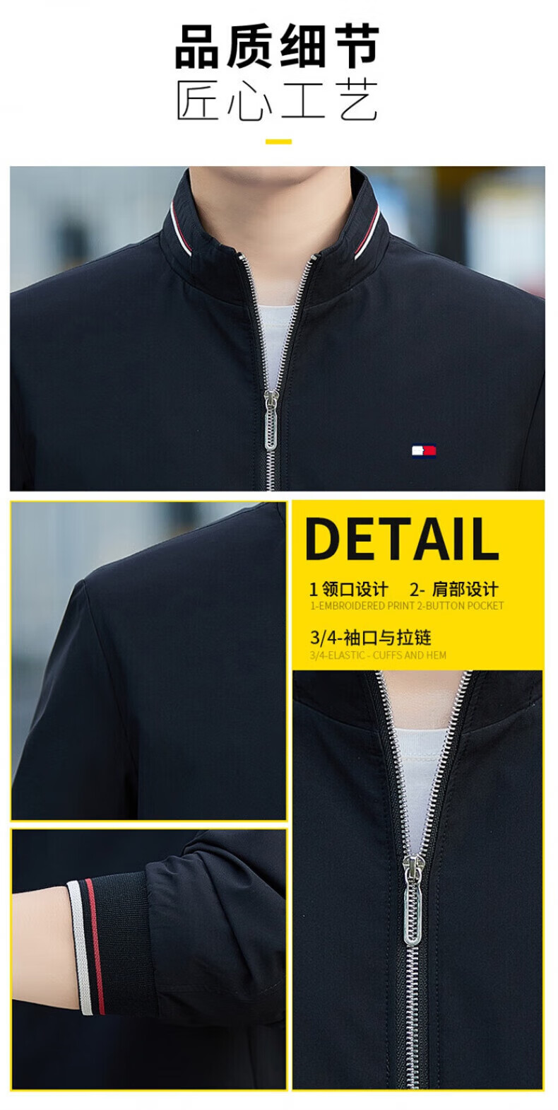 TOME BORNEK American Tommy's official men's jacket for young and middle-aged business casual fashion trend tops windproof stand-collar jacket black non-velvet spring and autumn style XL 175-115