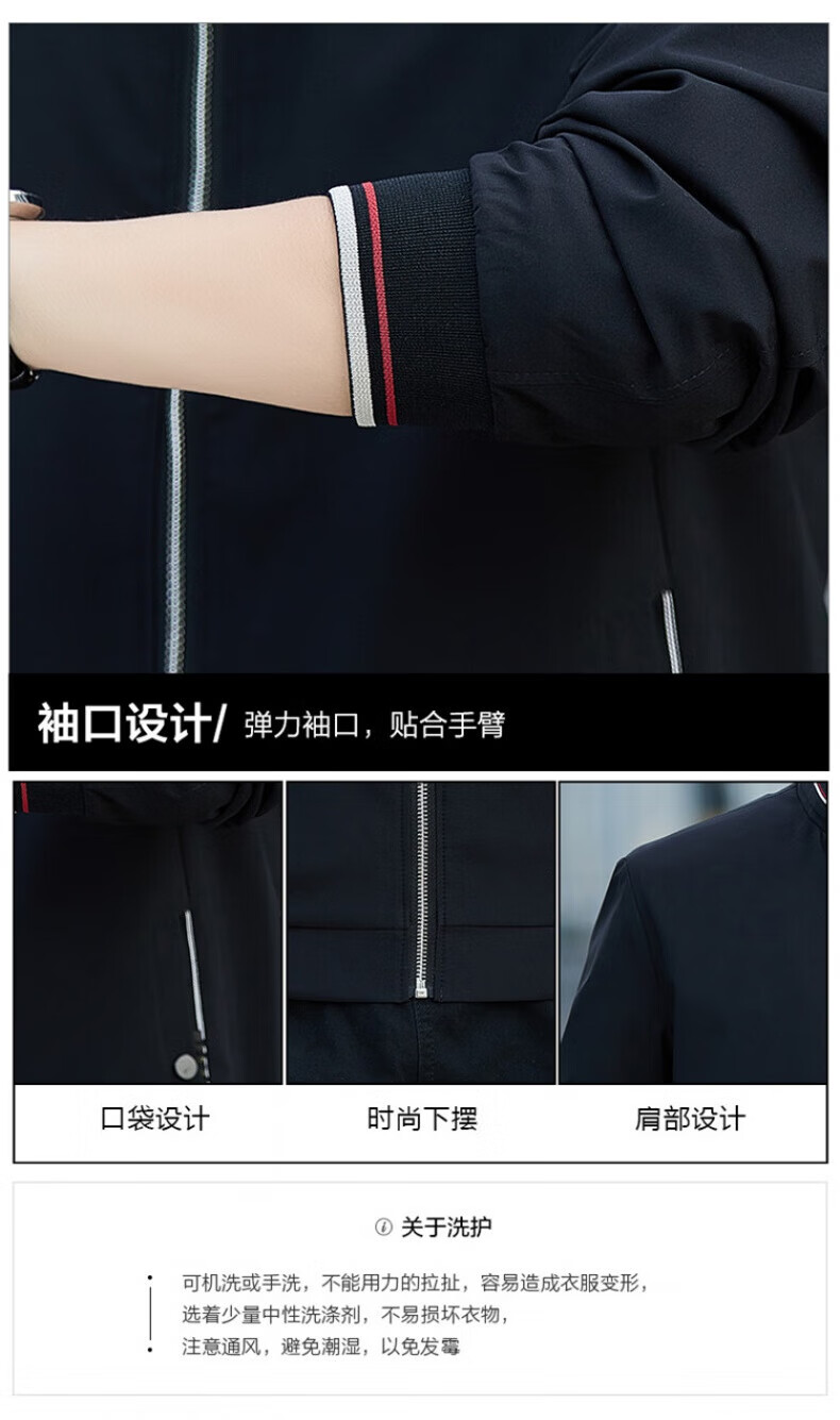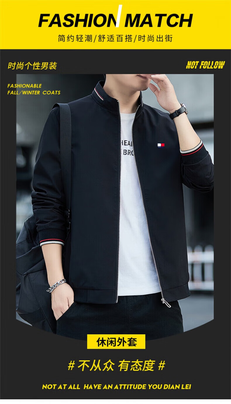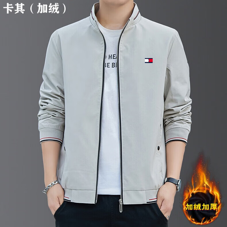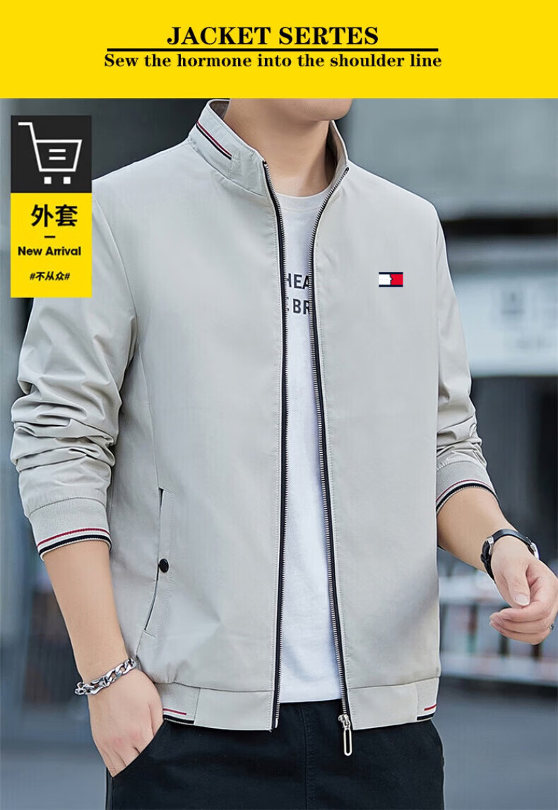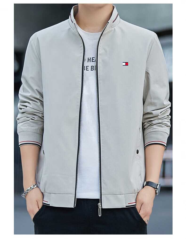 TOME BORNEK American Tommy's official men's jacket for young and middle-aged business casual fashion trend tops windproof stand-collar jacket black non-velvet spring and autumn style XL 175-115