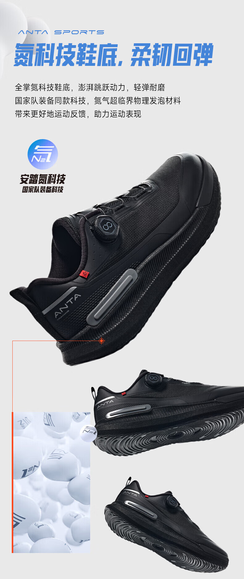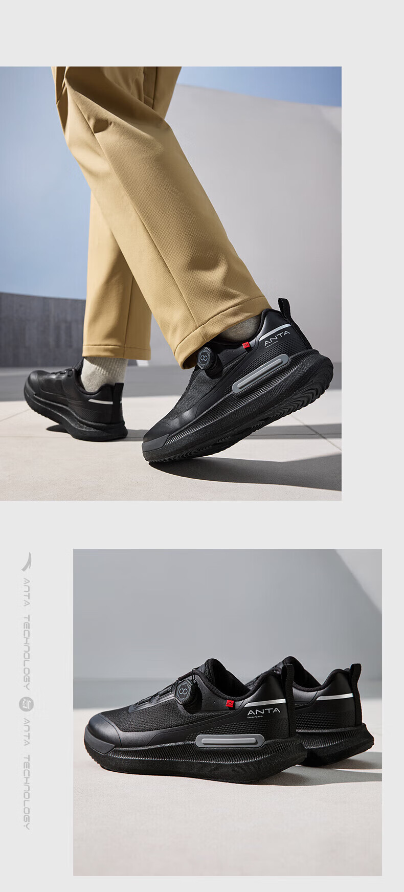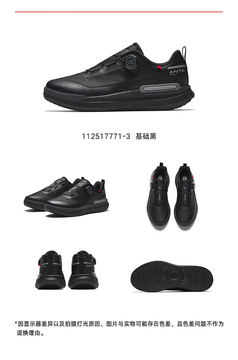 ANTA Wanli丨Comfortable Cushioning Training Shoes Men's Spring and Summer New Soft Sole Commuting Sports Shoes Basic Black-3 39 (245mm)
