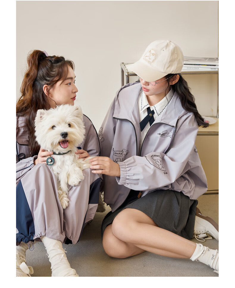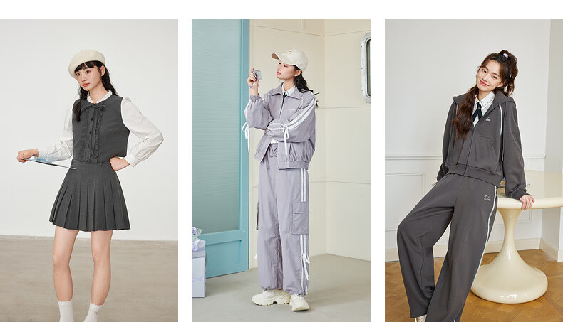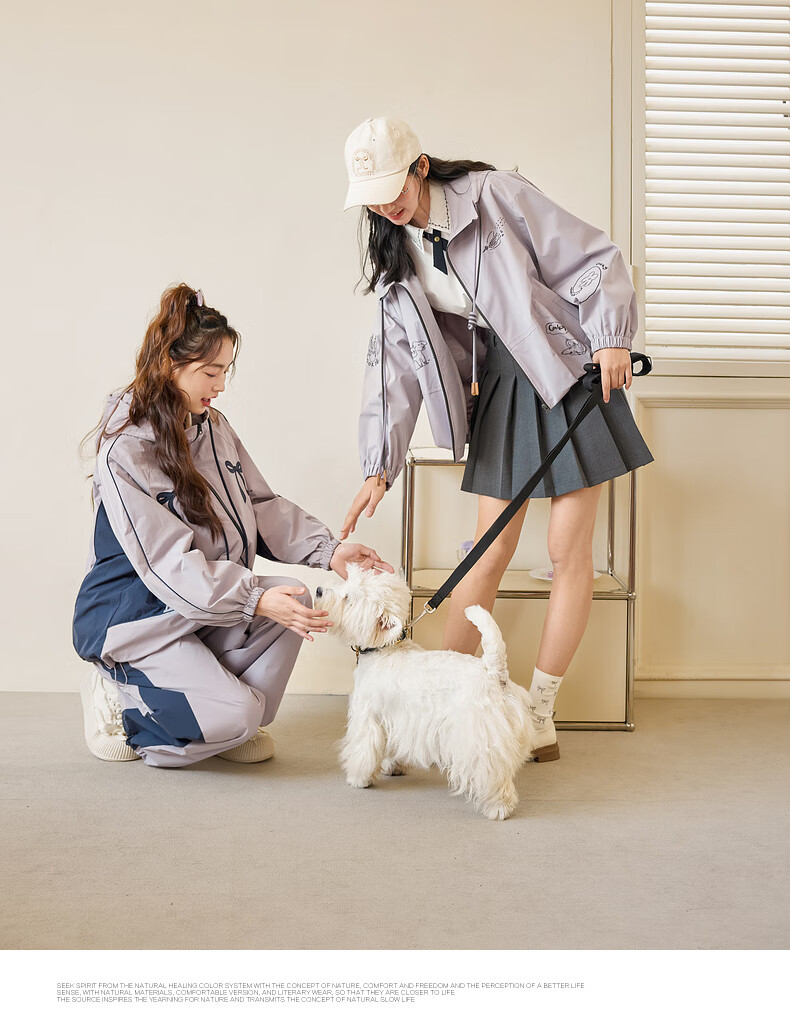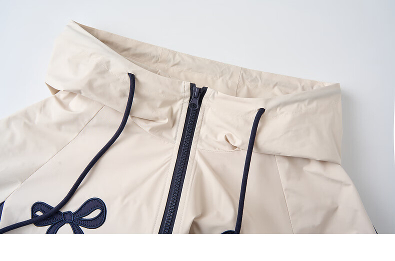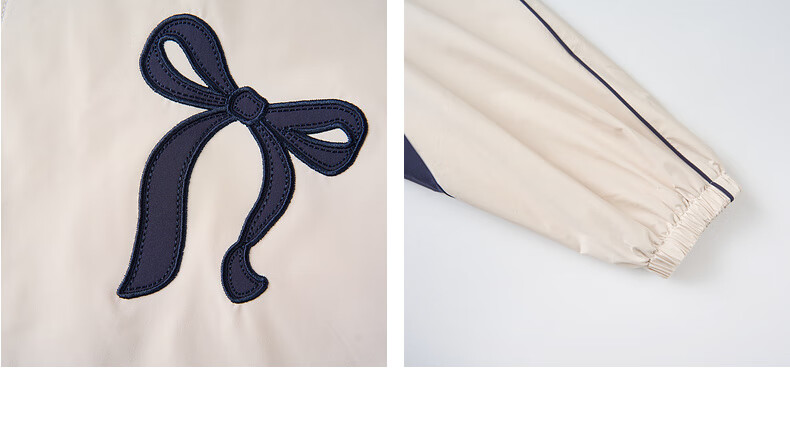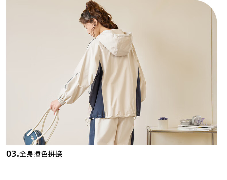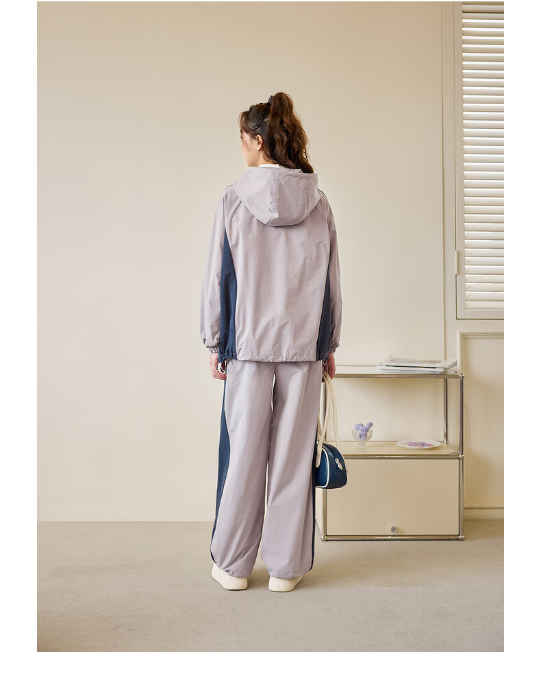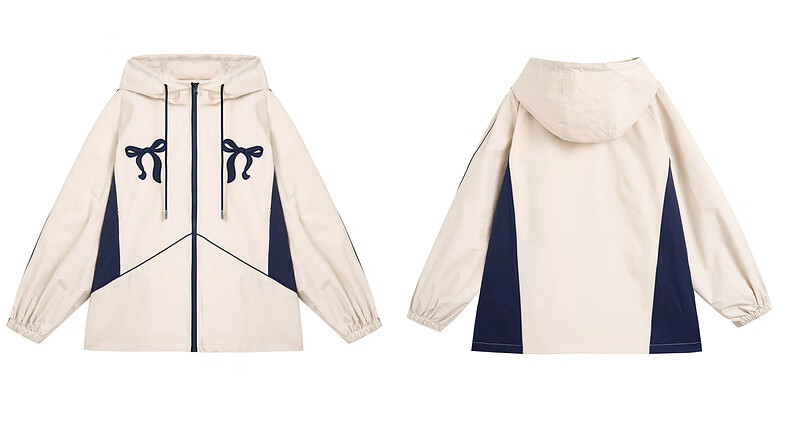 Zihan (ZIHAN) Zihan Bow Contrast Color Splicing Hooded Jacket Wide Leg Casual Pants Two-piece Suit Women's 2025 Spring New Beige XS