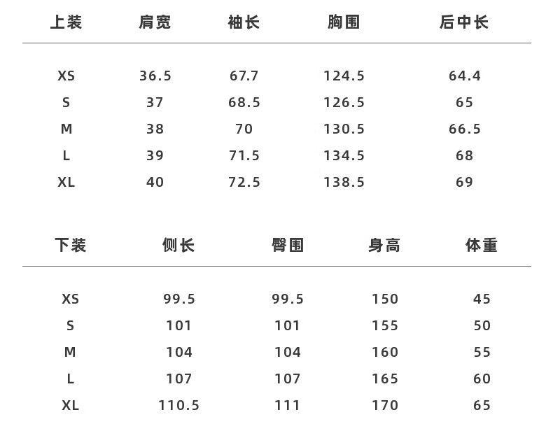 China (cm) 160-165/84-86 165-170 / 88-90 167-172 / 92-96 168-173 / 98-102 170-176 / 106-110