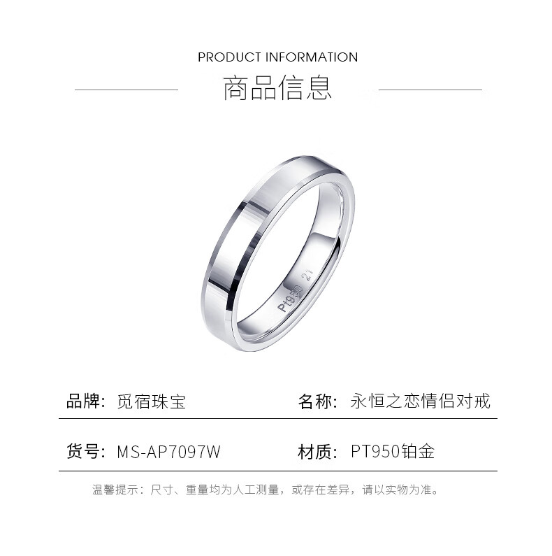 Misu PT950 solid platinum ring for men and women, couple model, platinum classic glossy ring, wedding ring, birthday, No. 9, single, weighing 3.5-3.7 grams, solid