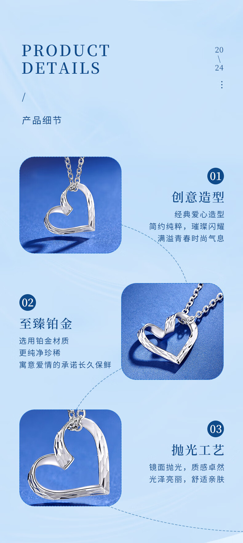 China Gold (CHINA GOLD) Platinum Love Pendant for Women PT950 Platinum Necklace Heart-shaped Platinum Pendant Wedding and Birthday Gift for Girlfriend PT950 Platinum Love Pendant About 1.1g Free Silver Chain