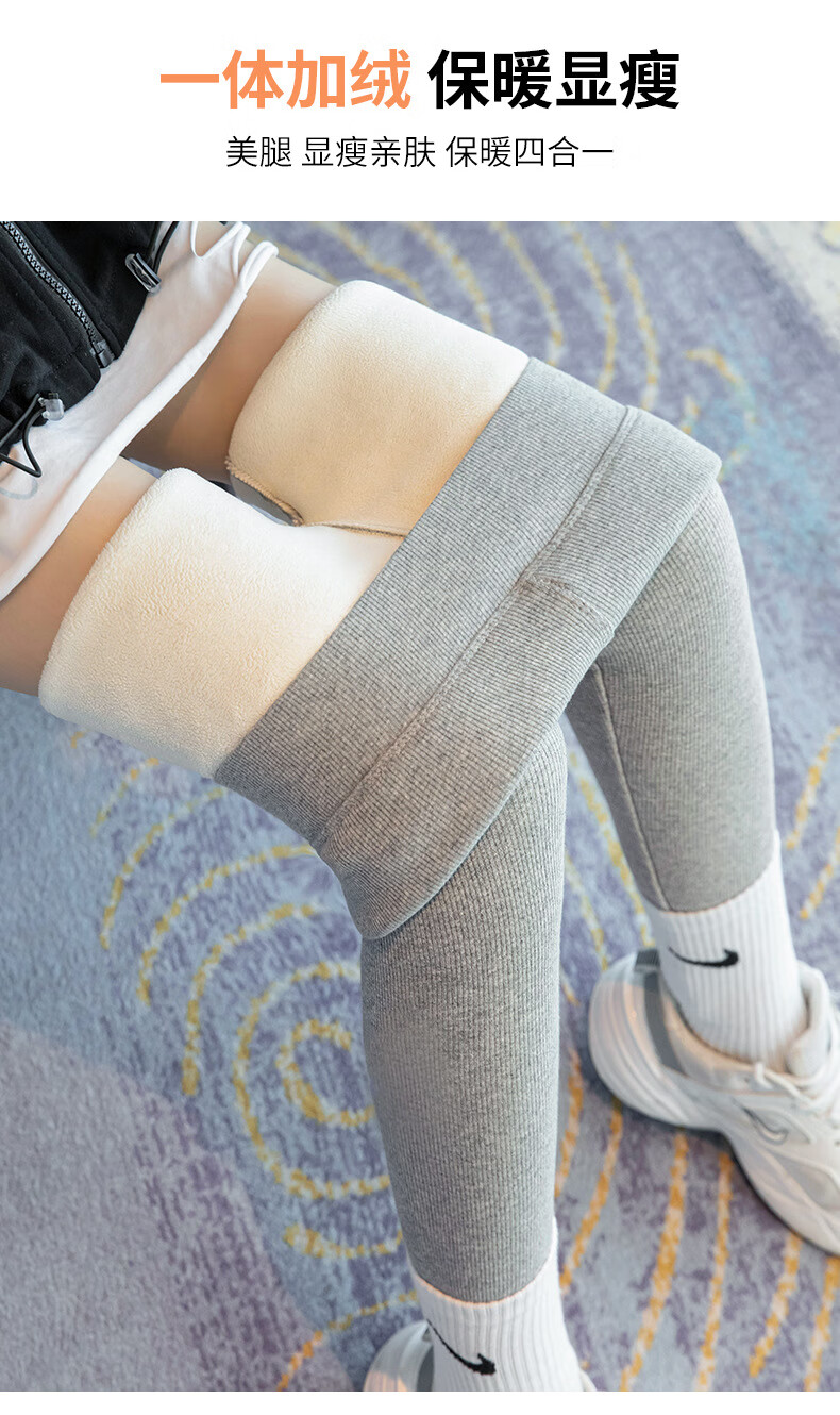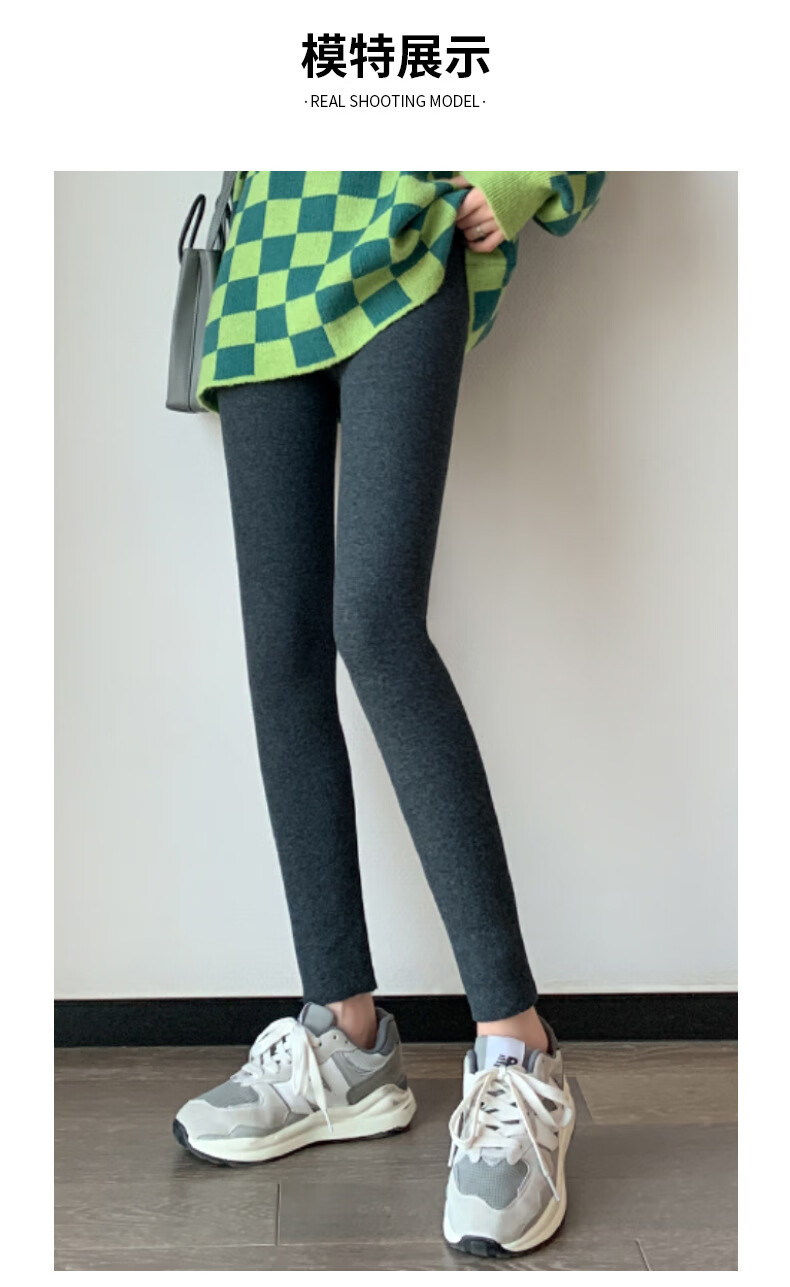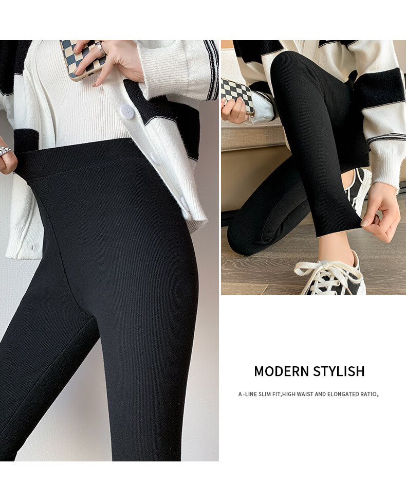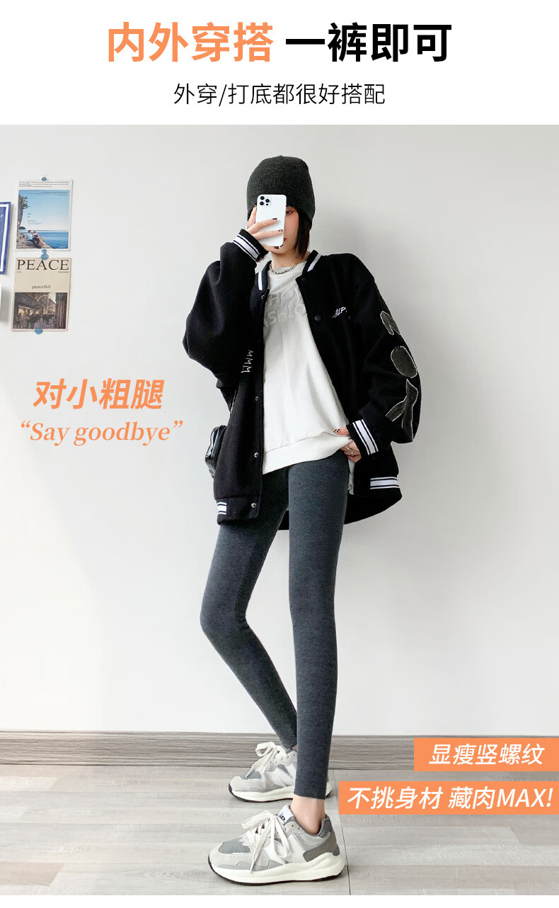 2024 new autumn and winter brushed ribbed leggings for women that can be worn outside high-waisted slim-fitting high-elastic warm trousers black-brushed style one size fits all 80-125Jin Jin is equal to 0.5 kg