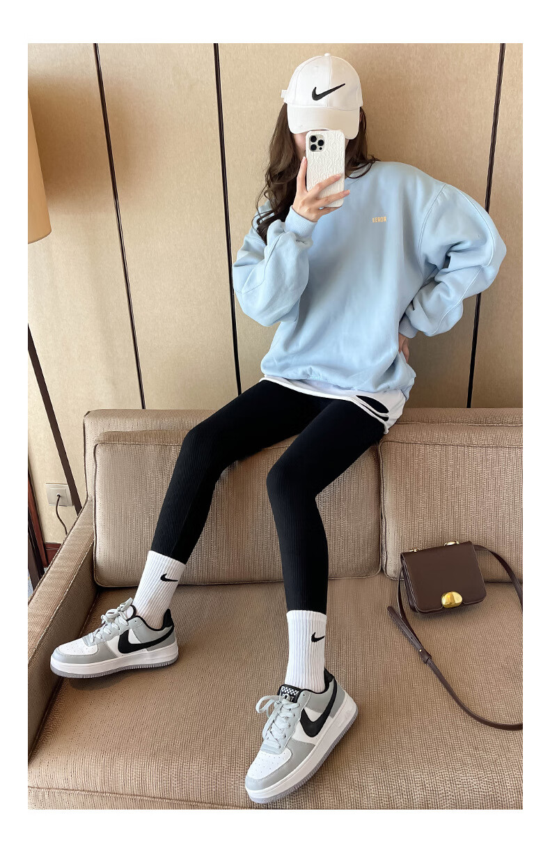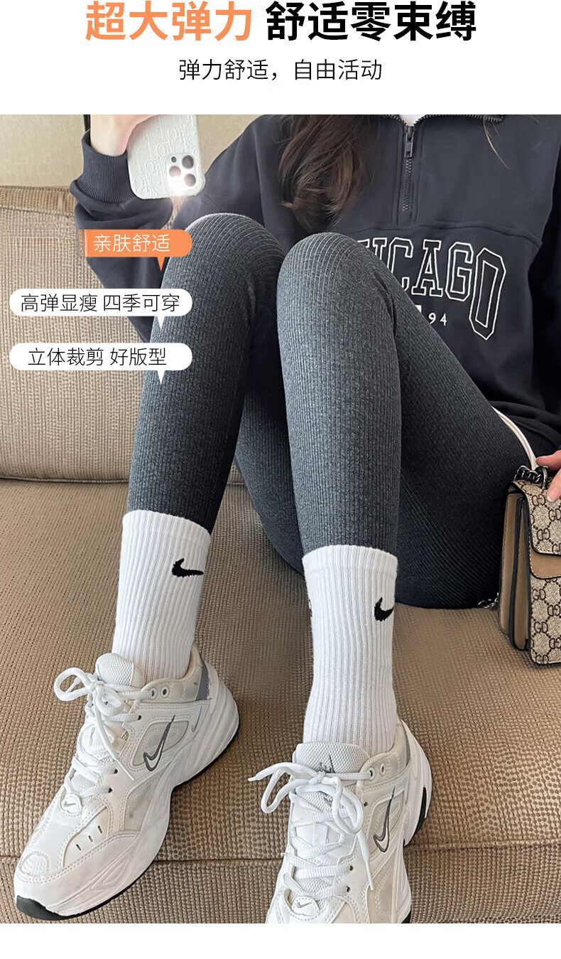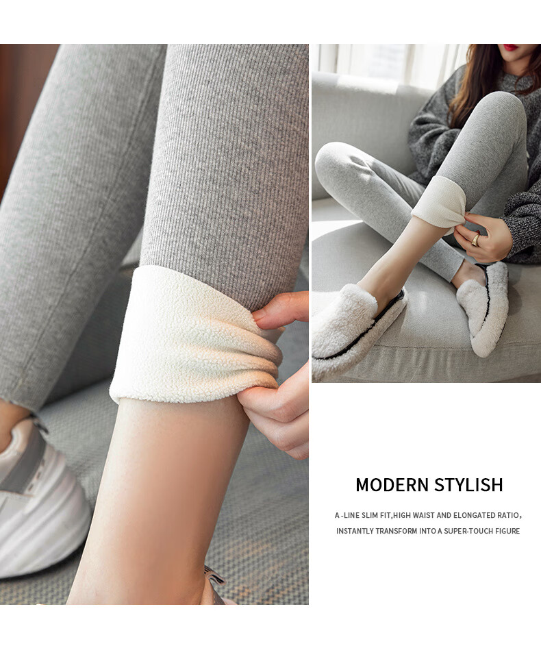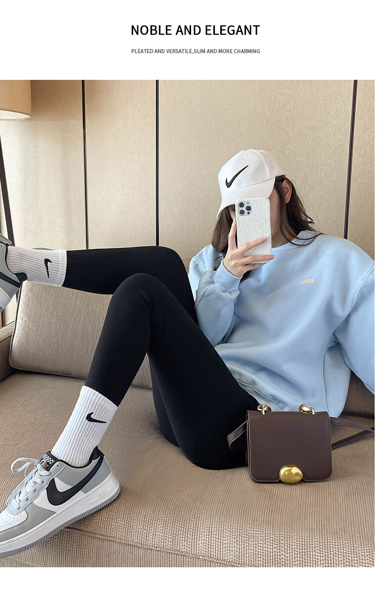 2024 new autumn and winter brushed ribbed leggings for women that can be worn outside high-waisted slim-fitting high-elastic warm trousers black-brushed style one size fits all 80-125Jin Jin is equal to 0.5 kg