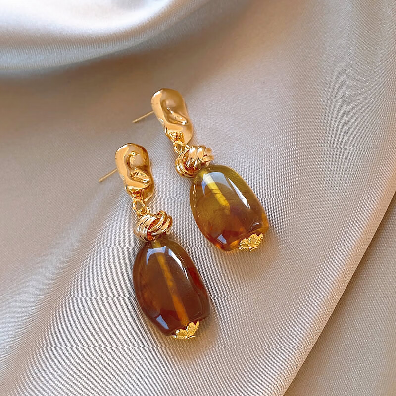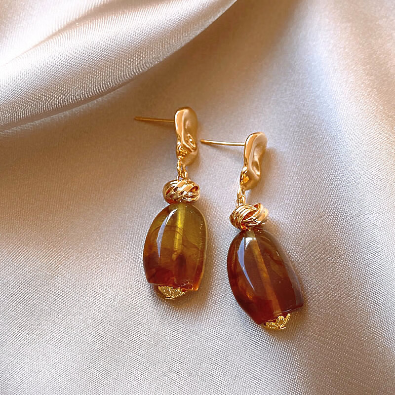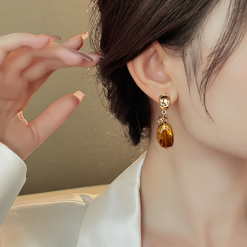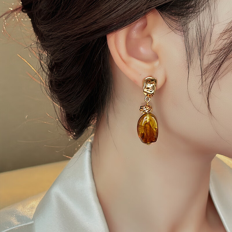 Ji Yuyou Clear Amber Maillard Earrings Women's High-Quality Light Luxurious Temperament Earrings Autumn and Winter Earrings 2025 New Amber