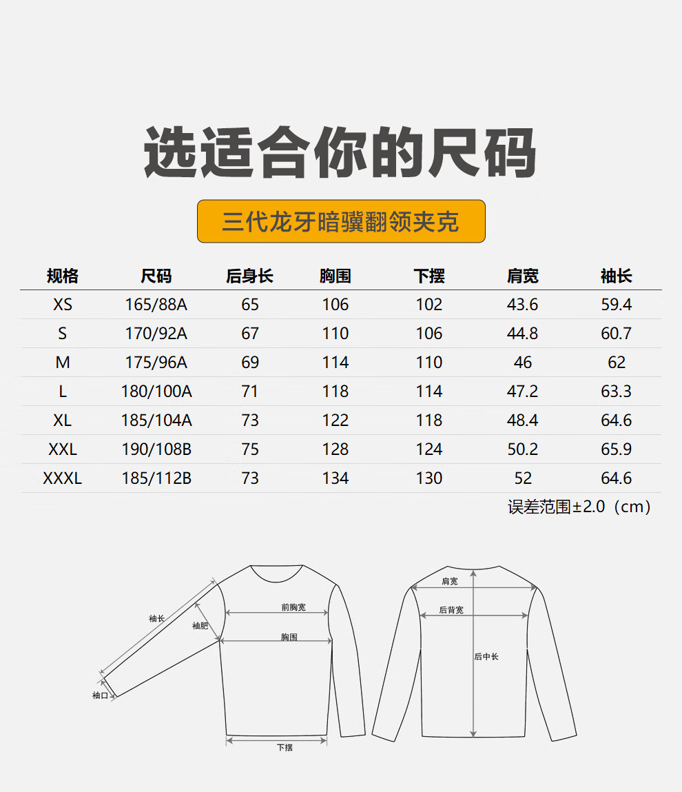 China (cm) 165 / 88-90 170 / 96-98 175 / 108-110 180 / 118-122 185 / 126-130