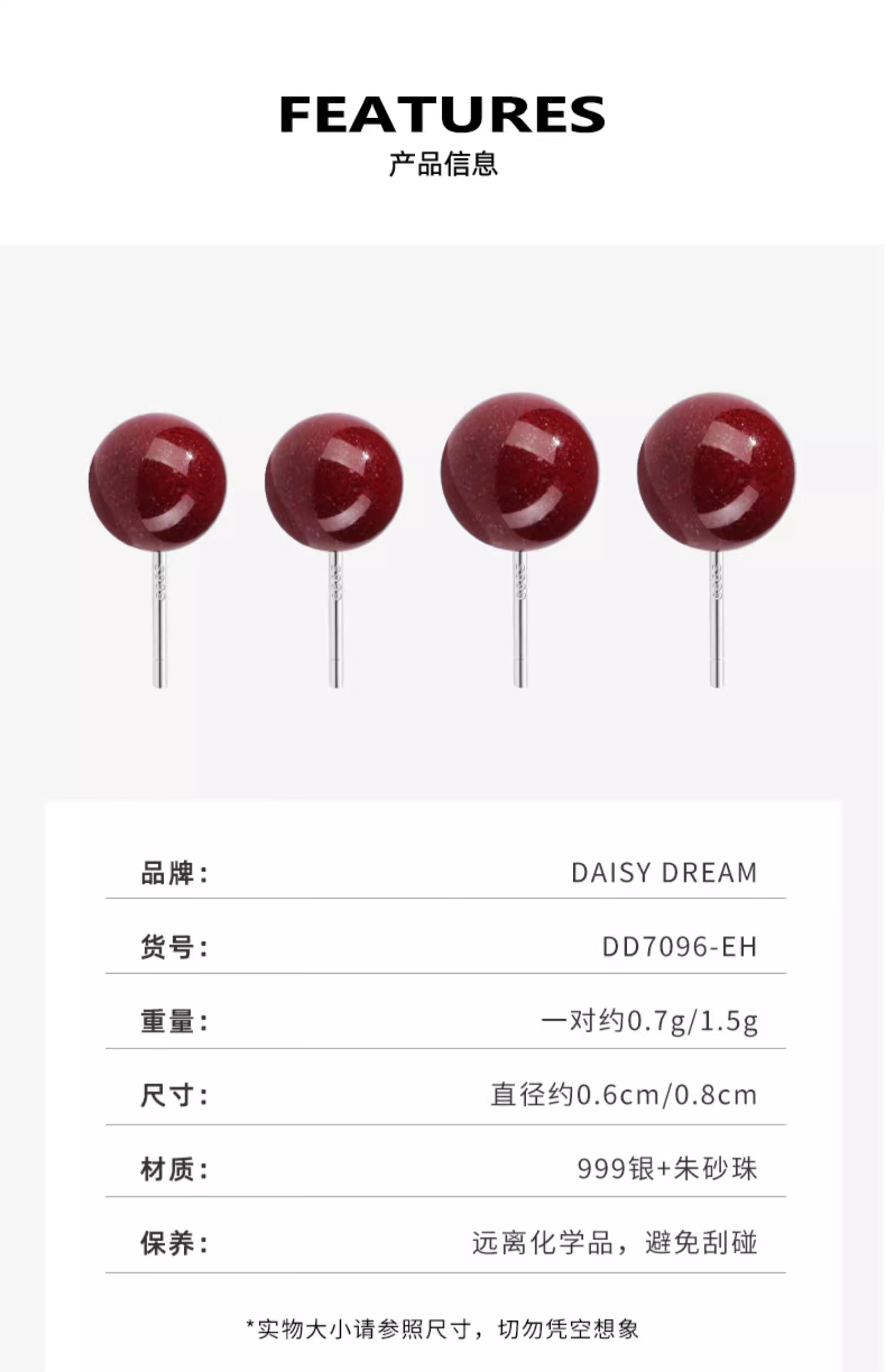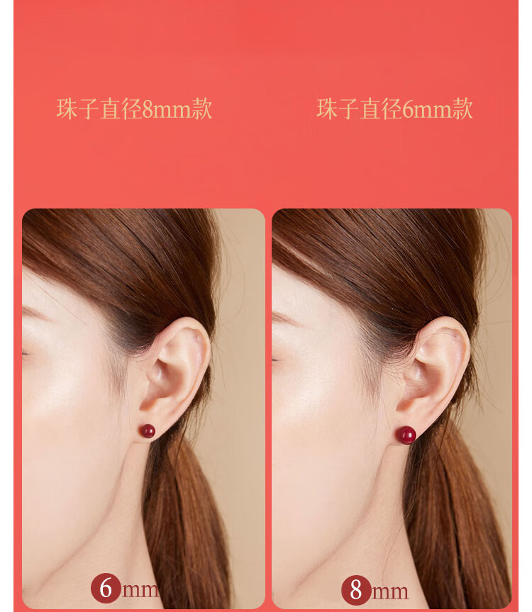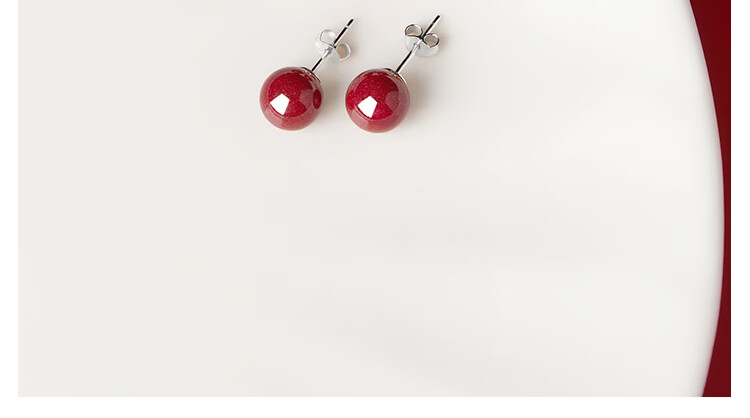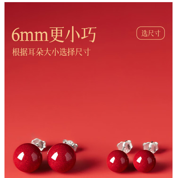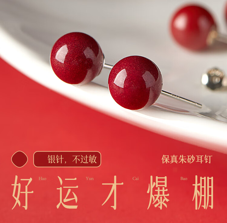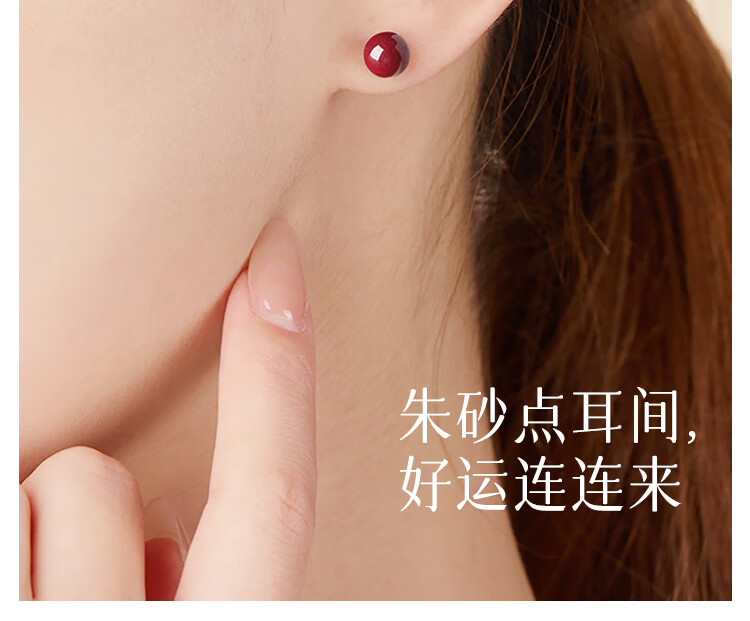 DAISY DREAM 999 pure silver cinnabar earrings for women, high-end pierced ears, light luxury earrings, versatile new red silver earrings, 8mm cinnabar earrings, 999 pure silver