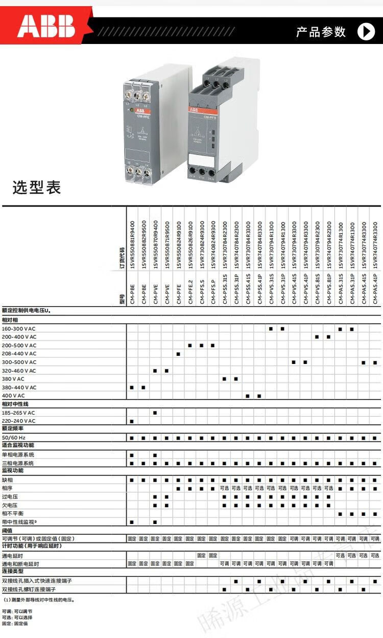 ABB phase sequence protector CM-PFS.S three-phase monitor series CM-PEF, CM-MPS.41S CM-IWS.1S