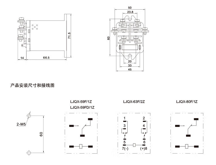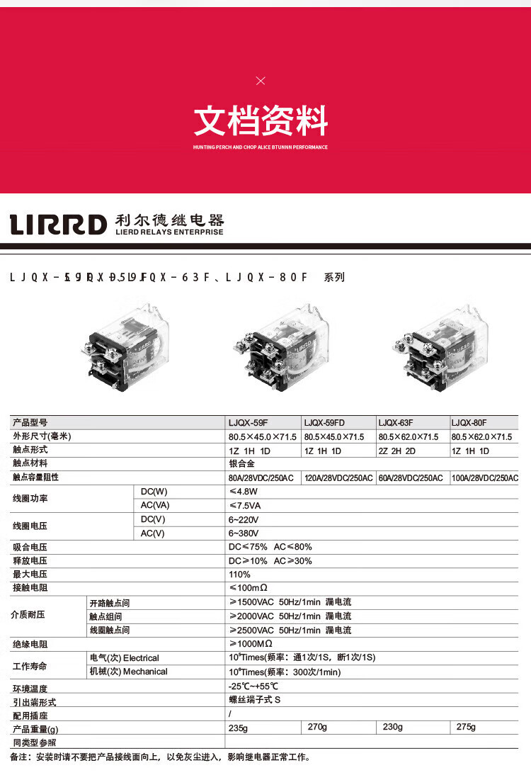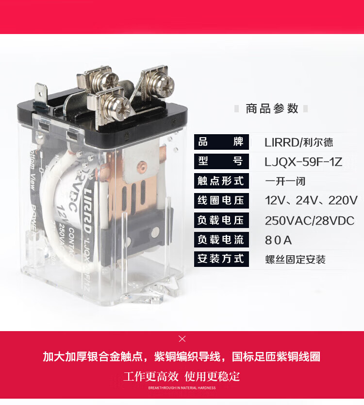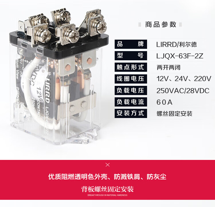 Suitable for Liard electromagnetic relay LJQX-63F/2Z two open and two closed high current 60A 12V 24V 220V customized custom 12V 80A one open and one closed