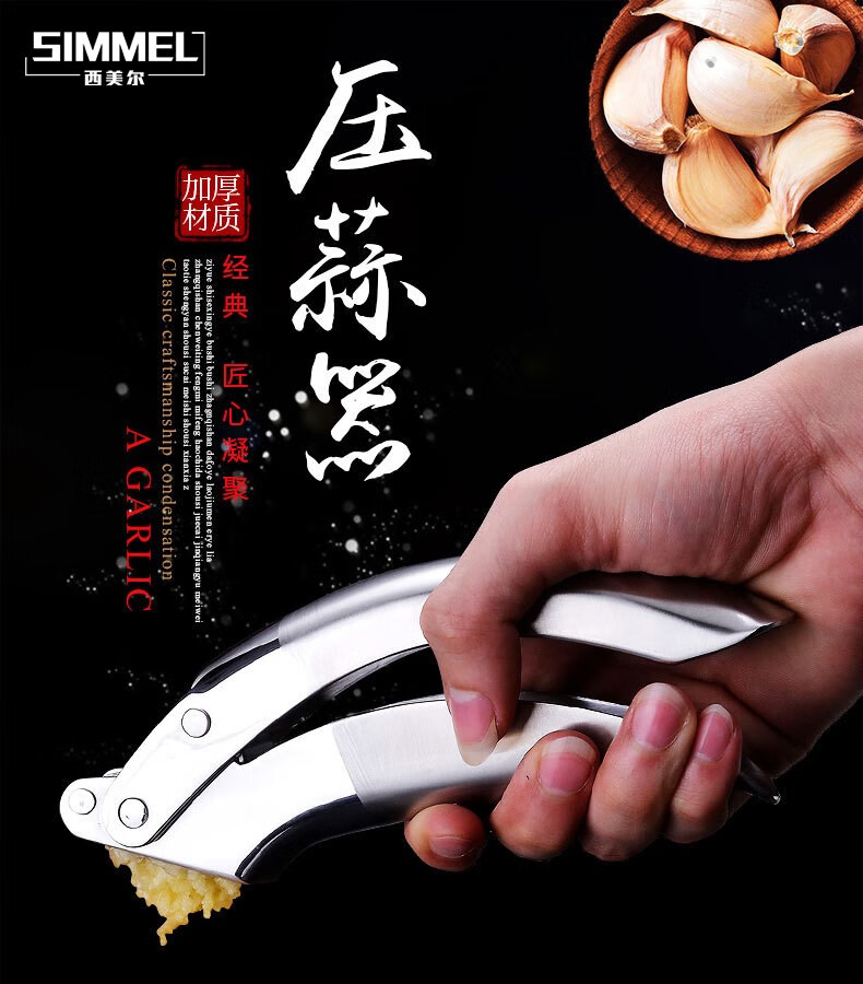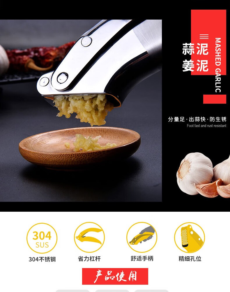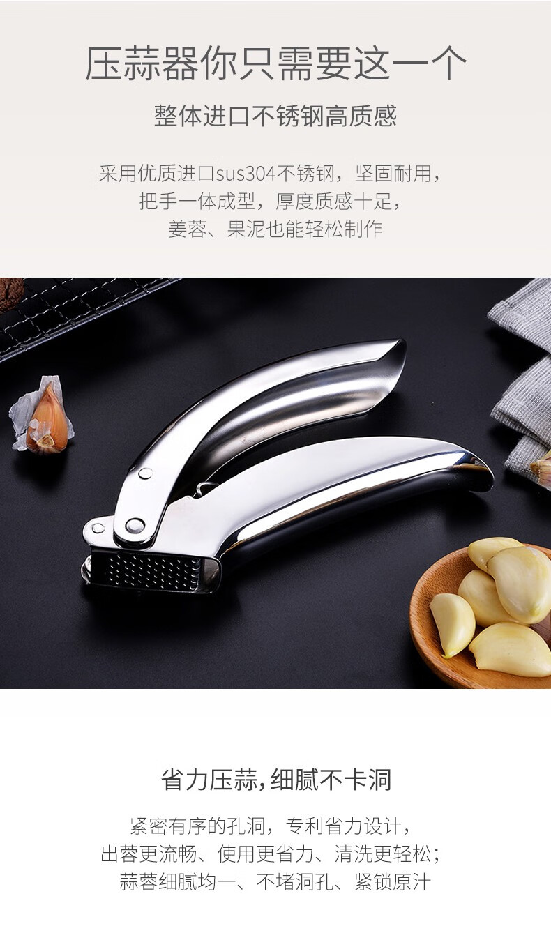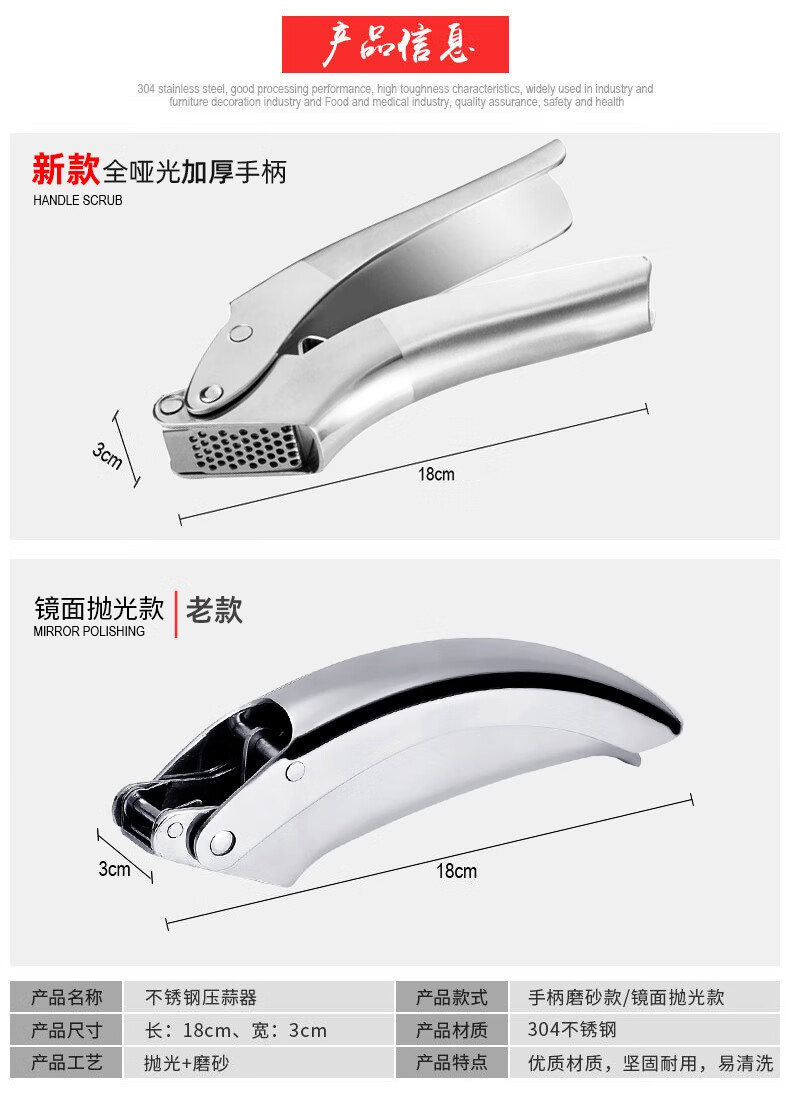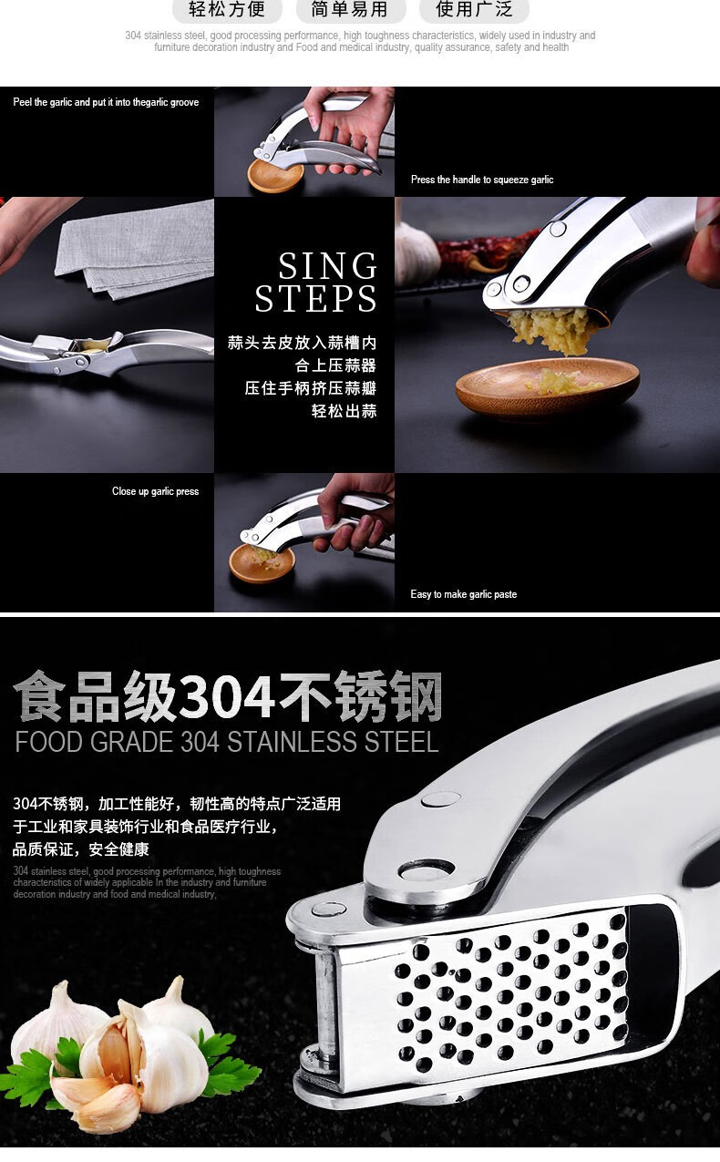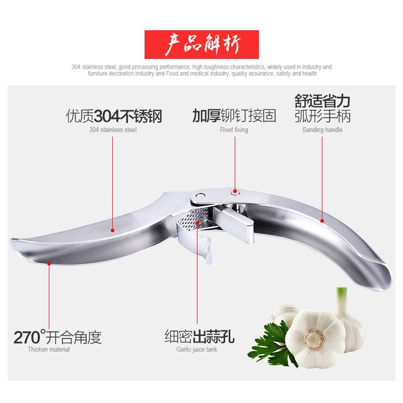 Swiss 304 stainless steel garlic press, thickened garlic press, household manual garlic press, garlic press, Swiss design garlic press