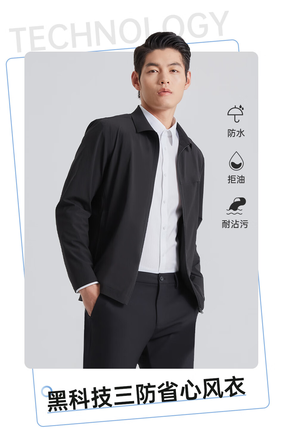 Lilang three-proof jacket men's coat thin spring 25 commuter business casual anti-fouling windproof men's executive jacket black (lapel style) G5CFY0031Y XL 175/92A