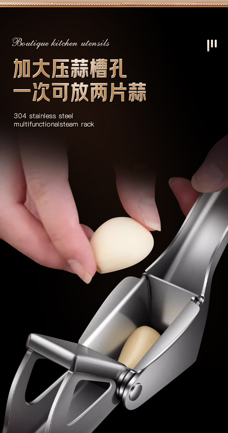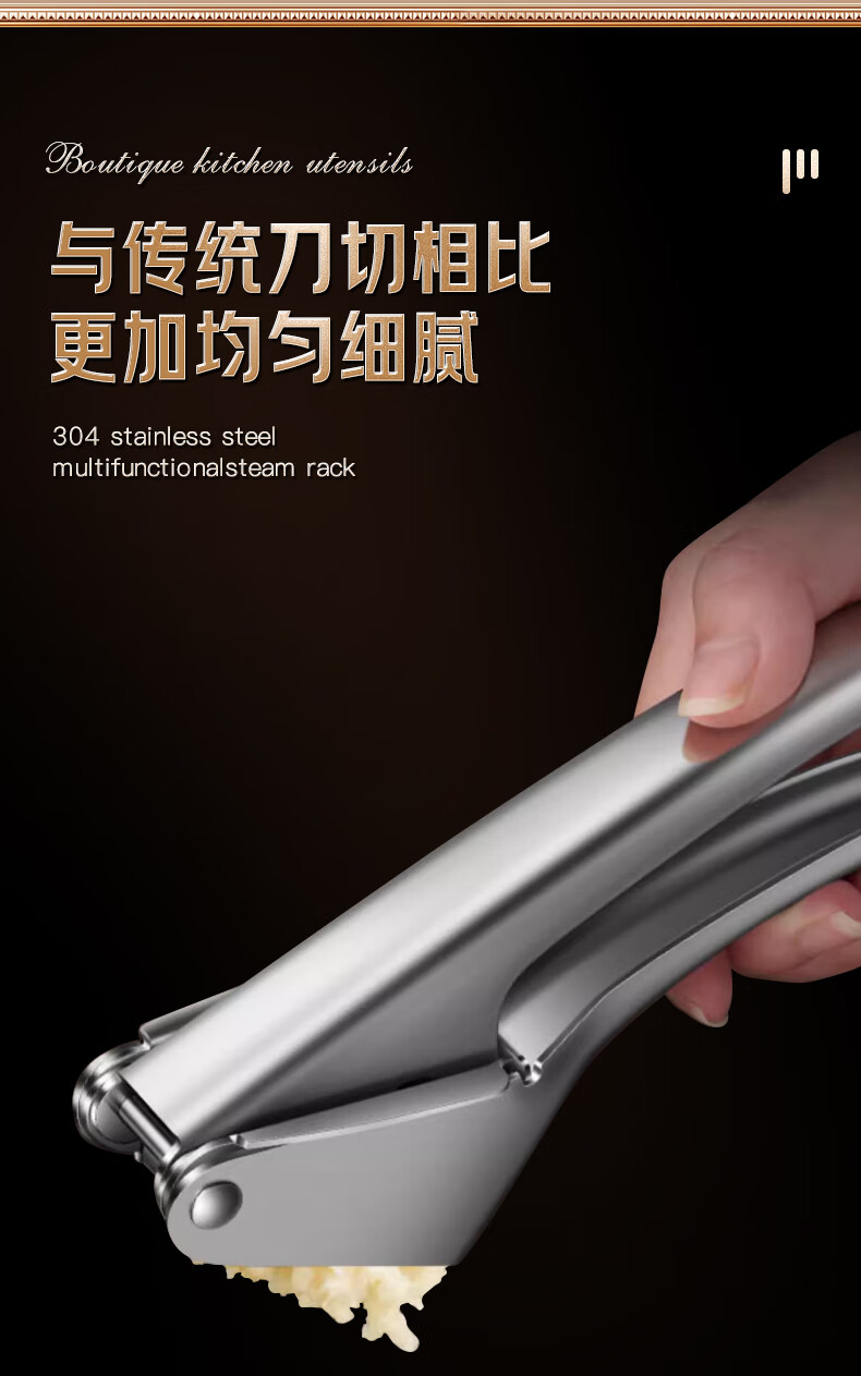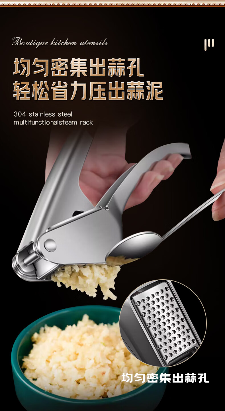 Lianna 304 stainless steel garlic press integrated thickened garlic squeezer garlic paste kitchen manual garlic masher Yuewan 304 garlic press 72 holes ultra-fine