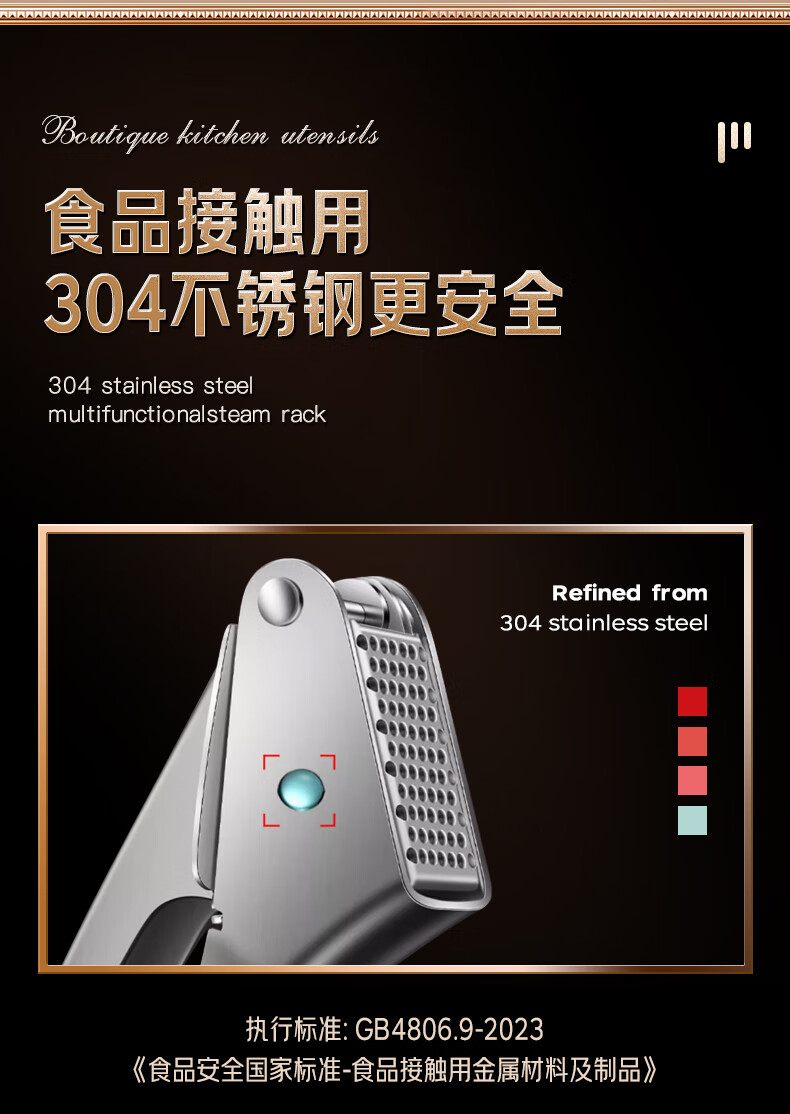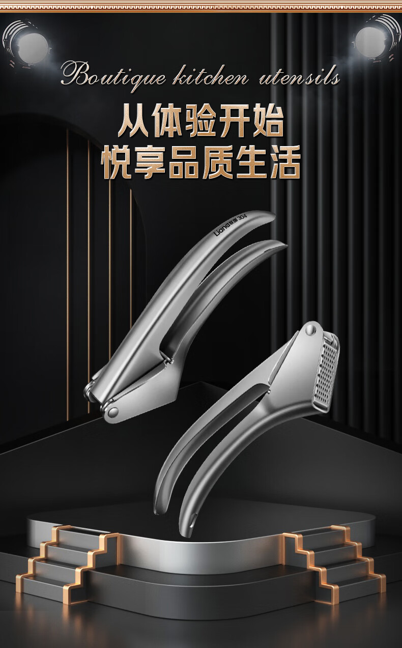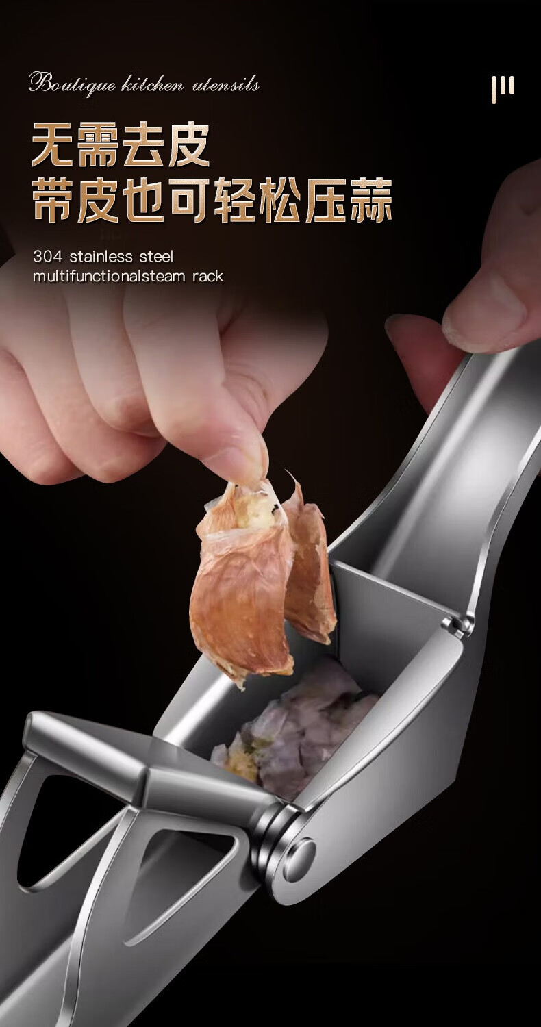 Lianna 304 stainless steel garlic press integrated thickened garlic squeezer garlic paste kitchen manual garlic masher Yuewan 304 garlic press 72 holes ultra-fine