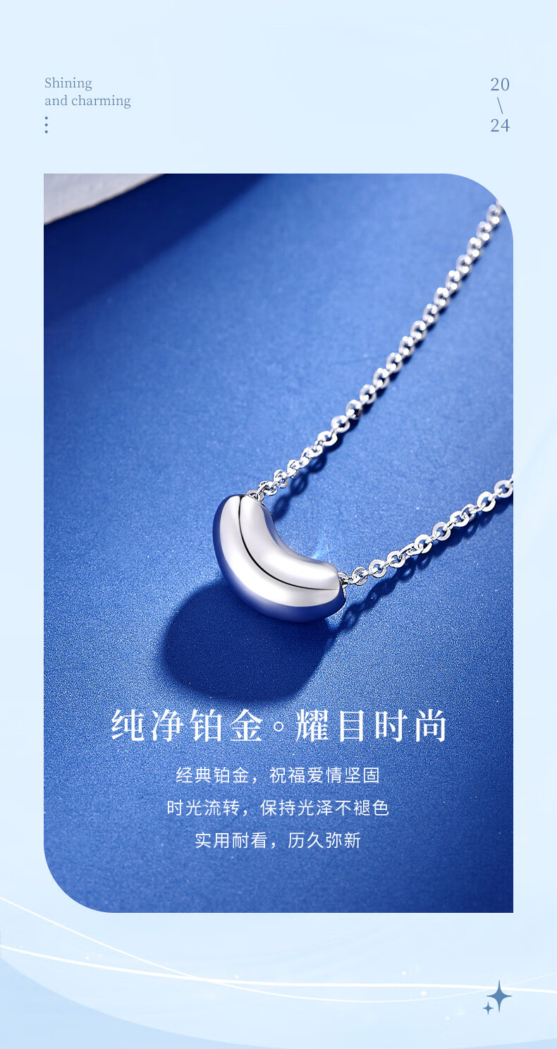 China Gold (CHINA GOLD) Lucky Bean Necklace for Women PT950 Platinum Pendant Acacia Bean Platinum Necklace Wedding and Birthday Gift for Girlfriend PT950 Platinum Lucky Bean Set Chain Approximately 3.4g