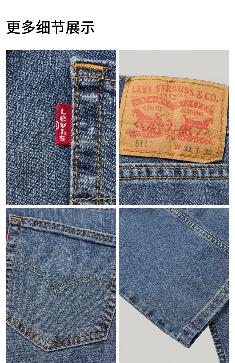 Levi's李维斯25年春夏新款男士时尚百搭511修身复古牛仔长裤04511 蓝色 32 (32)