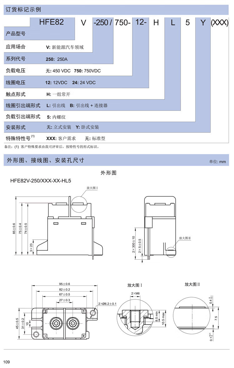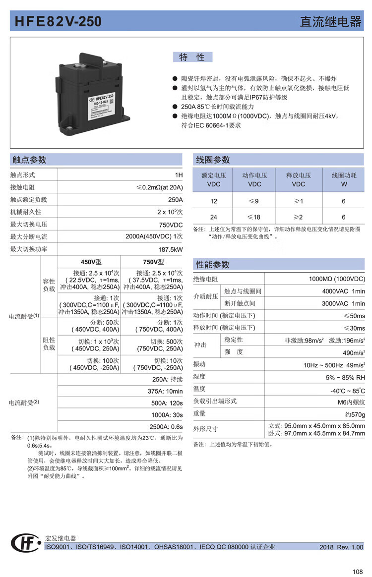 HFE82V-250/750-12 24-HL5 high voltage DC relay contactor electric vehicle customization HFE82V25075012HL5 coil 1