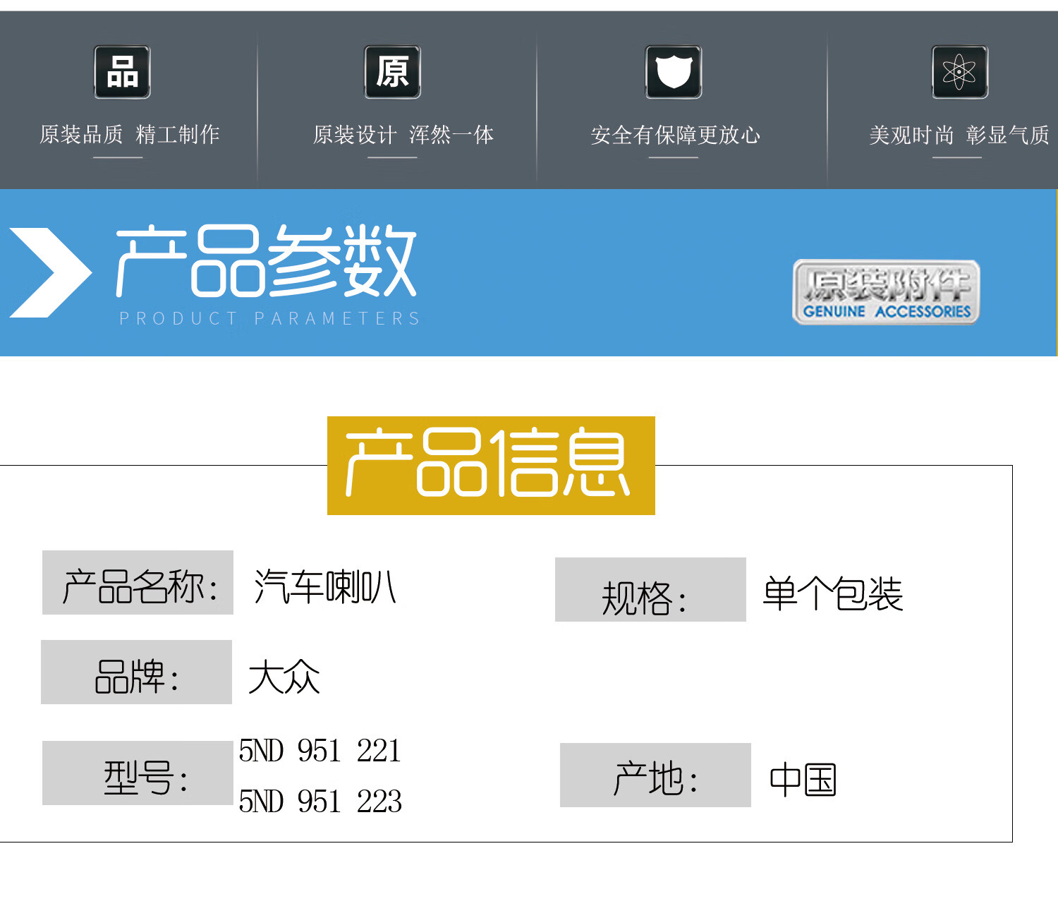 Volkswagen Tiguan Passat New Lavida New Octavia Tiguan L Tuyue car snail horn whistle horn original oval plug tweeter without packaging