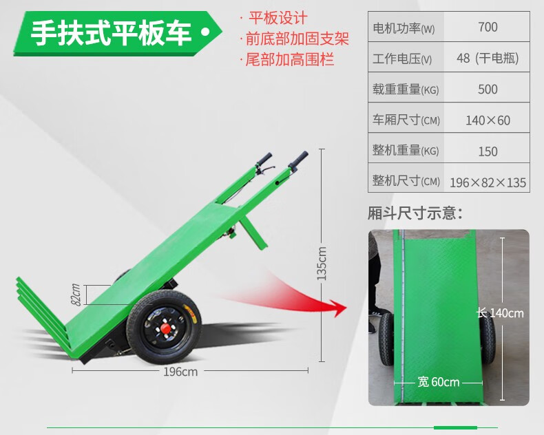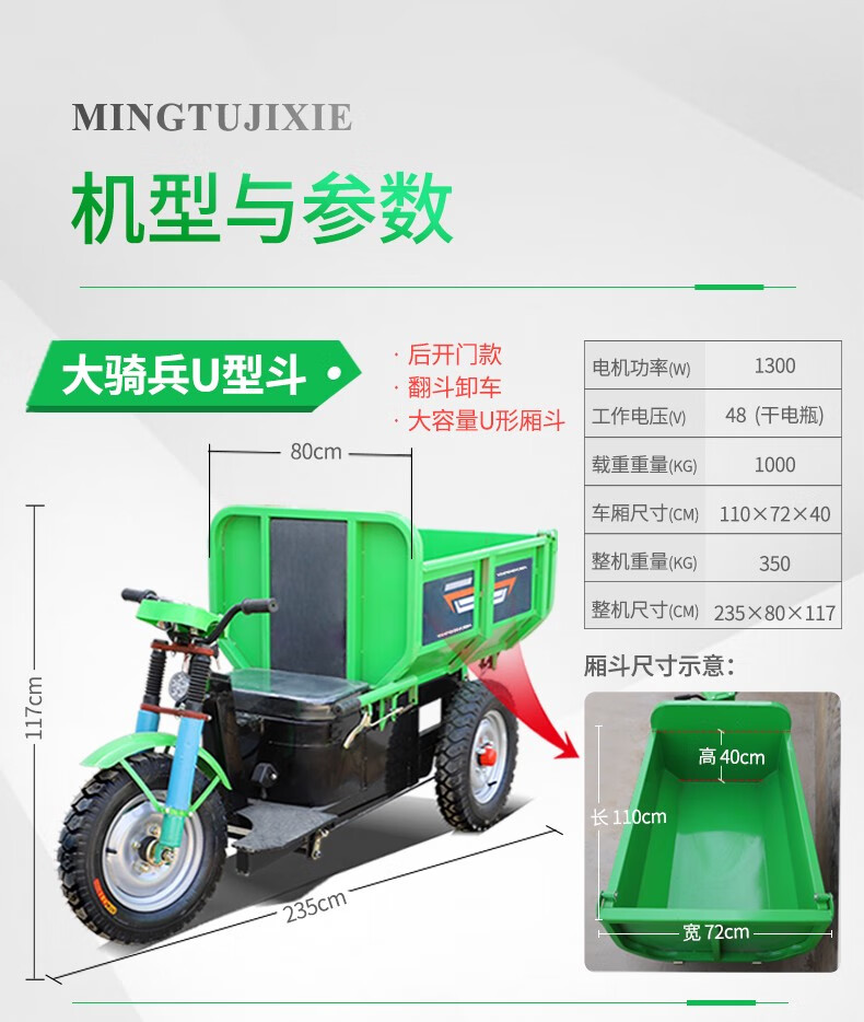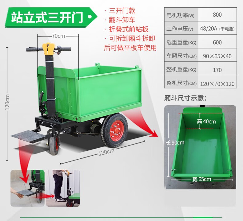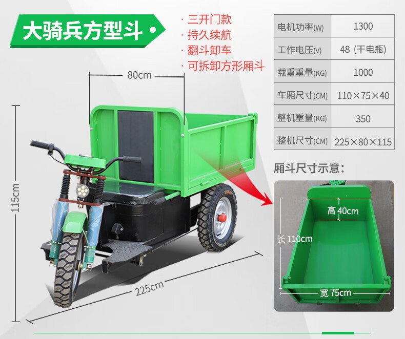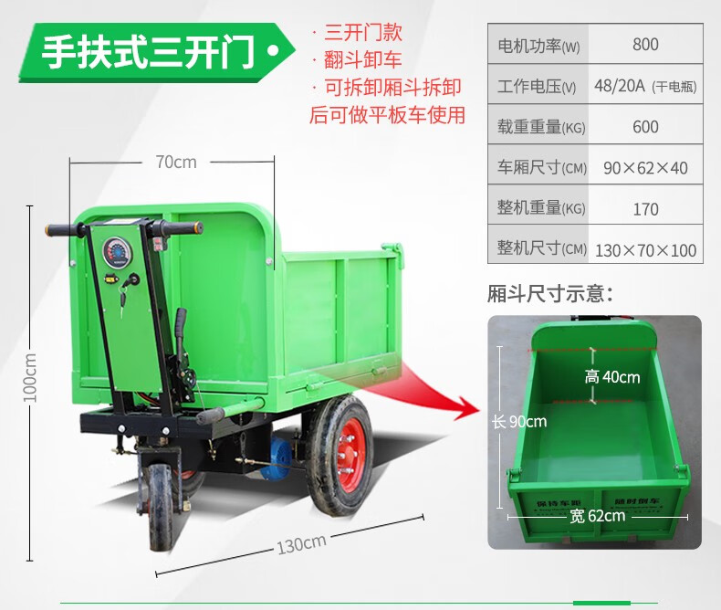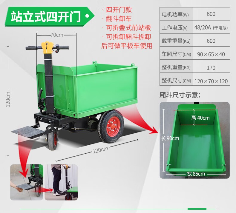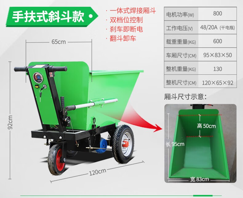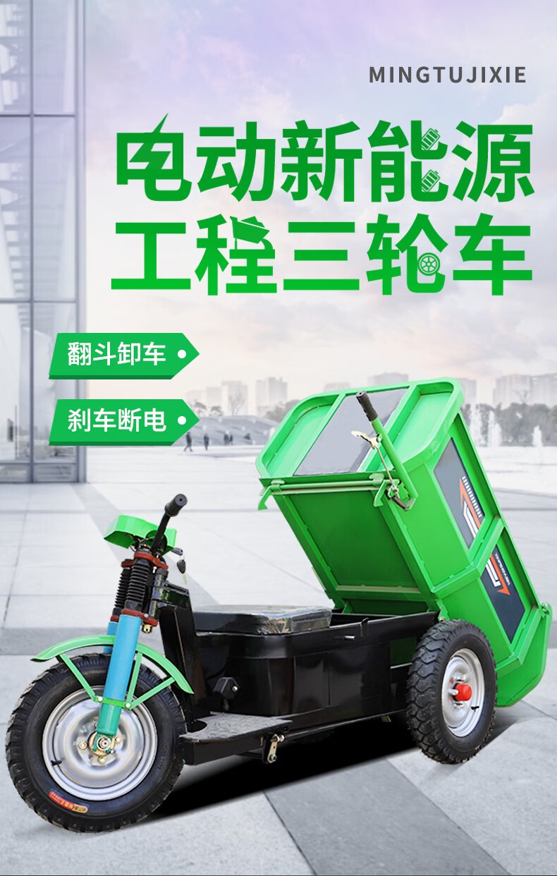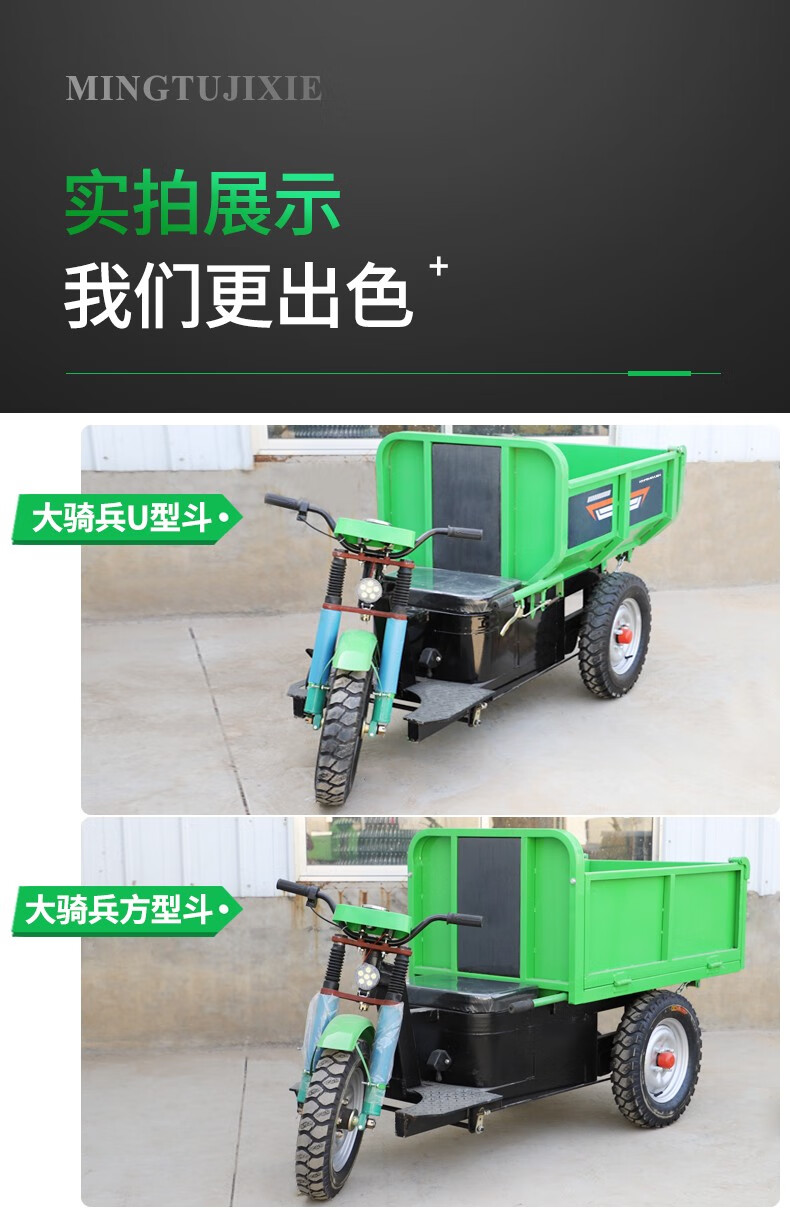 Wulang Mechanical Construction Site Tricycle Dump Hand Push Cargo Construction Cavalry Dump Loading Truck Electric Ash Bucket Truck Upgraded - Walk-behind - Flatbed Truck