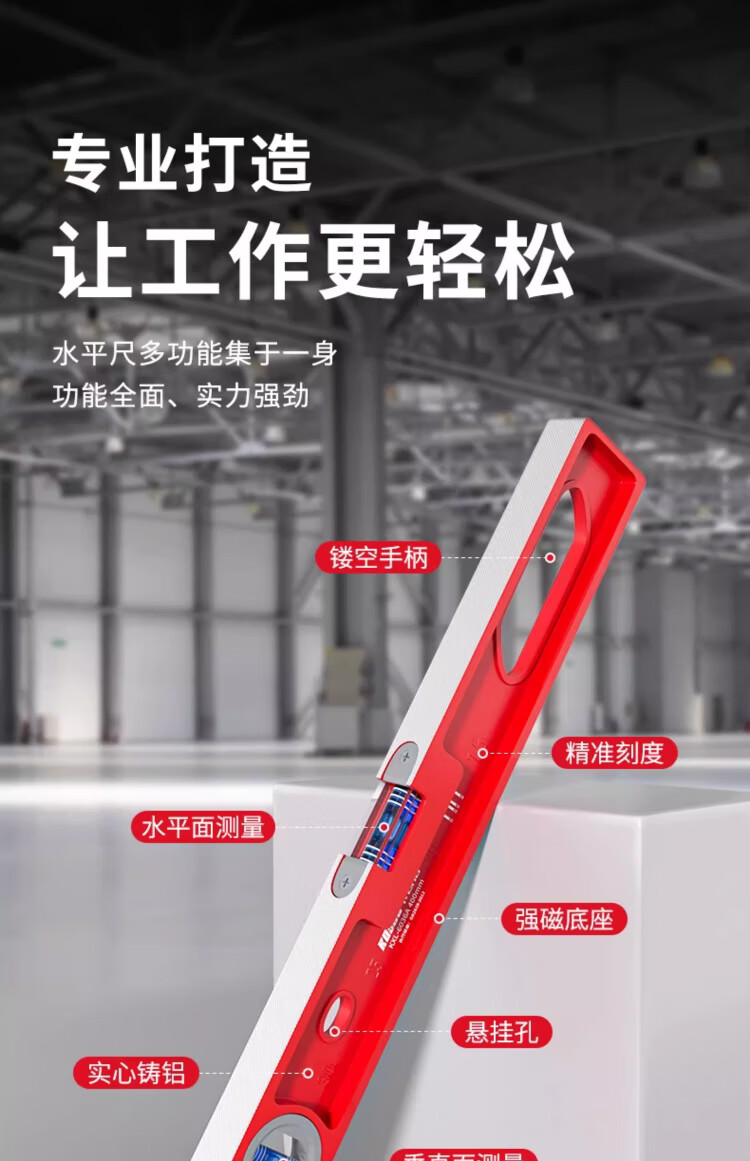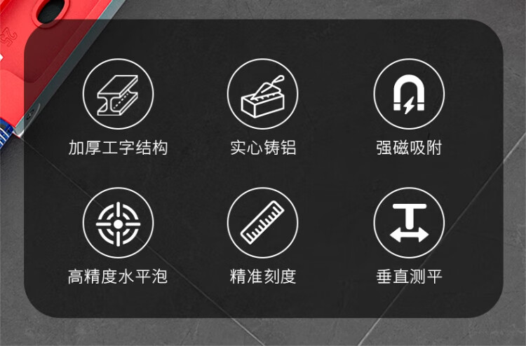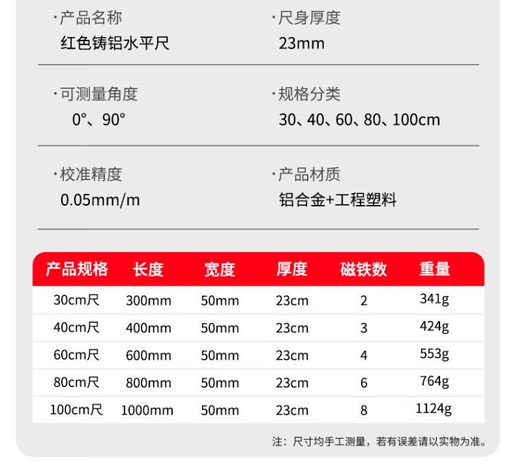 Casillo high-precision level solid cast aluminum small mini household magnetic small high-precision ruler aluminum alloy leveling ruler solid cast aluminum 60cm strong magnetic durable model
