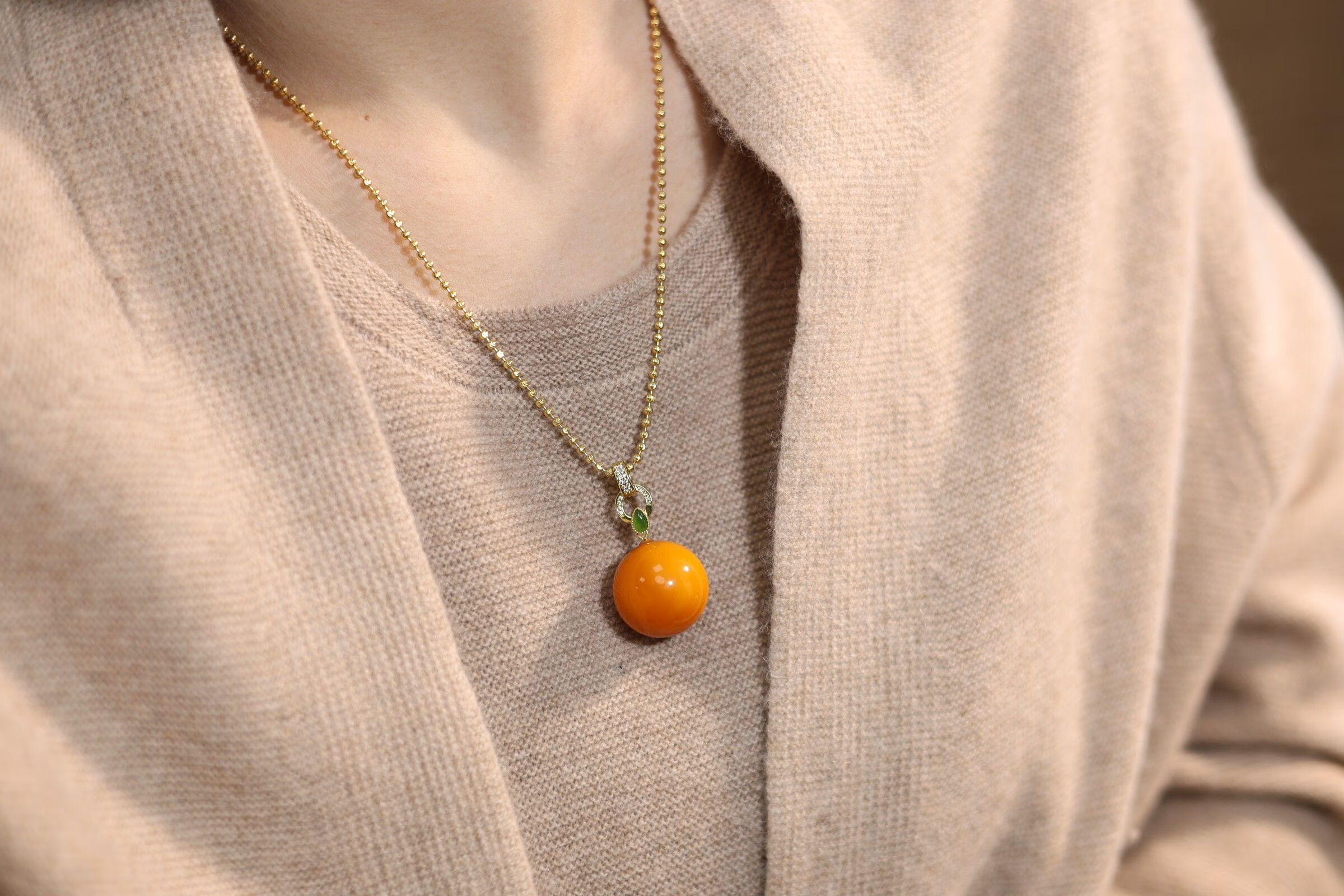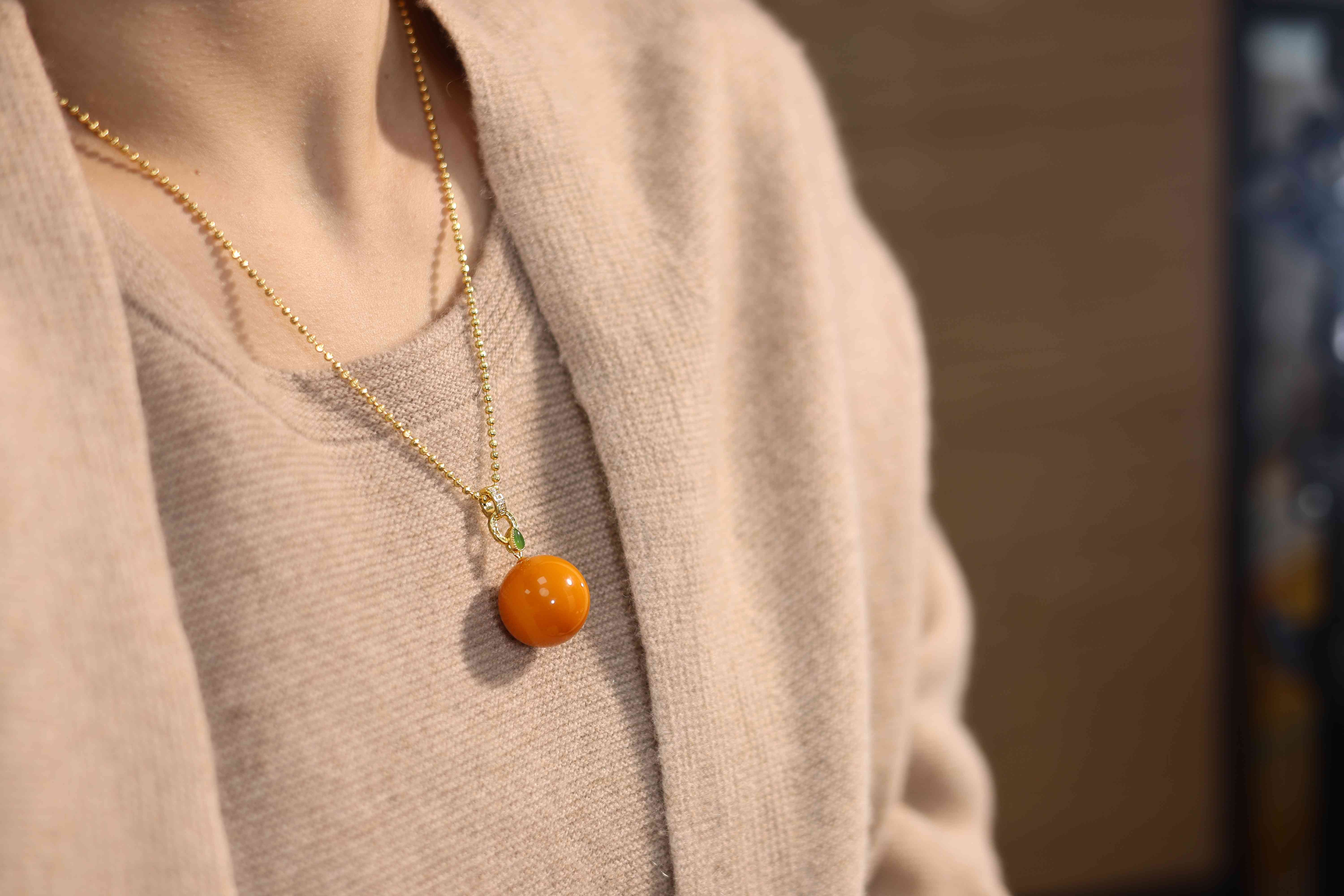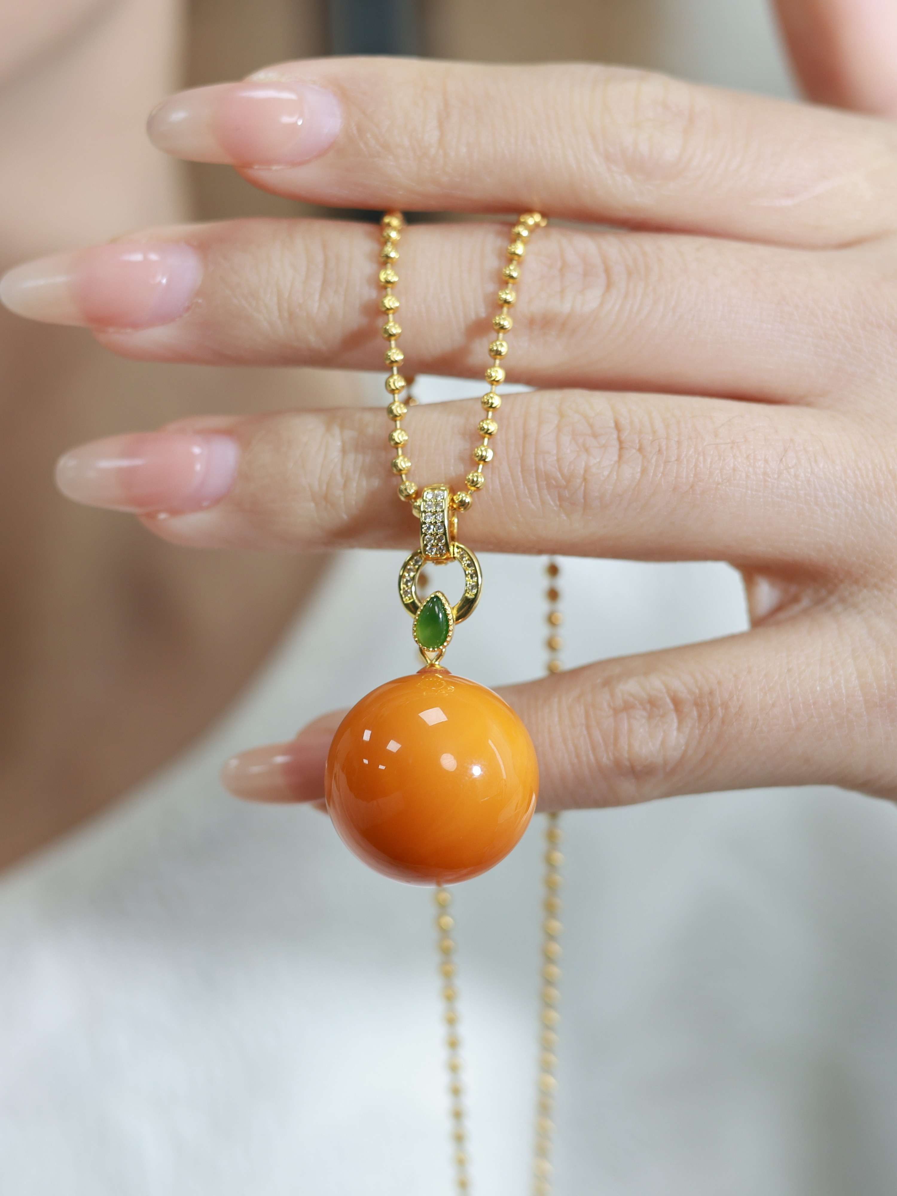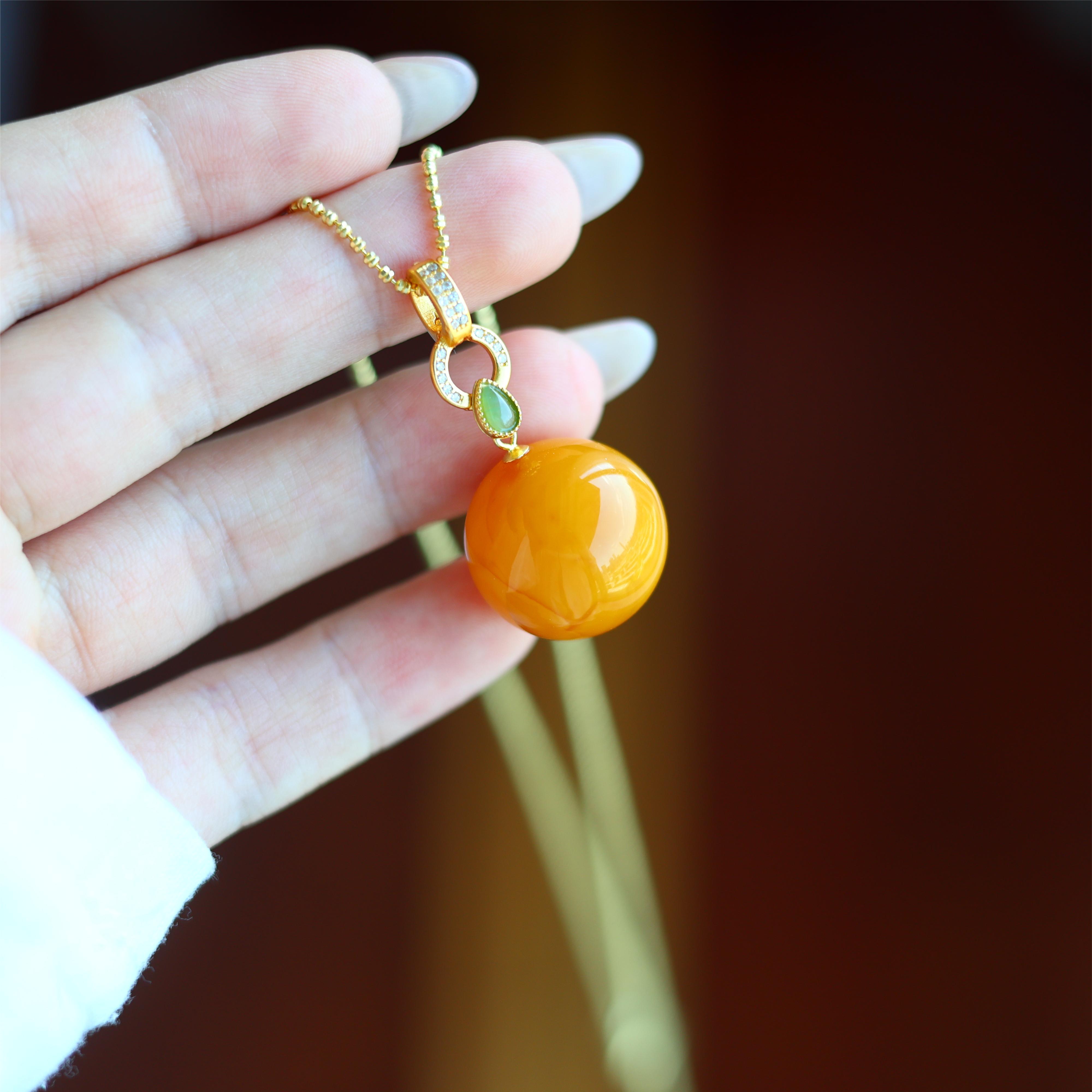 Kechu natural Russian material antique old wax pendant retro fashion men's and women's sweater chain necklace pendant gift 21-22mm beeswax