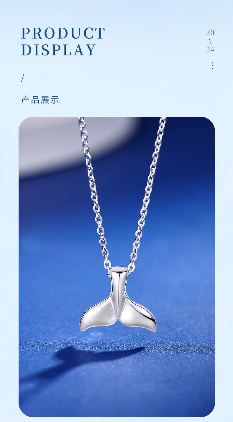 China Gold (CHINA GOLD) Fish Tail Necklace for Women PT950 Platinum Pendant Platinum Chain Clavicle Chain Wedding and Birthday Gift for Girlfriend PT950 Platinum Fish Tail Necklace About 4.3g