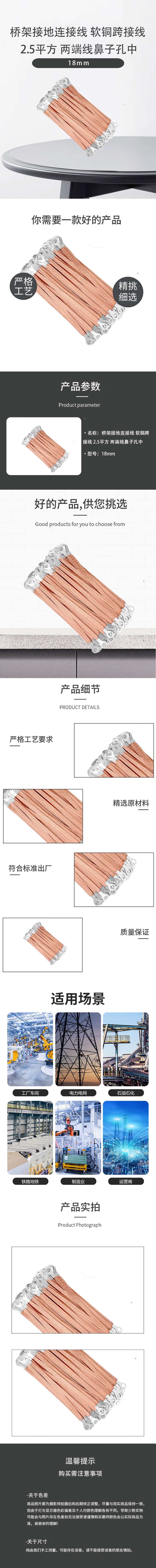 Zhizhan Xuxin bridge grounding cable soft copper jumper 2.5 square meters 18mm in the nose hole of the wire at both ends