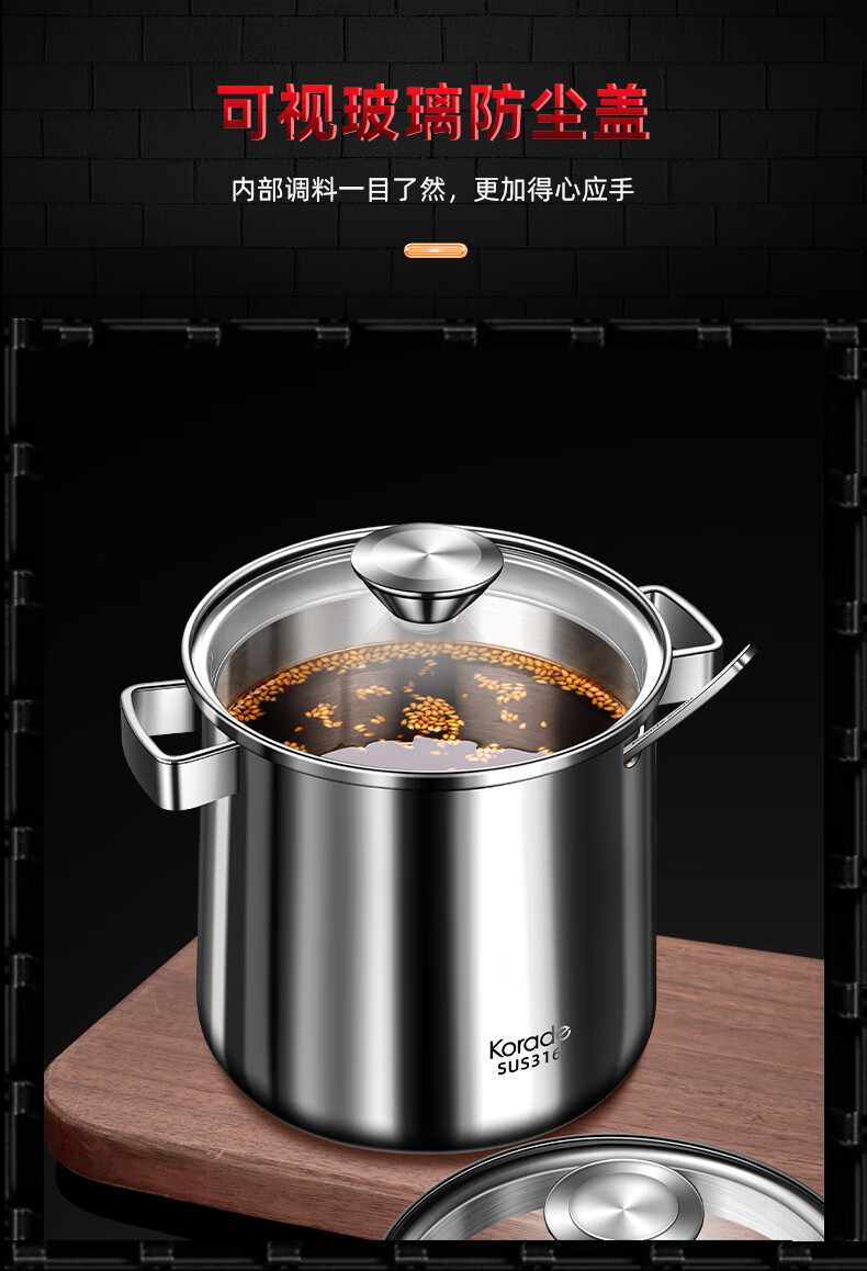 Korade316 stainless steel special seasoning jar for seasoning chili oil, household oil spicy seasoning jar with spoon, extra large capacity 316 double-ear chili oil jar-1000ML