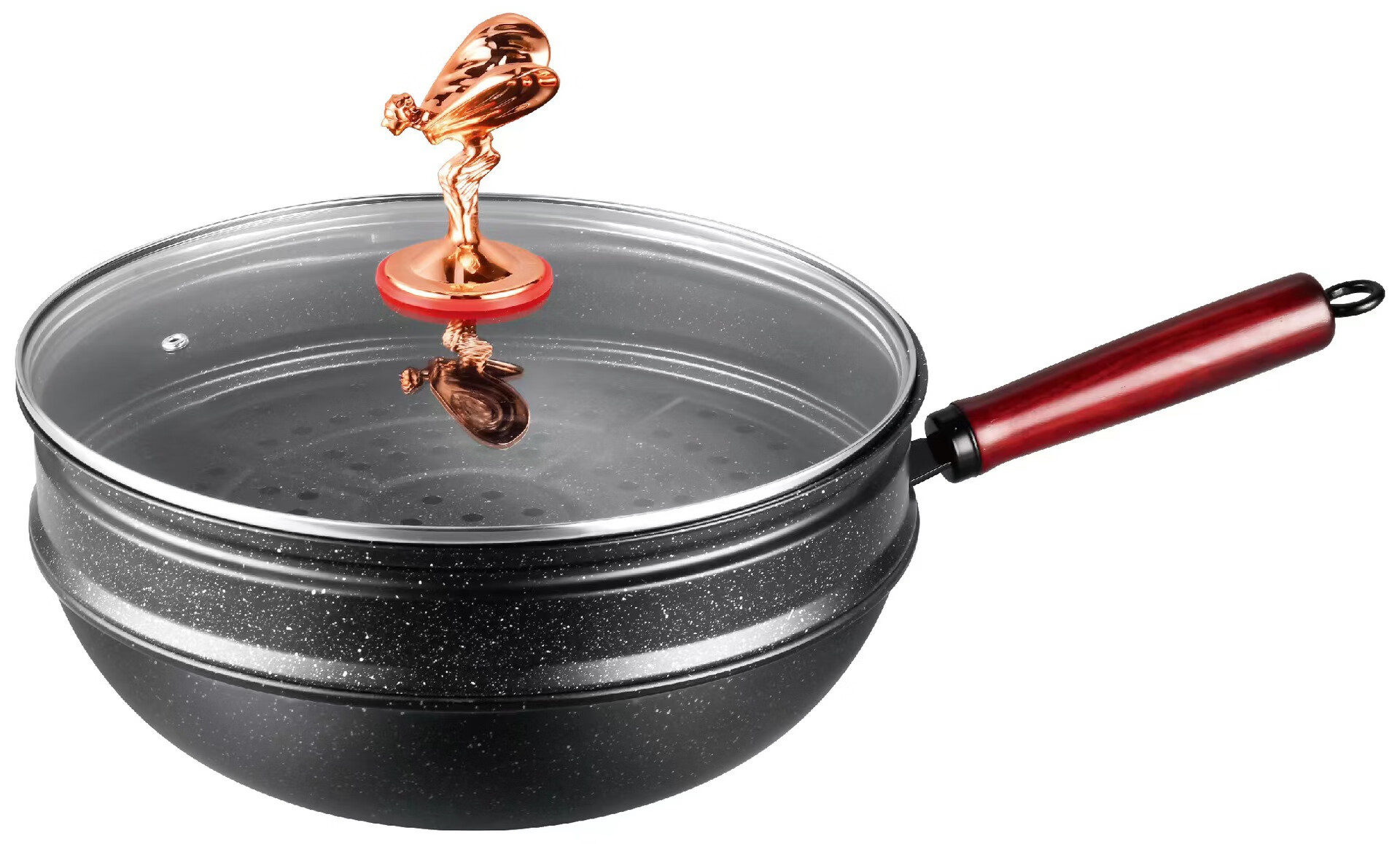 New medical stone non-stick pot household wok multi-functional with steamer steamer wok pot gift wholesale Flying Goddess wok with steamer wok