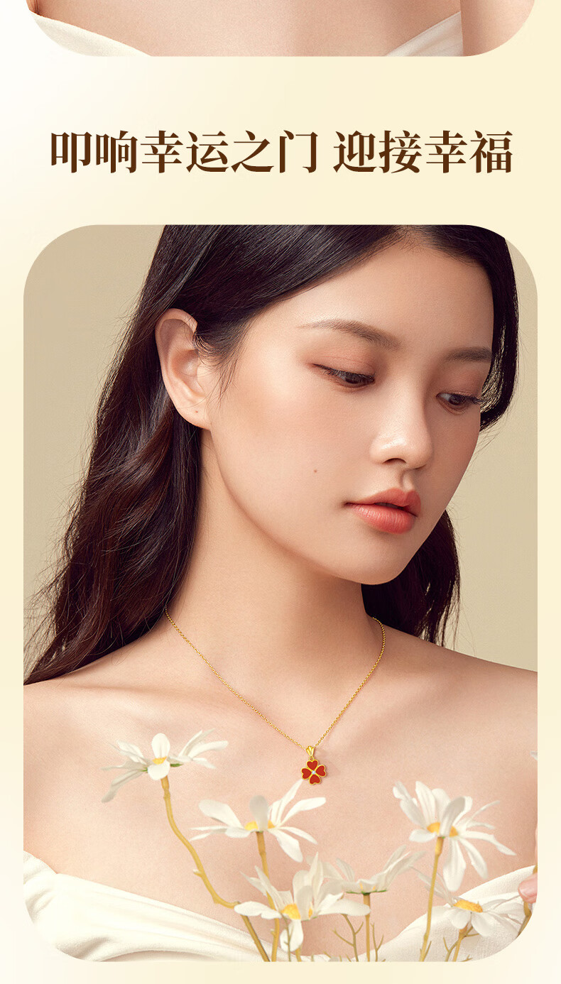 Chinese gold four-leaf clover gold necklace women's 18K gold pendant birthday gift for girlfriend, Valentine's Day confession surprise for wife, 18K gold four-leaf clover pendant, free silver chain/Jingsuda