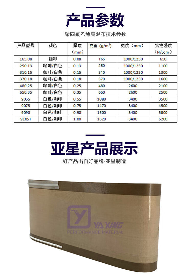 Teflon high temperature cloth conveyor belt PTFE microwave dryer wear-resistant belt Teflon conveyor belt 0.65mm thick white glossy anti-hemp anti-adhesive composite machine belt