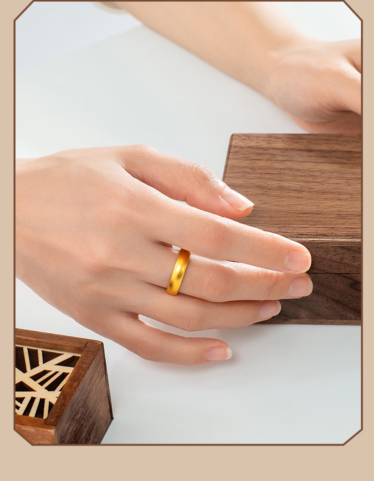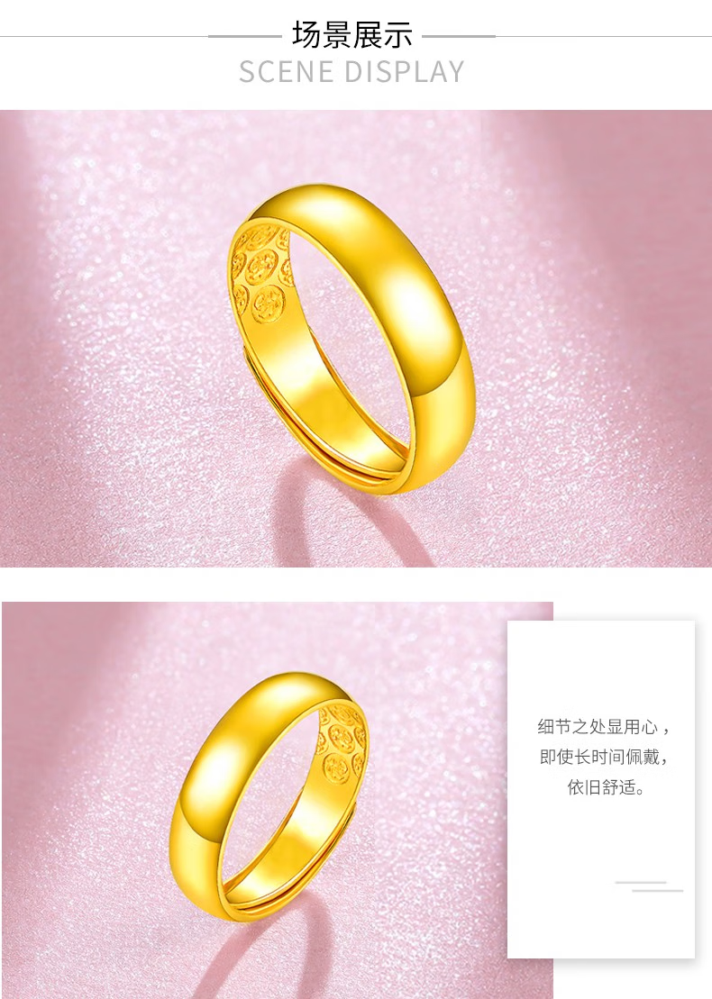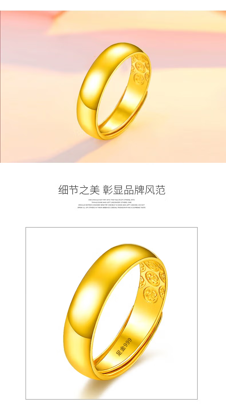 Jin Shanni Jewelry Gold Smooth Ring Solid Pure Gold 999 Tianyuan Living Mouth Men and Women Smooth Pure Gold Ring Gold Weight 10.87g