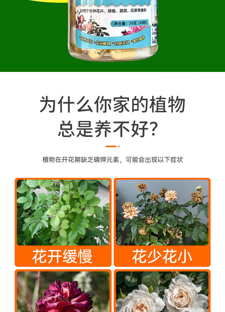 Garden Protector Garden Protector Potassium Dihydrogen Phosphate Fertilizer for Flowers Special Orchid Foliar Fertilizer Water-soluble Fertilizer Flower Fertilizer 36g/bottle (40 capsules)