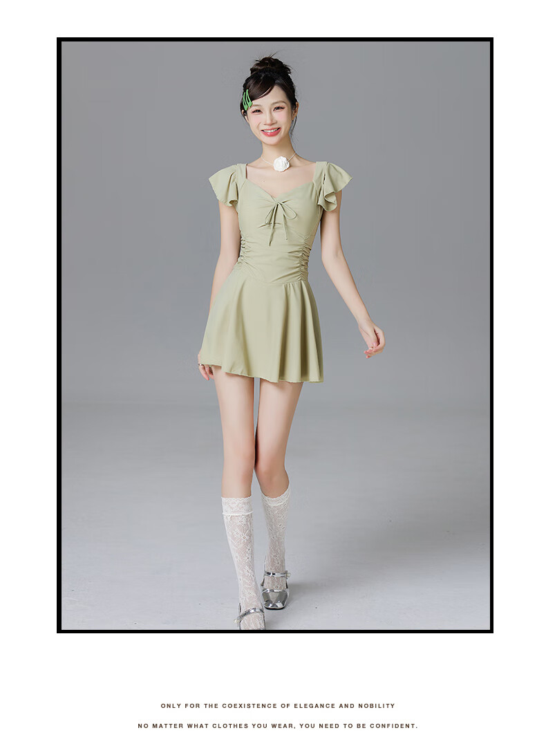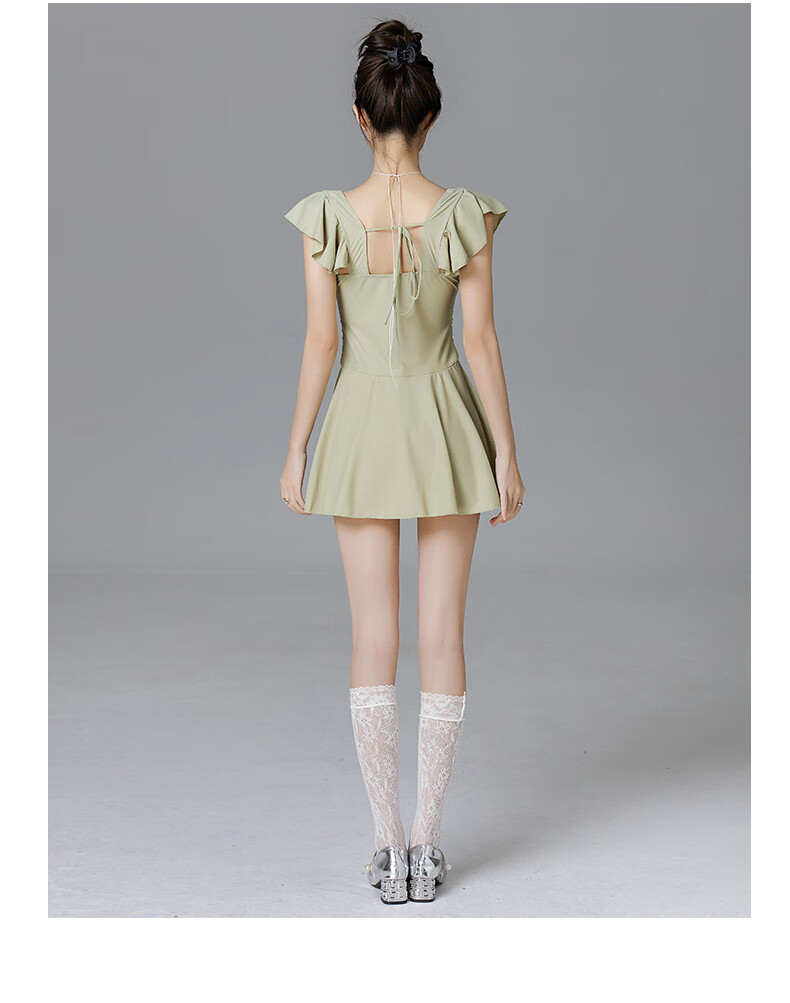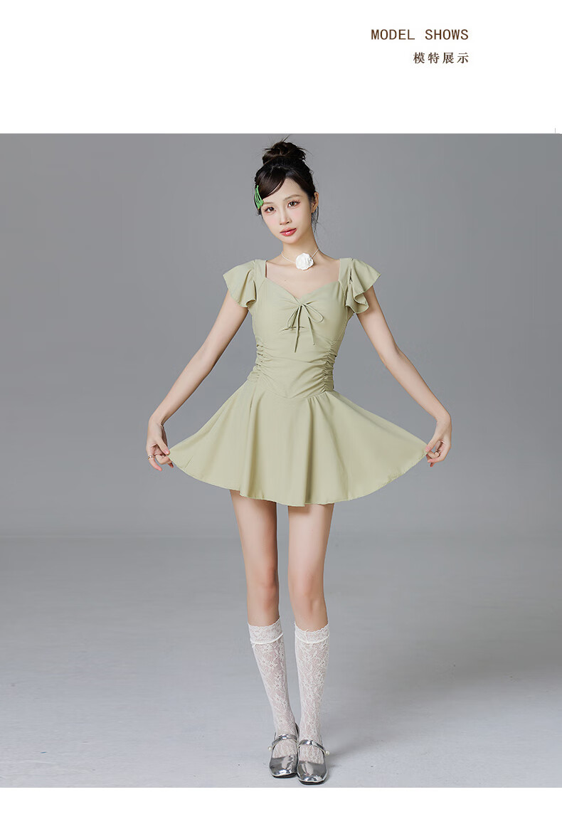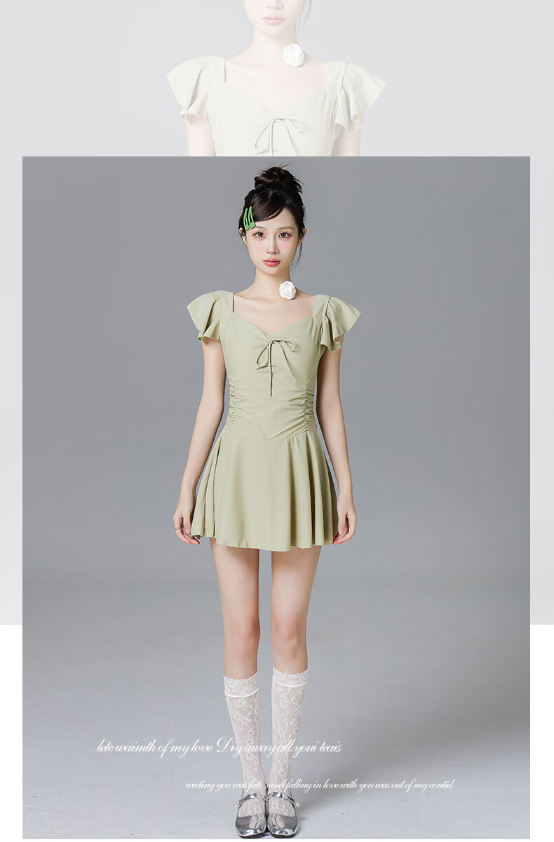 Lugeli swimsuit for women, bathing in hot springs to cover the belly and make the body look slimmer, small breasts gathered to cover the belly, ins style small flying sleeves resort swimsuit, green swimsuit, one size fits all, recommended 80-120Jin Jin is equal to 0.5 kg