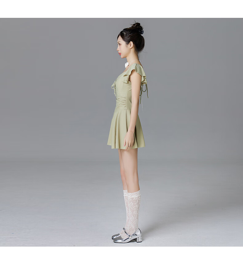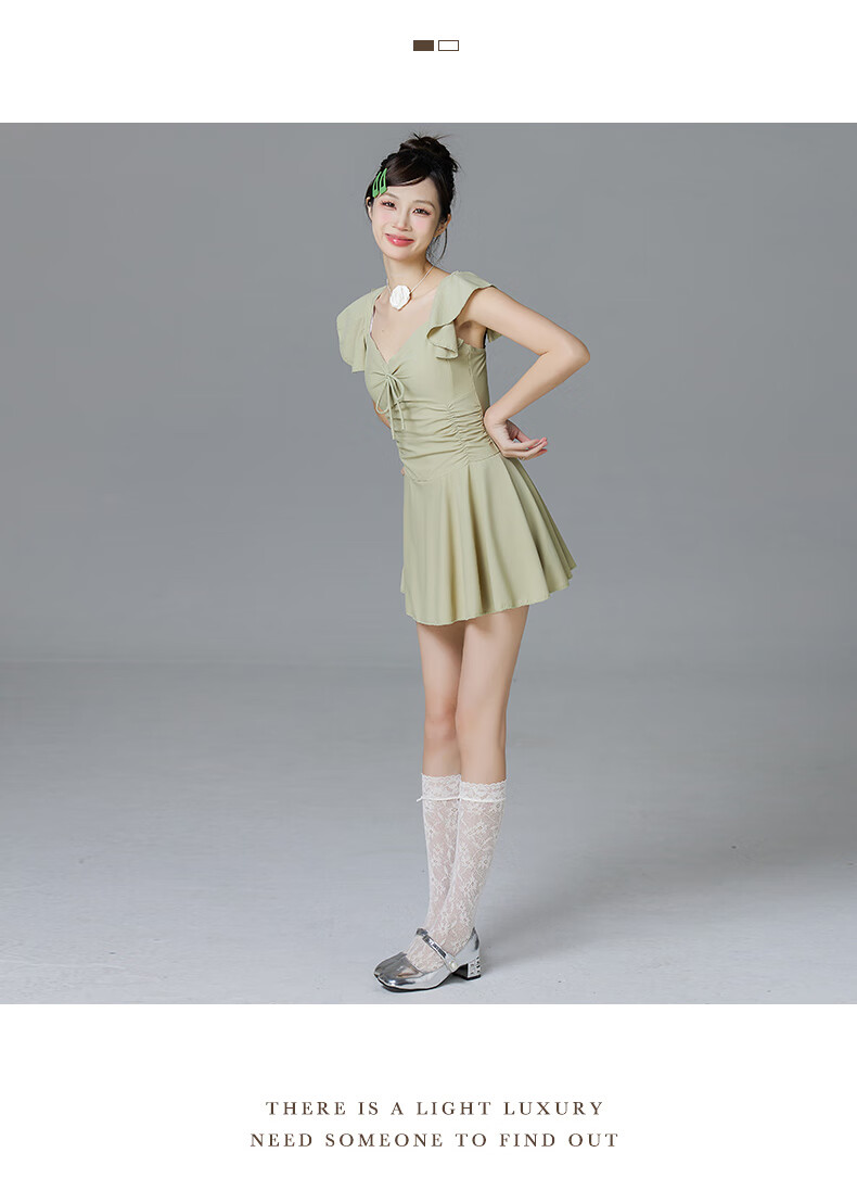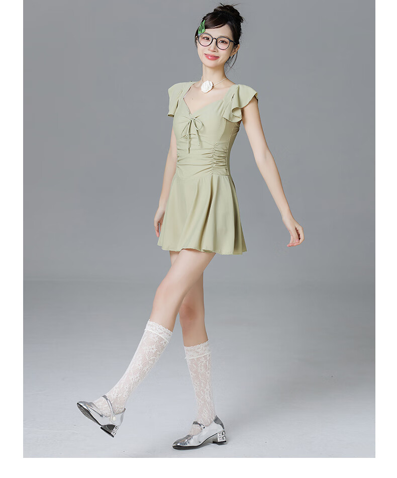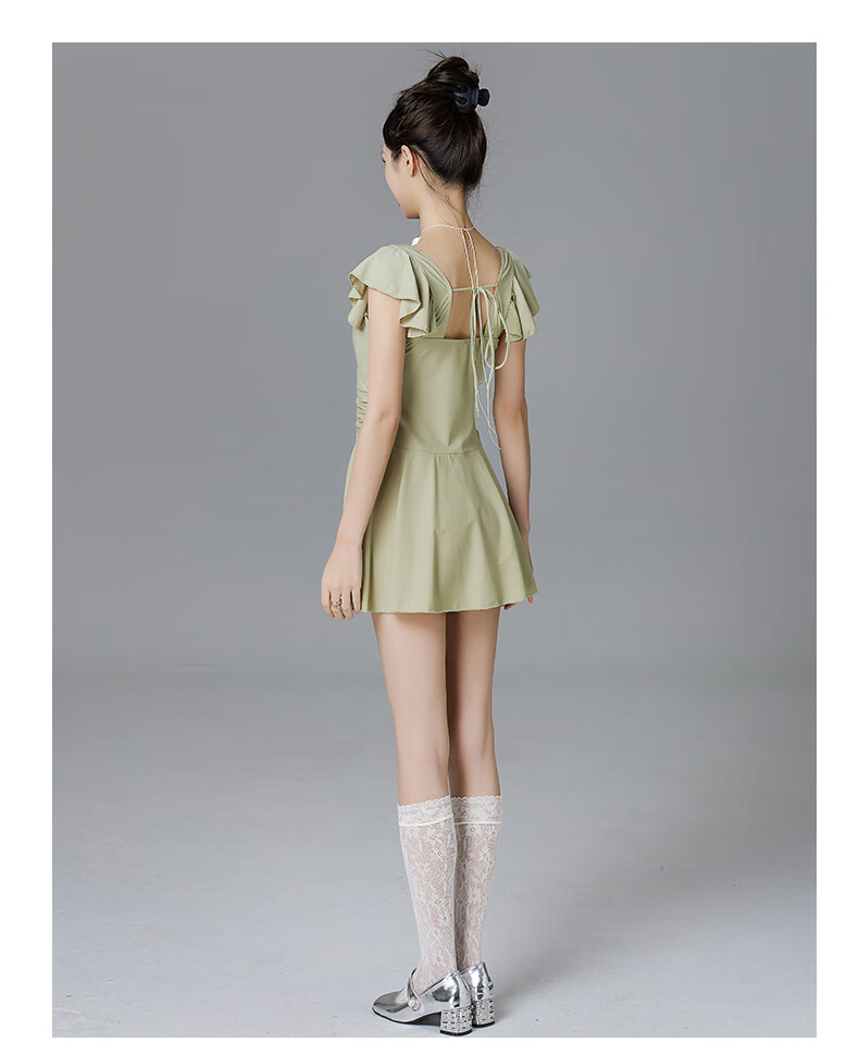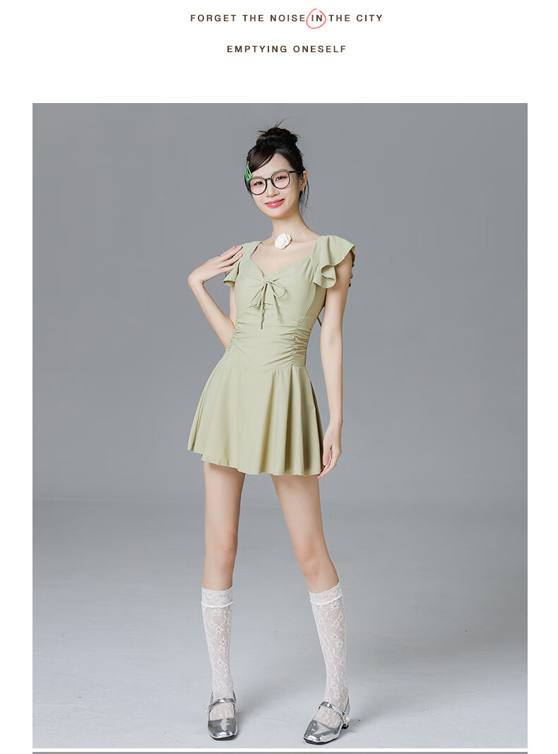 Lugeli swimsuit for women, bathing in hot springs to cover the belly and make the body look slimmer, small breasts gathered to cover the belly, ins style small flying sleeves resort swimsuit, green swimsuit, one size fits all, recommended 80-120Jin Jin is equal to 0.5 kg