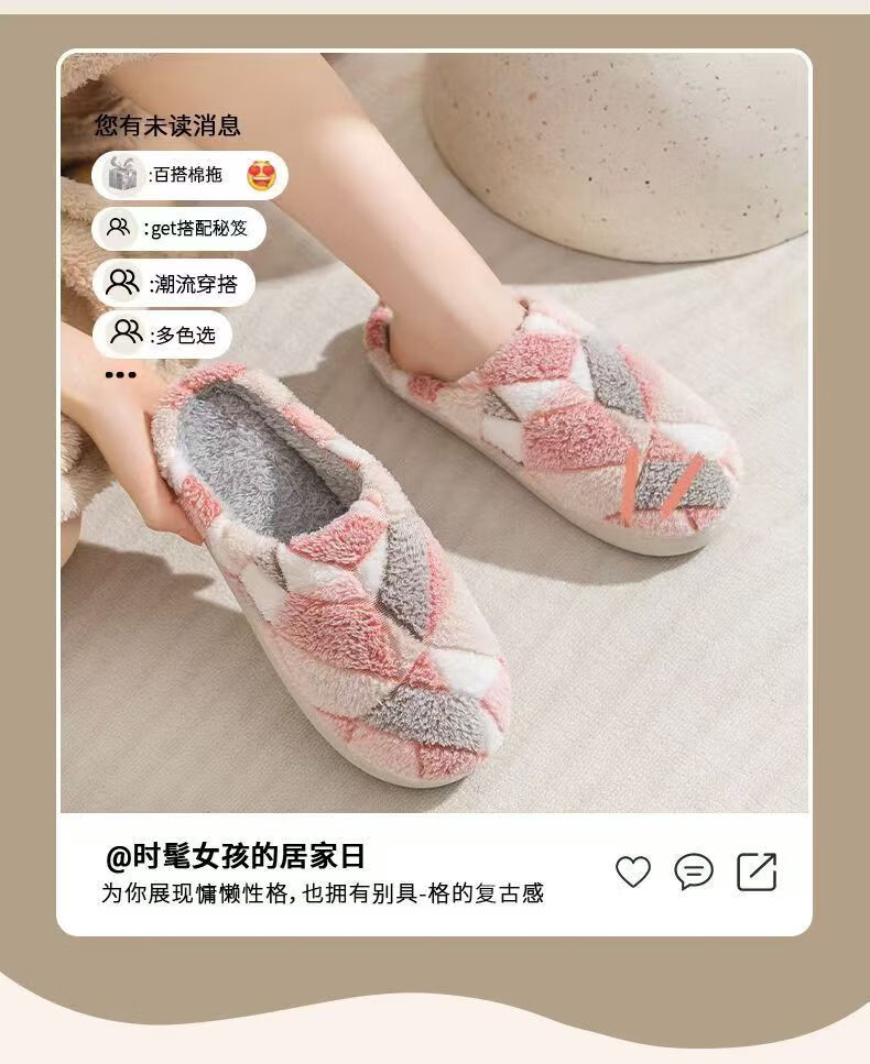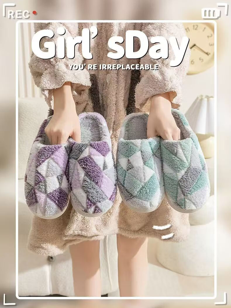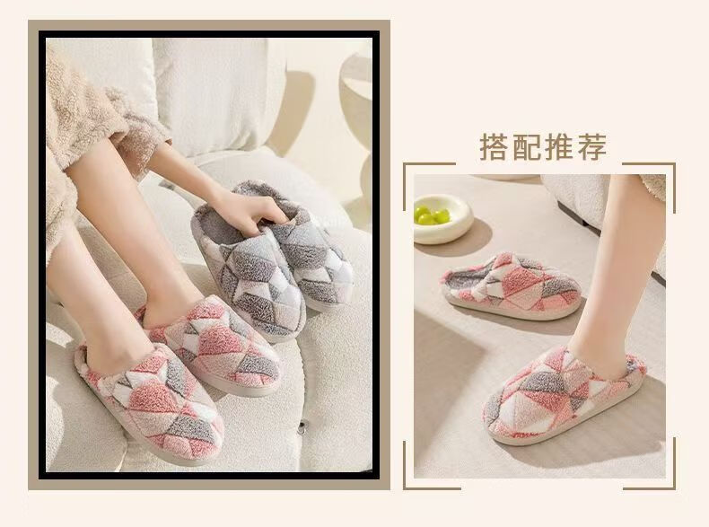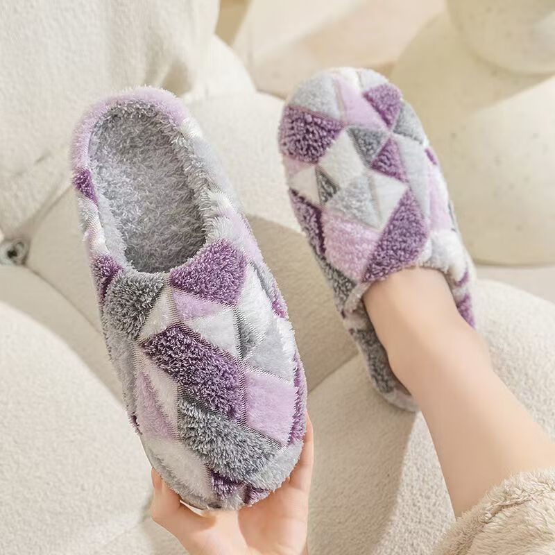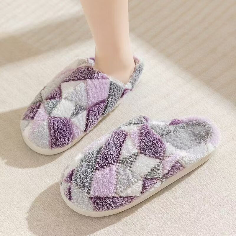 Cotton slippers for home use in autumn and winter with thick soles and velvet to keep warm and cold-proof. Couples can wear them as men and women. Purple 36-37