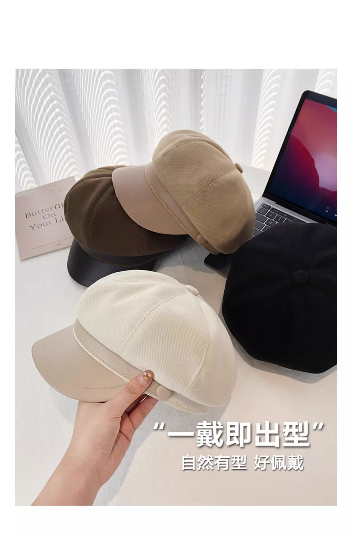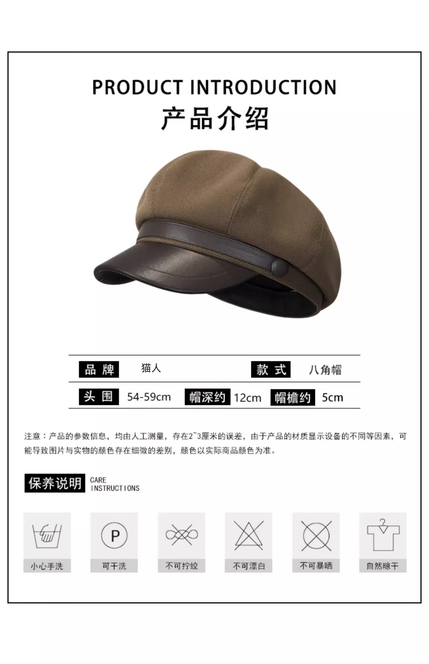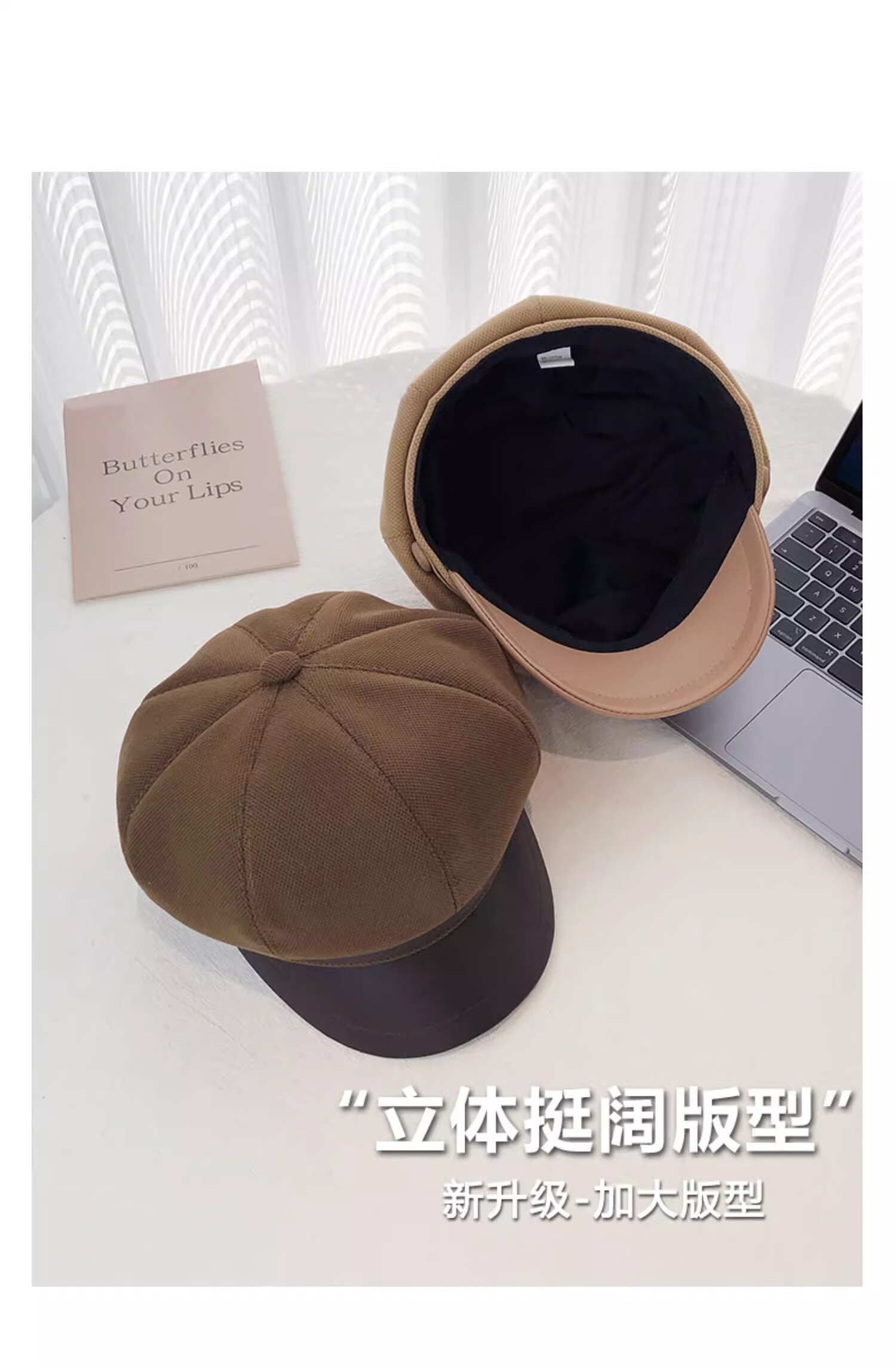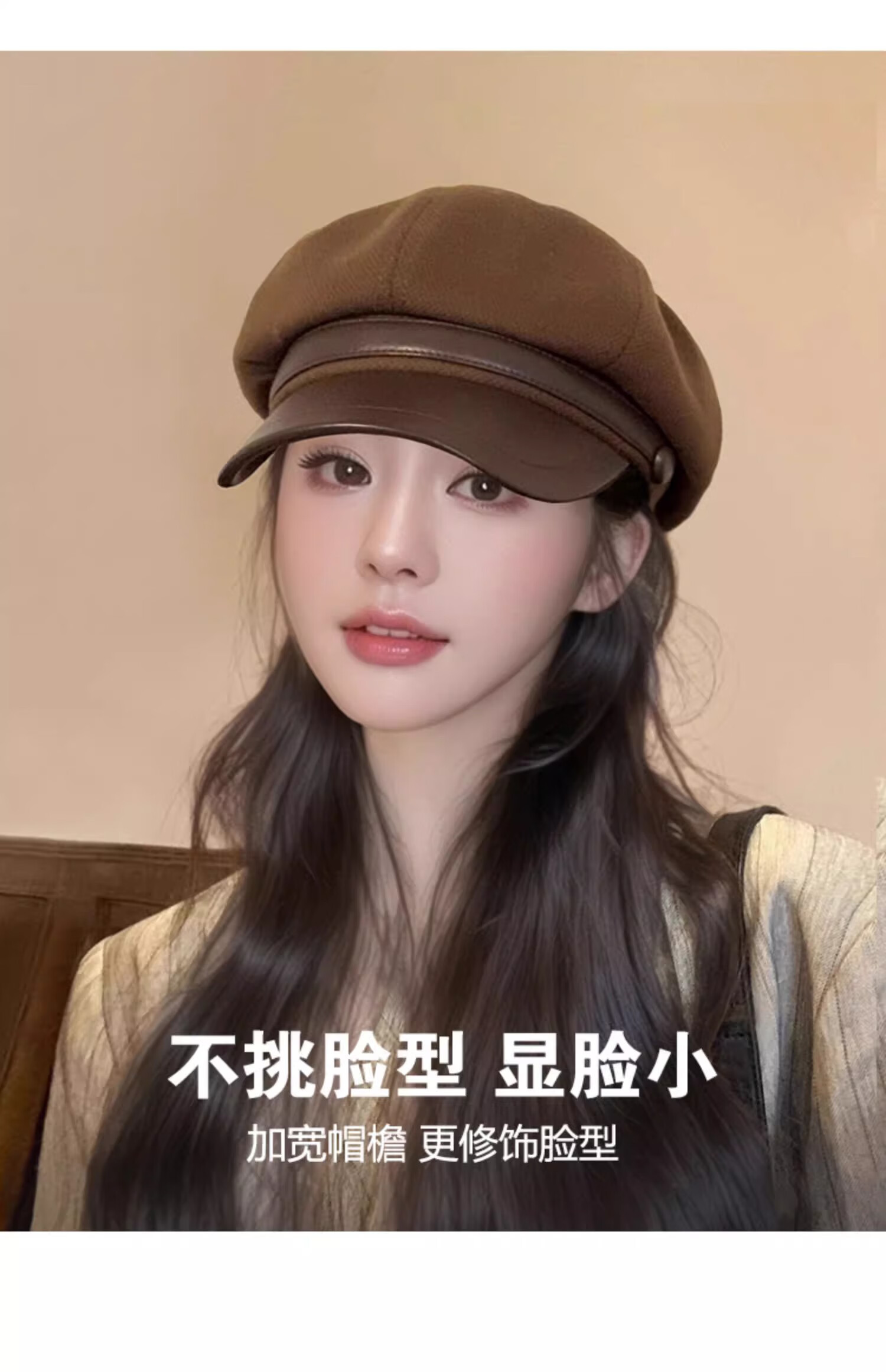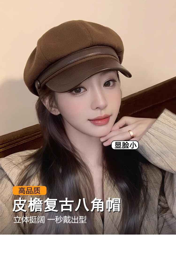 Catman high-end Maillard beret women's new spring and autumn duck bill octagonal hat showing face small versatile painter hat coffee color one size (56-59CM)