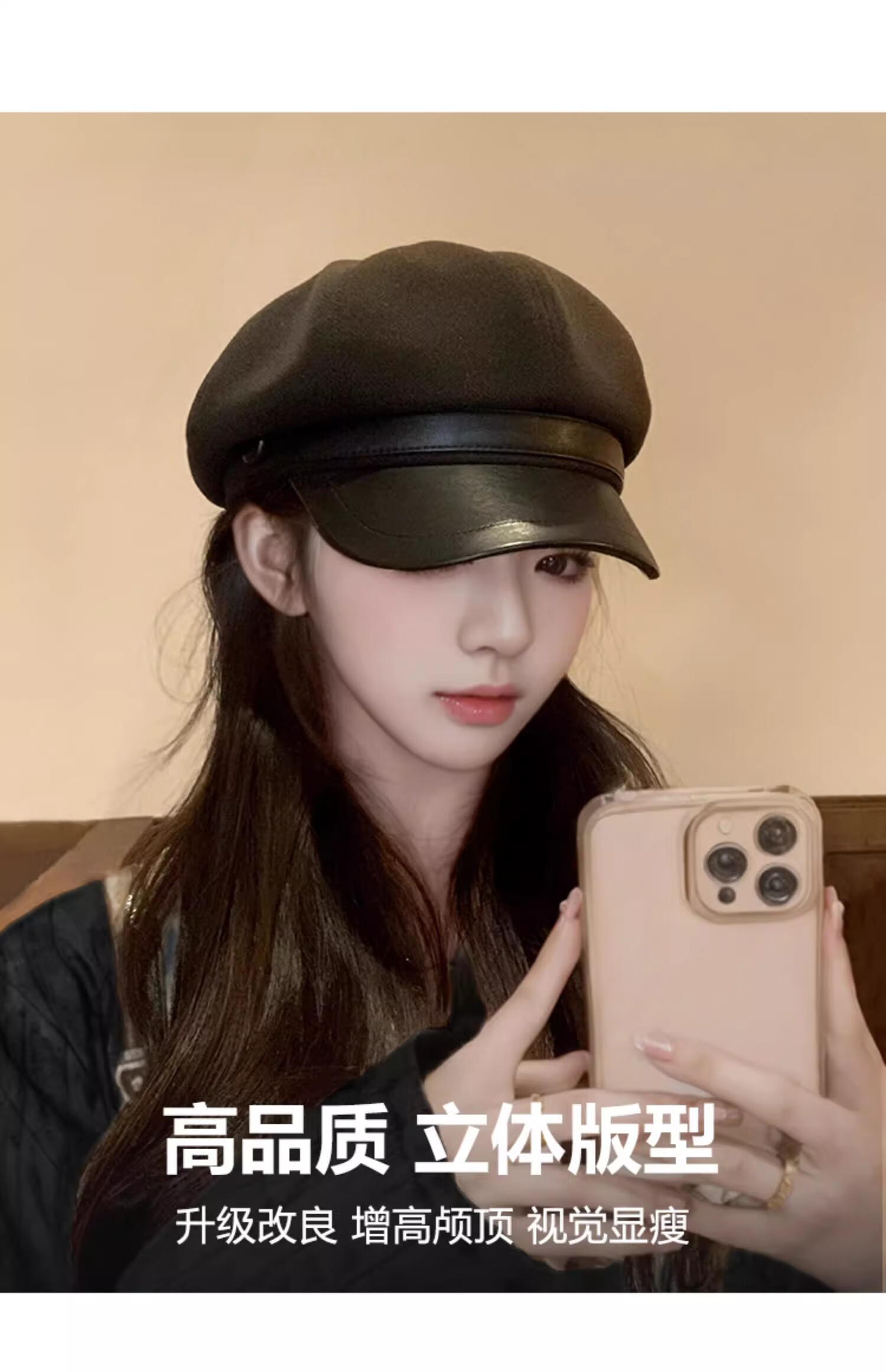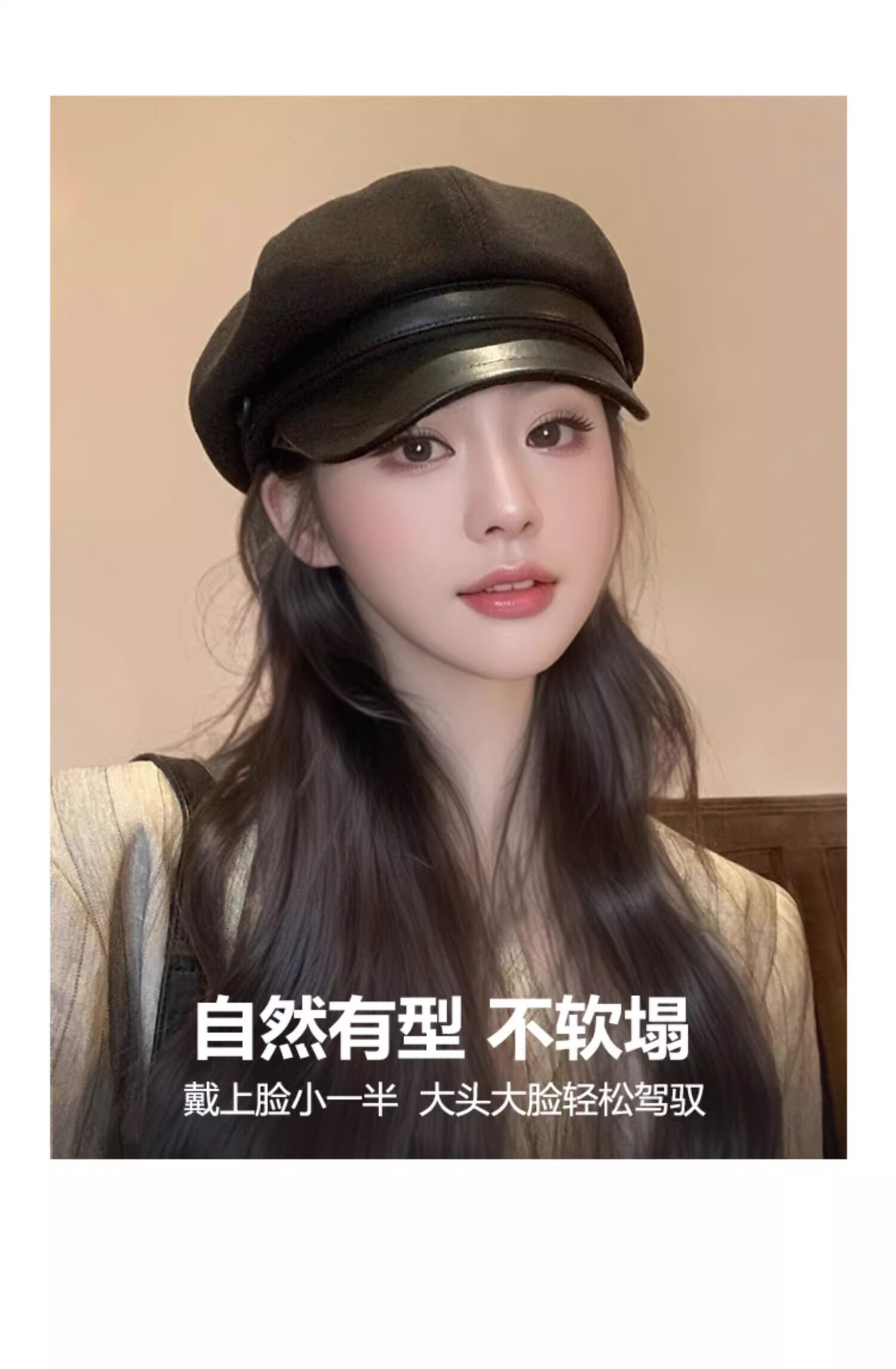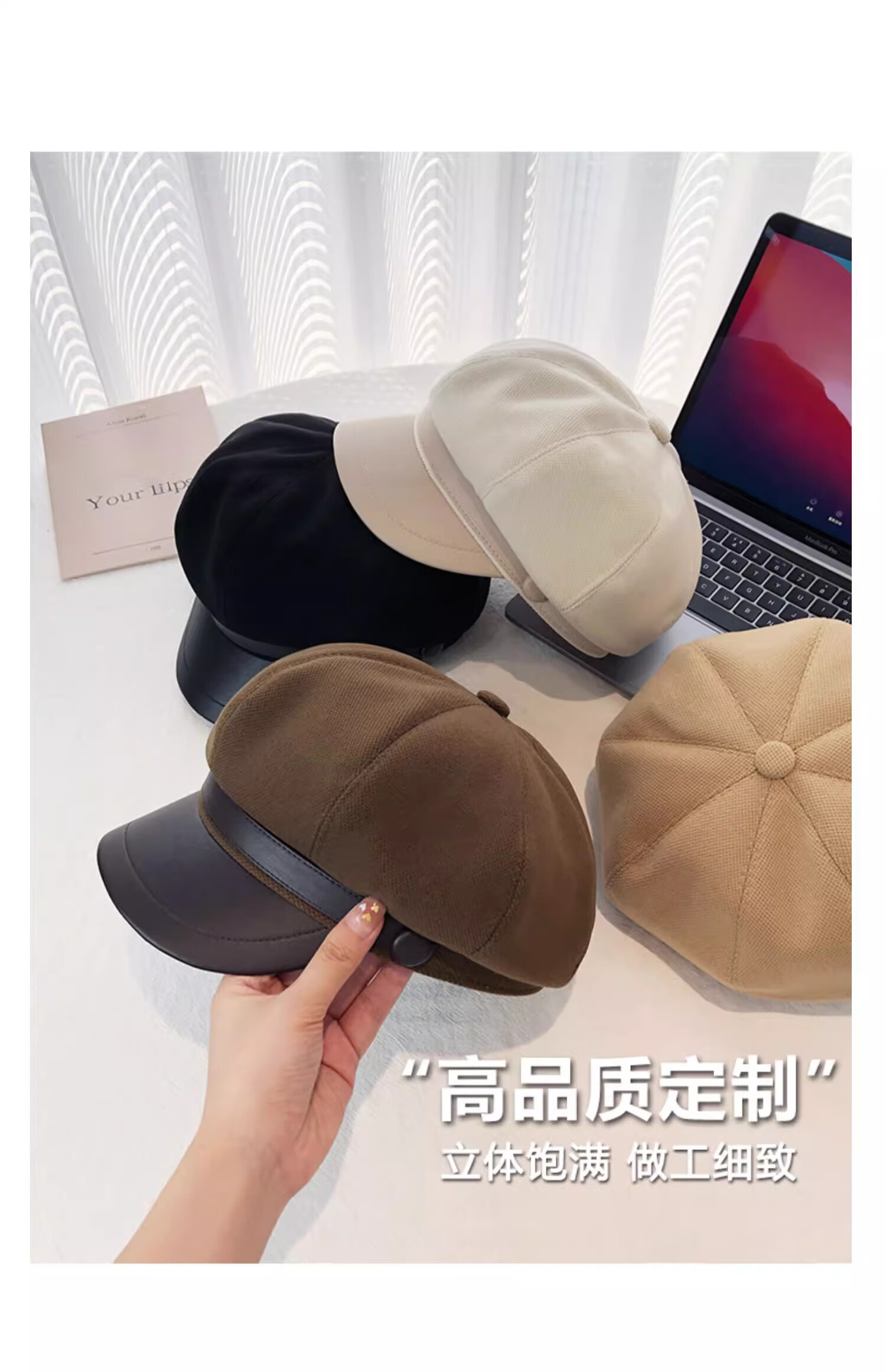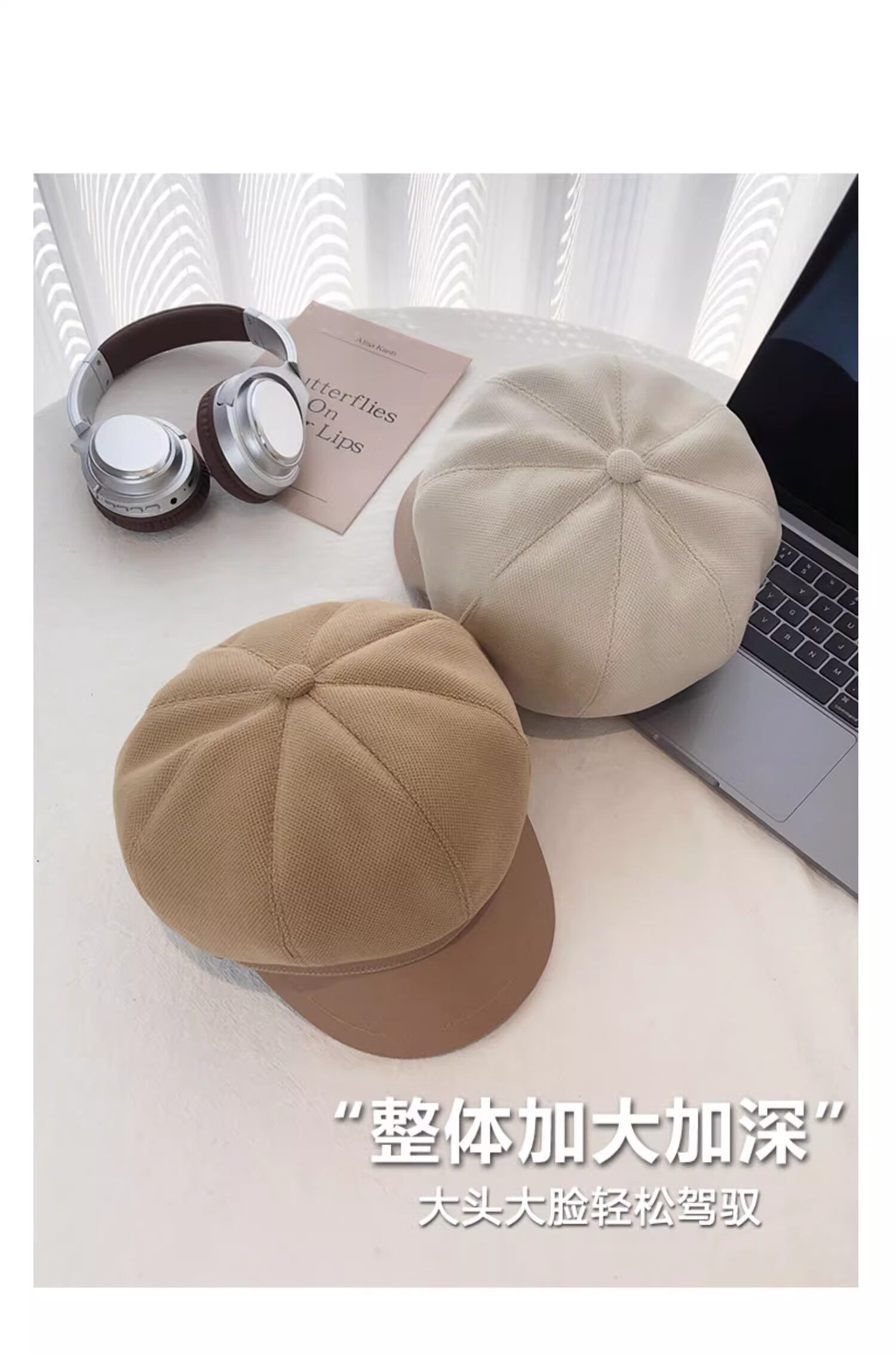 Catman high-end Maillard beret women's new spring and autumn duck bill octagonal hat showing face small versatile painter hat coffee color one size (56-59CM)