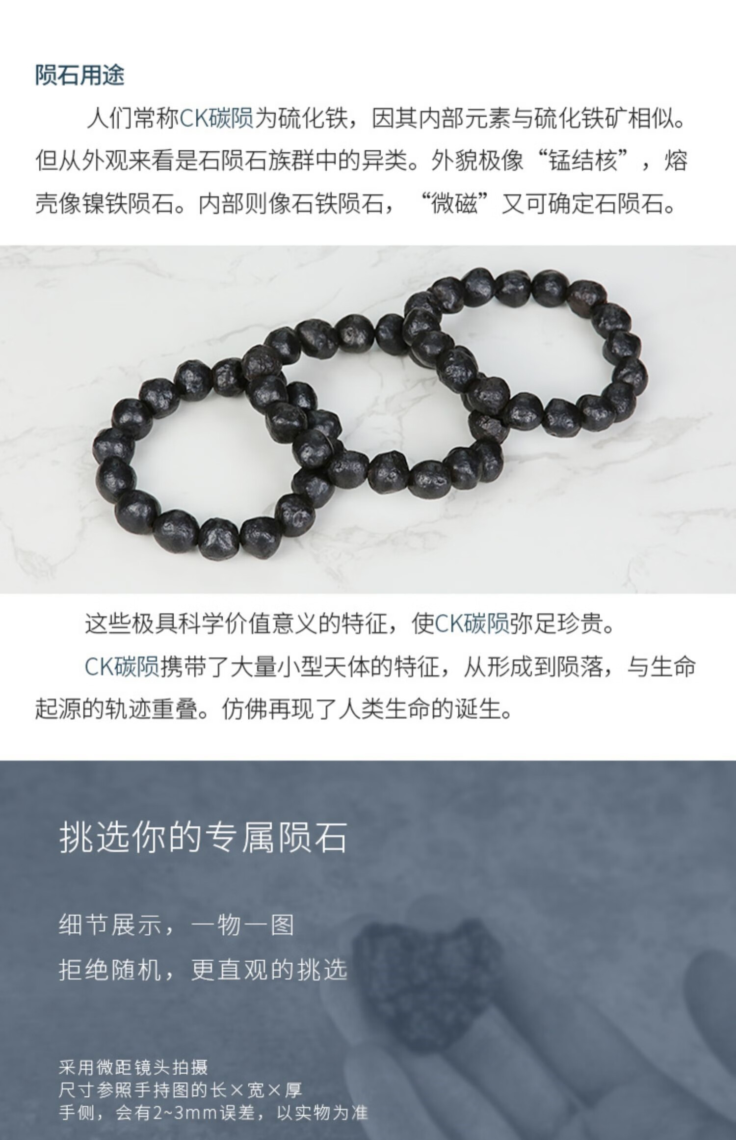 DRJEFUN Xinjiang carbonaceous precious metal meteorite raw stone bracelet natural cosmic meteor fall iron sulfide conformable bracelet fidelity No. 40