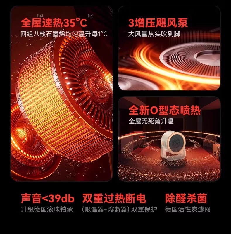 Xiaomi Guoba Trendy Life Appliances Graphene Heater Household Energy Saving Electric Heater Indoor Infant Bathroom Small Sun Electric Heater Fan Silent Rapid Heat Overheating Protection Knight White Standard Model 0-20m Whole House Supply