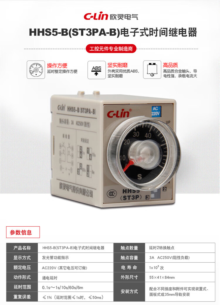 Xinling brand HHS5-B (ST3PA-B) 10S/60S/6M AC220 DC24V power-on time delay relay with TP28X-E base (set) AC380V
