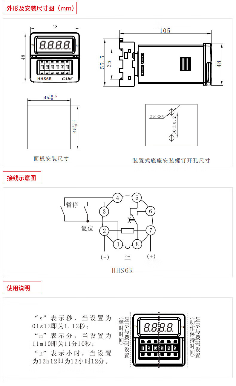 Xinling brand HHS6R DH48S-S improved digital display dual delay cycle dual setting time relay with holder AC220V